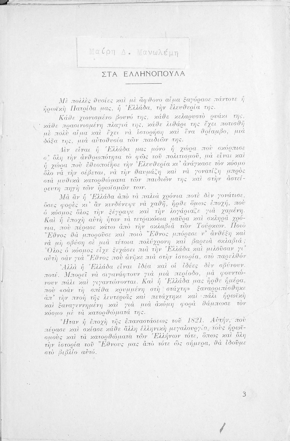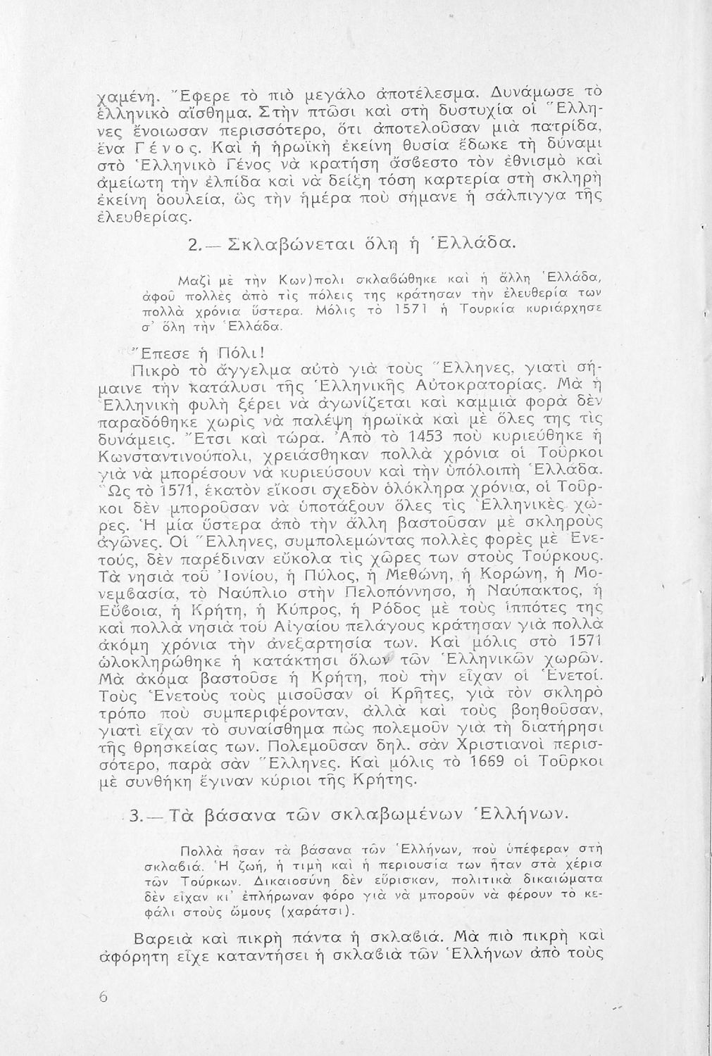 Σχολικό εγχειρίδιο της ΣΤ΄ Δημοτικού για το μάθημα της Ιστορίας. Αναφέρεται διεξοδικά στην Ελληνική Επανάσταση και συνοπτικά καλύπτονται τα άλλα ιστορικά γεγονότα μέχρι των Β΄ Παγκόσμιο.