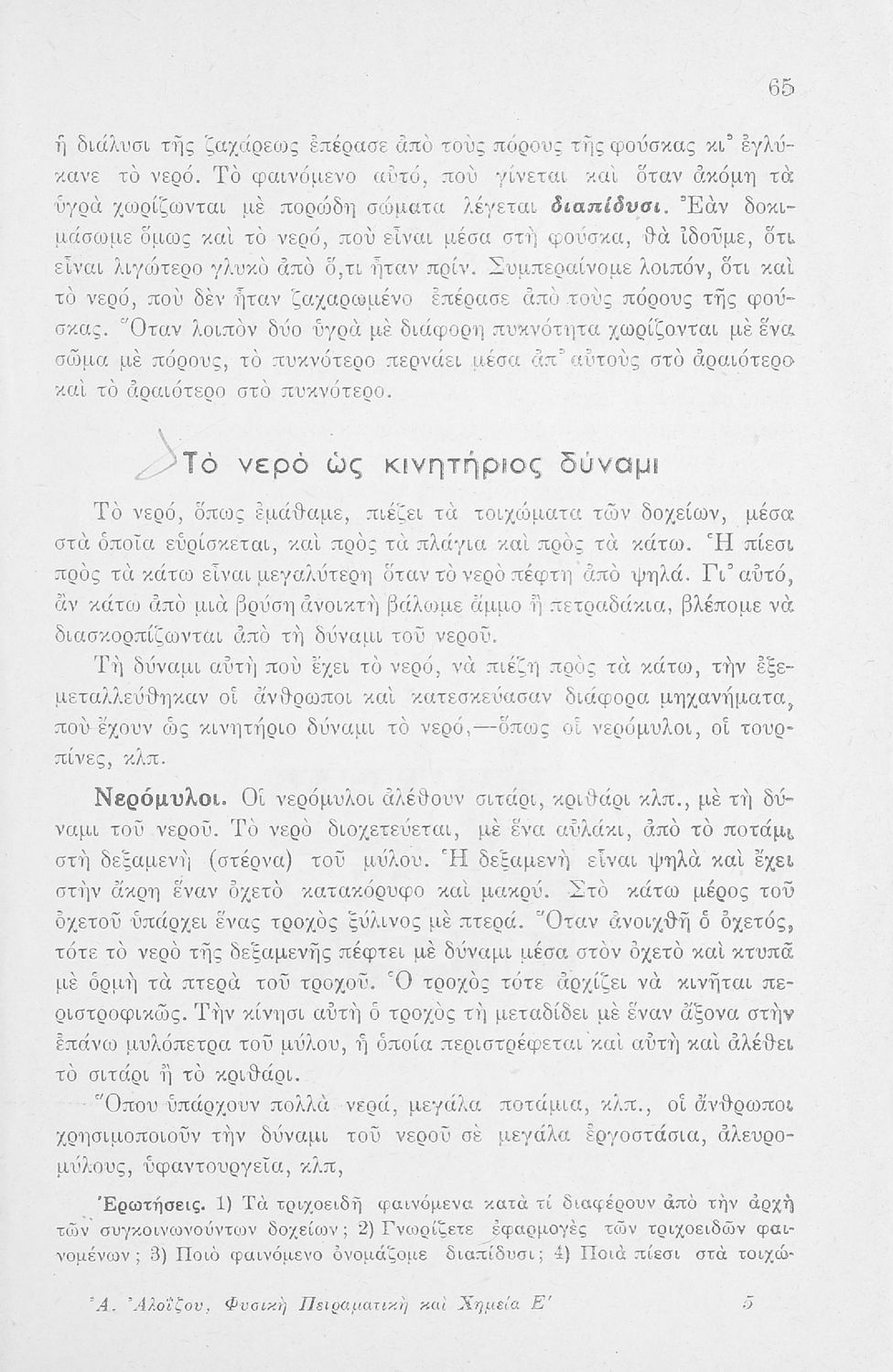 Σχολικό εγχειρίδιο Φυσικής και Χημείας Ε΄ Δημοτικού που πραγματεύεται φυσικά φαινόμενα (τήξη και πήξη, βαρύτητα, άνωσης, ατμοσφαιρική πίεση) και χημικά φαινόμενα (οξείδωση μετάλλων, χρωστικές ουσίες κ.α).
