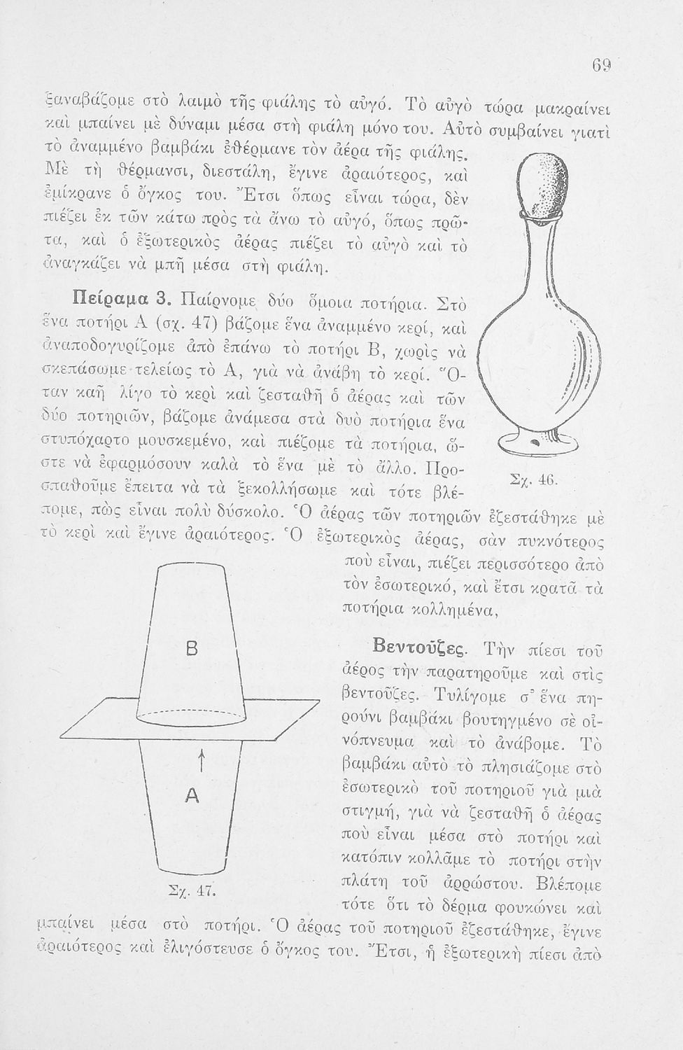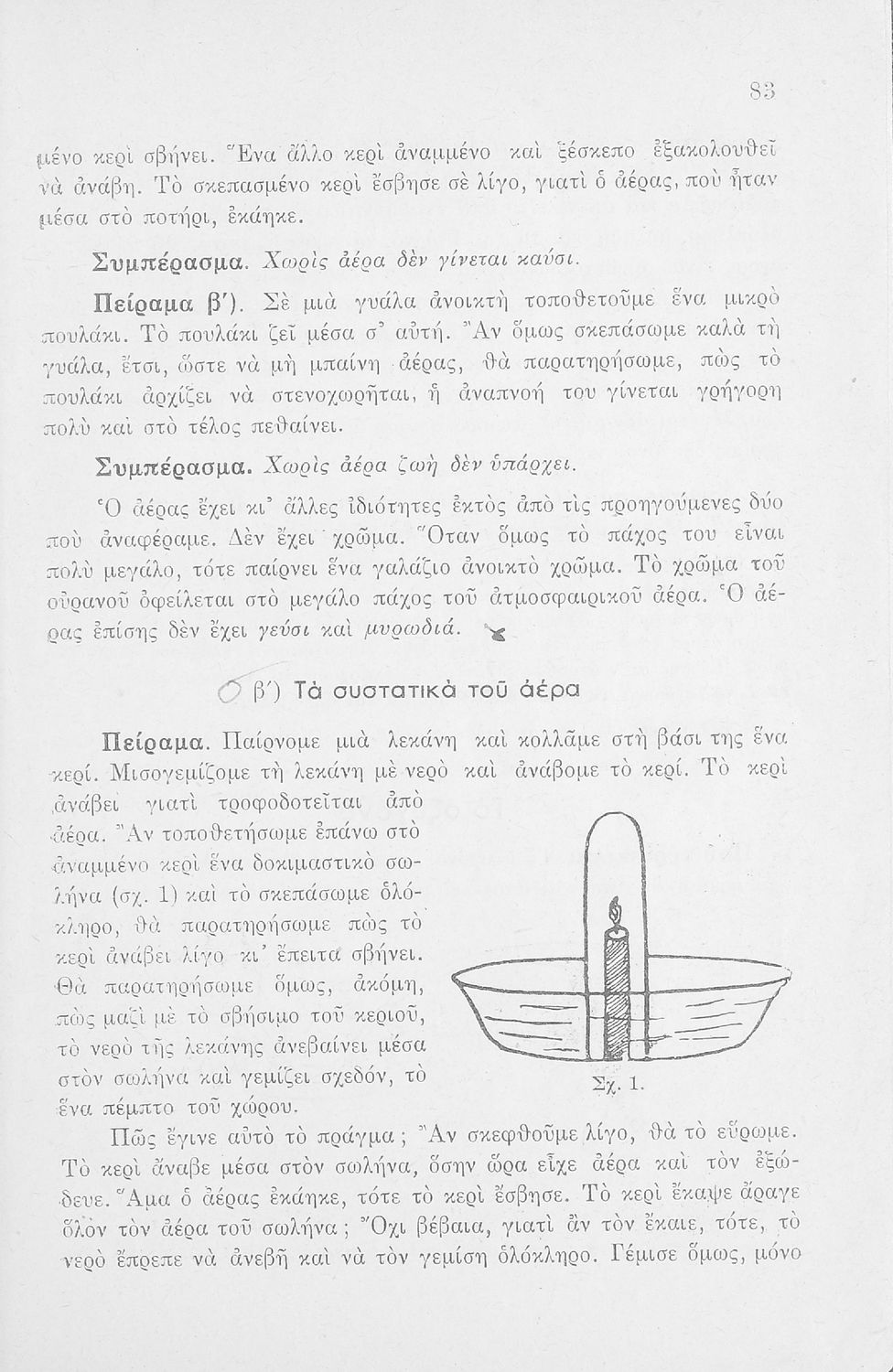 Σχολικό εγχειρίδιο Φυσικής Πειραματικής ΣΤ΄ Δημοτικού που εστιάζει στα φυσικά φαινόμενα (ακουστική, οπτική, μαγνητισμός και ηλεκτρισμός) και στα χημικά φαινόμενα (είδη του άνθρακα, παραγωγή πίσσας, ναφθαλίνης,