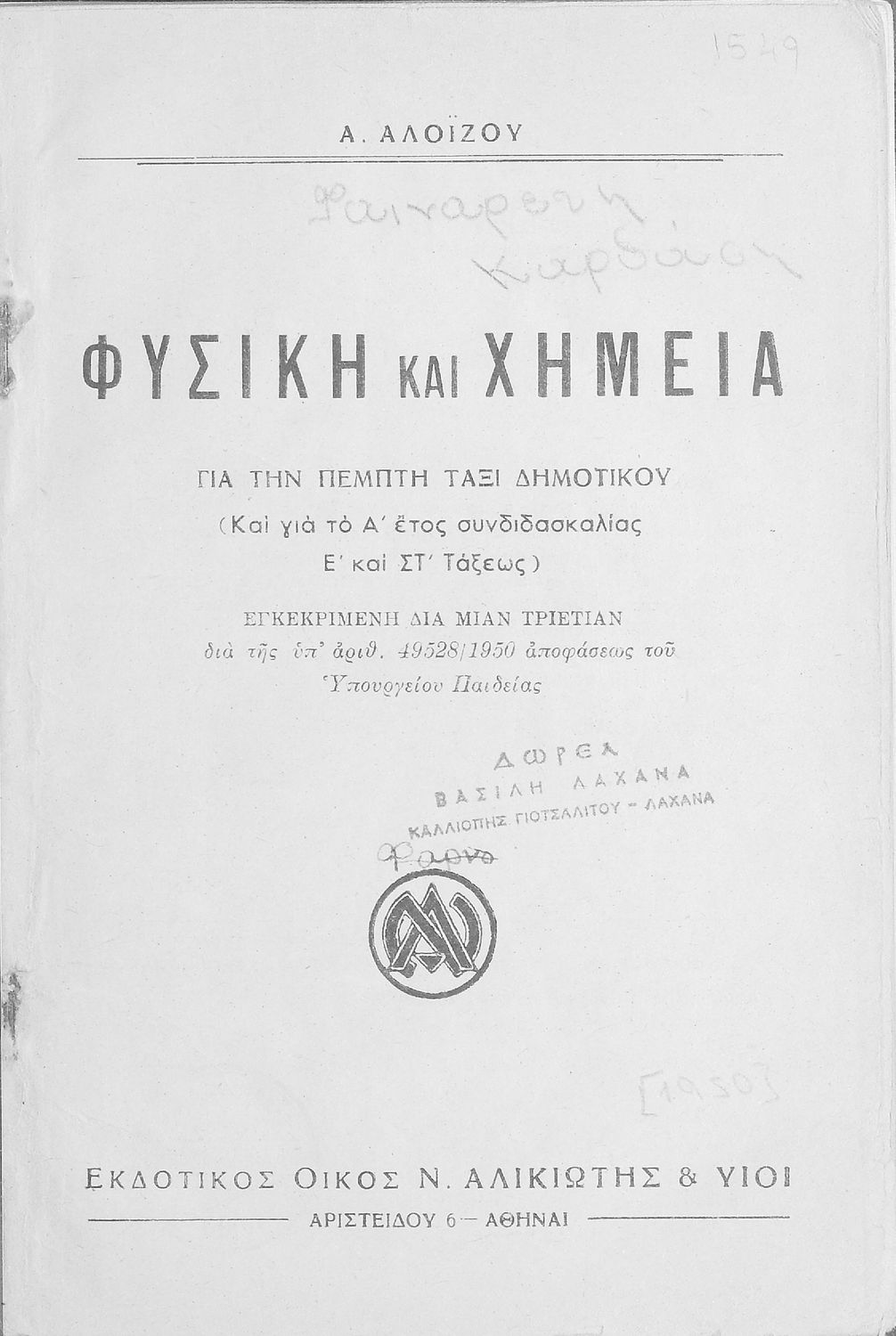 Τίτλος: Φυσική και χημεία για την Πέμπτη τάξι του Δημοτικού και για το Α΄ έτος συνδιδασκαλίας Ε΄ και ΣΤ΄ τάξεως