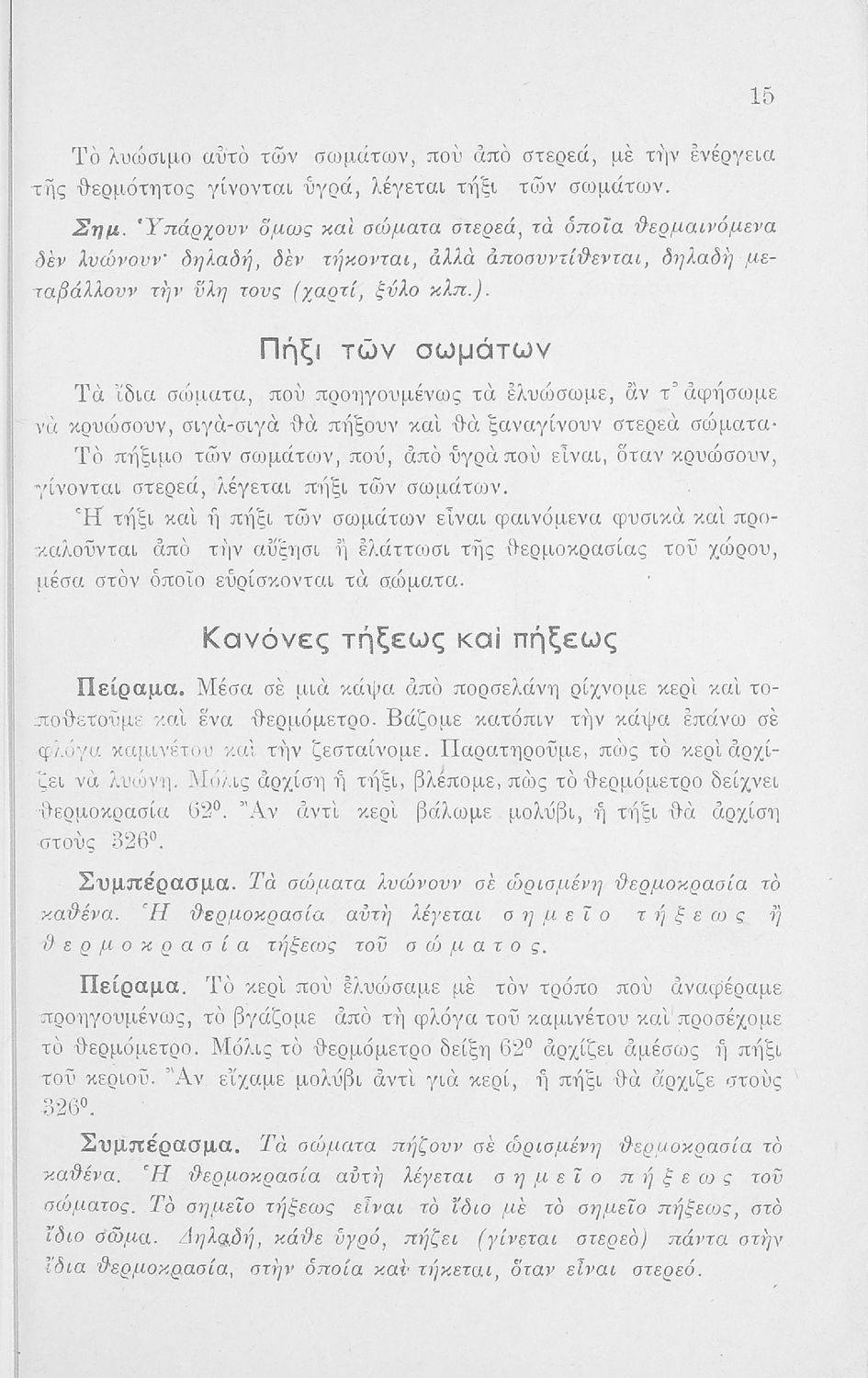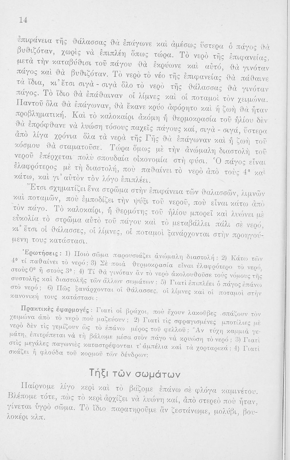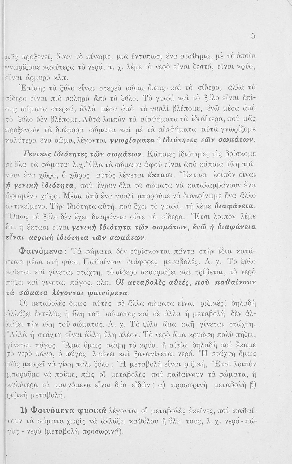Σχολικό εγχειρίδιο Φυσικής και Χημείας Ε΄ Δημοτικού που πραγματεύεται φυσικά φαινόμενα (τήξη και πήξη, βαρύτητα, άνωσης, ατμοσφαιρική πίεση) και χημικά φαινόμενα (οξείδωση μετάλλων, χρωστικές ουσίες κ.α).