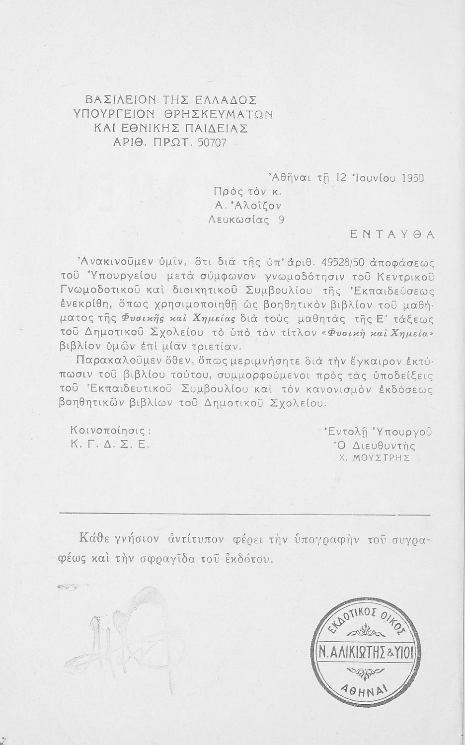 Υπουργική απόφαση / Σύμβαση: 49528/1950