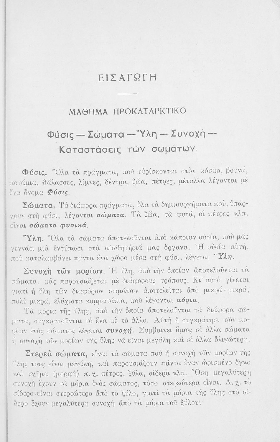 Σχολικό εγχειρίδιο Φυσικής και Χημείας Ε΄ Δημοτικού που περιλαμβάνει βασικές έννοιες της Φυσικής (ύλη, ιδιότητες των σωμάτων και φυσικοί νόμοι) και εστιάζει σε φυσικά φαινόμενα (θερμότητα, βαρύτητα, υδροστατική και αεροστατική πίεση) και χημικά φαινόμενα (οξείδωση των μετάλλων, χρωστικές ουσίες κ.α).