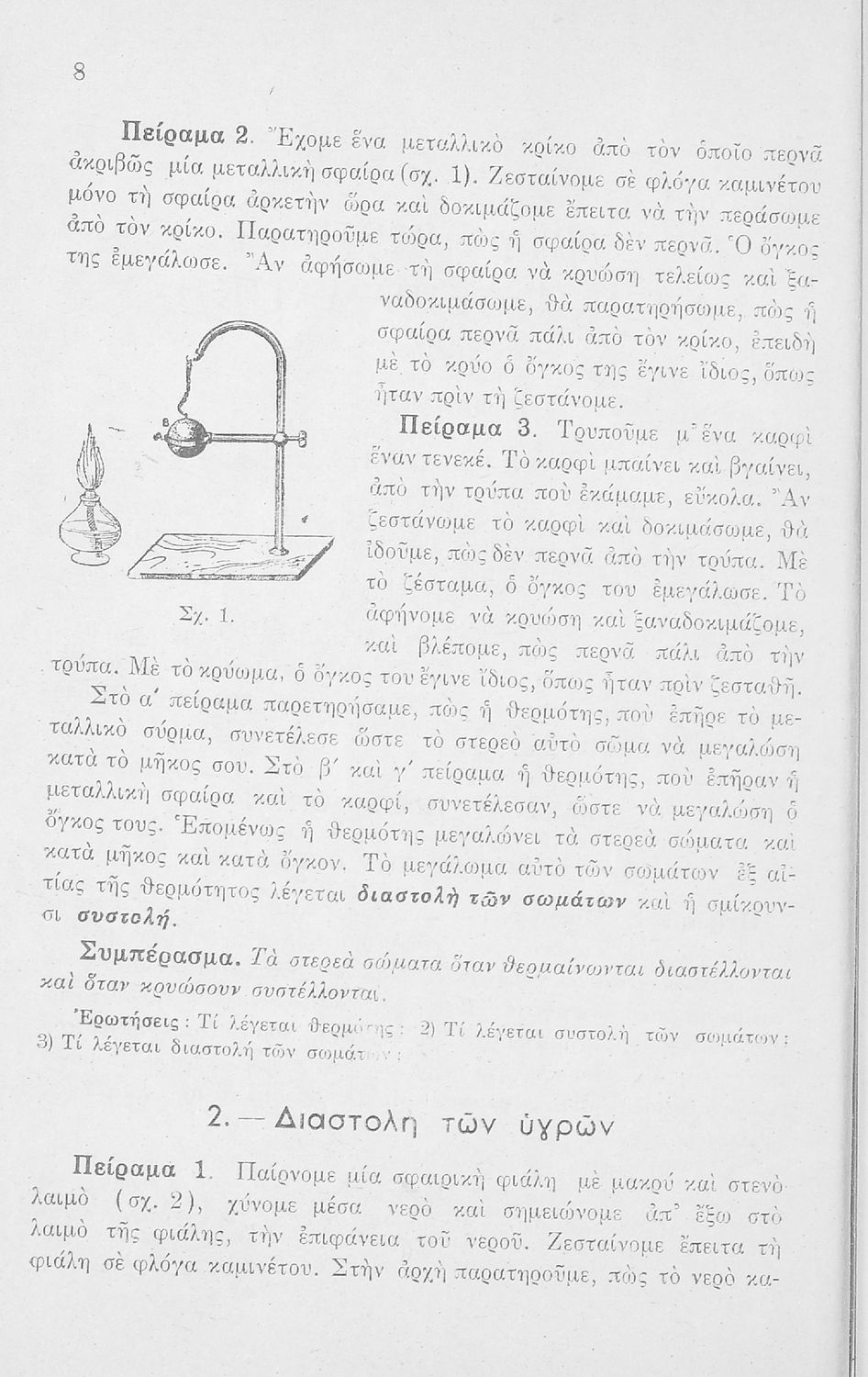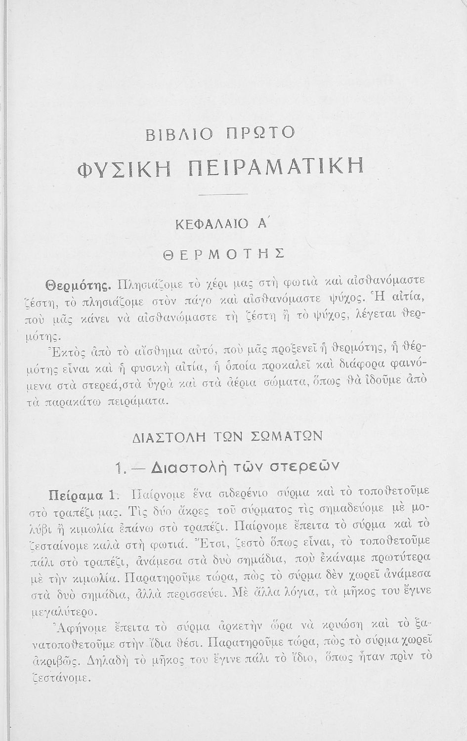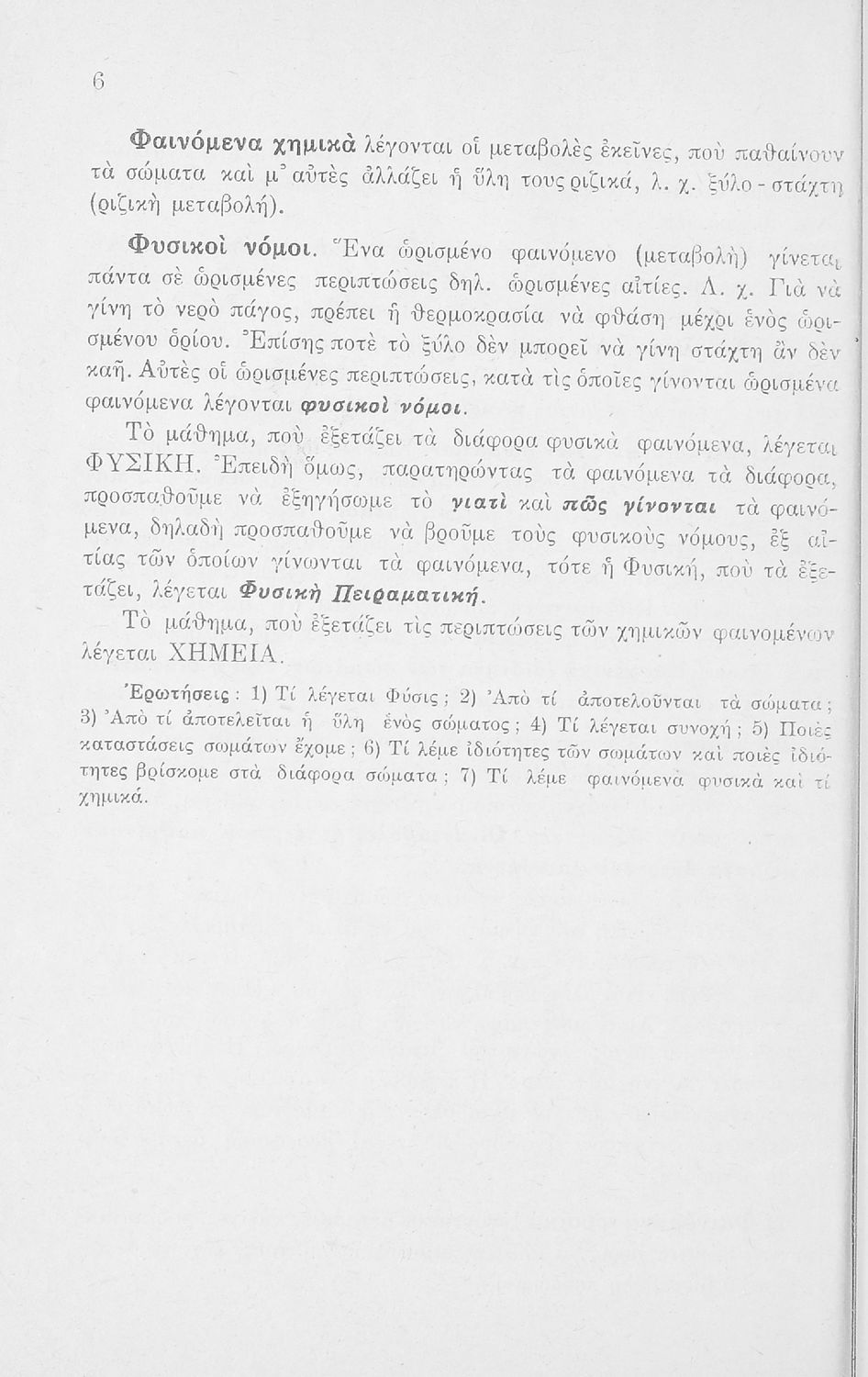 Σχολικό εγχειρίδιο Φυσικής Πειραματικής ΣΤ΄ Δημοτικού που εστιάζει στα φυσικά φαινόμενα (ακουστική, οπτική, μαγνητισμός και ηλεκτρισμός) και στα χημικά φαινόμενα (είδη του άνθρακα, παραγωγή πίσσας, ναφθαλίνης,
