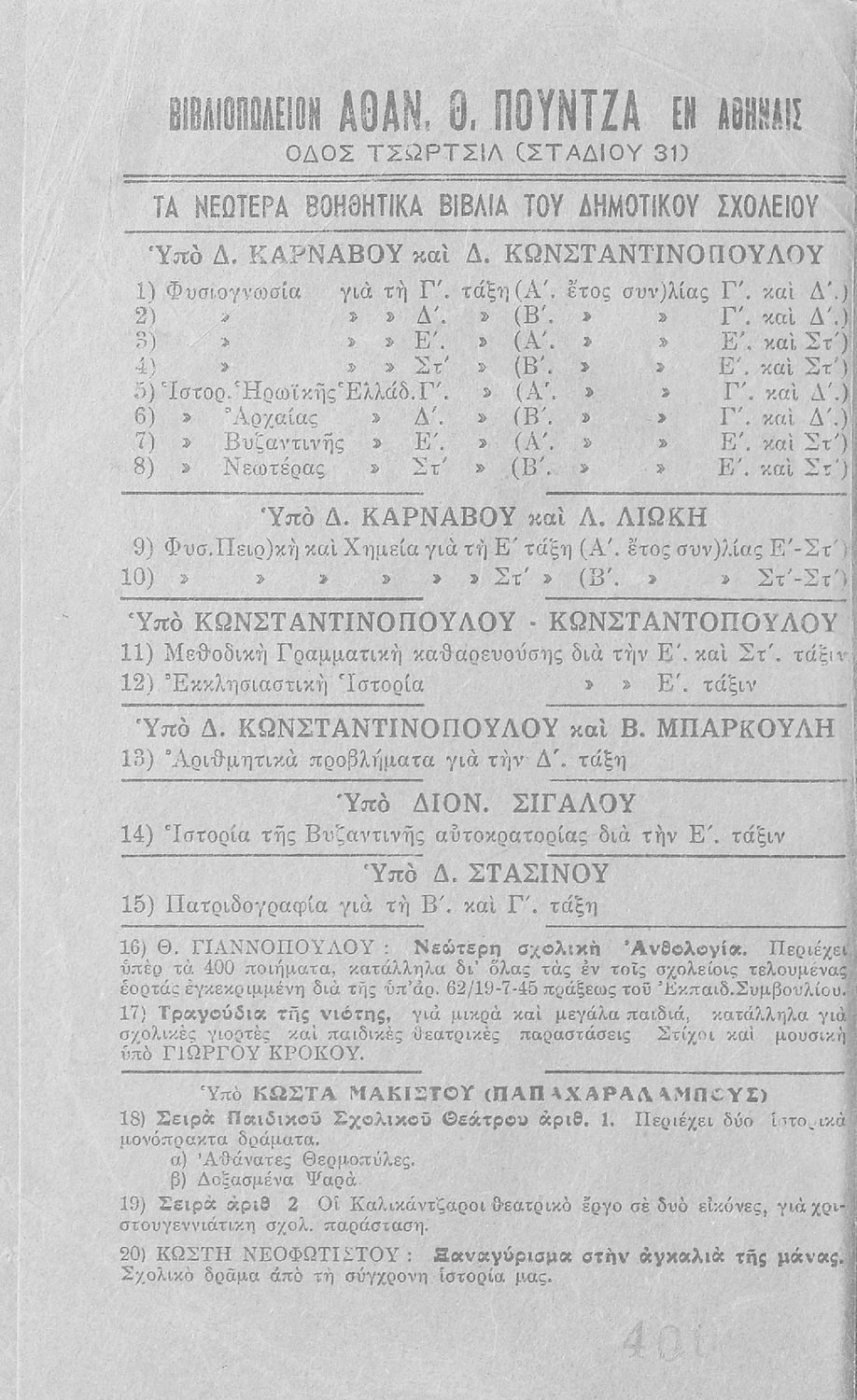 Εκδότης: Βιβλιοπωλείον Αθαν. Θ. Πούντζα