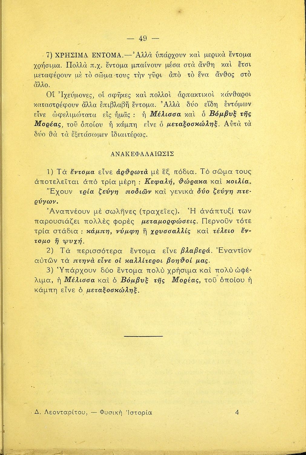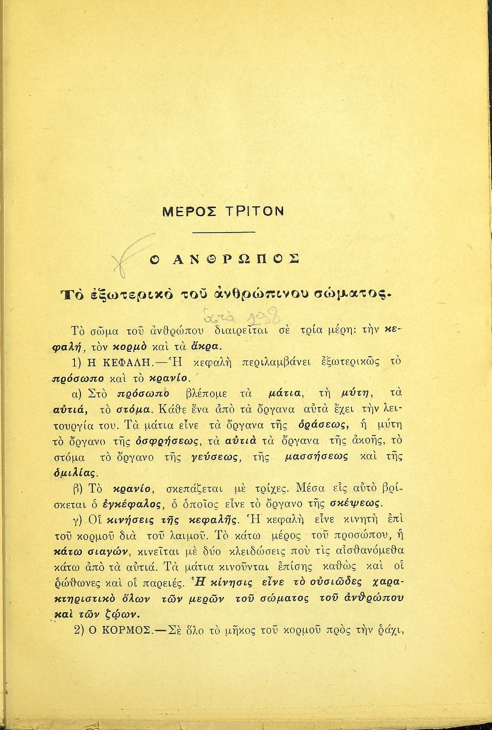 Φυσική ιστορία διά τους μαθητάς των Δημοτικών Σχολείων τάξις ΣΤ΄