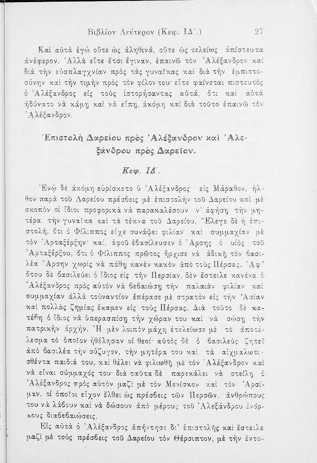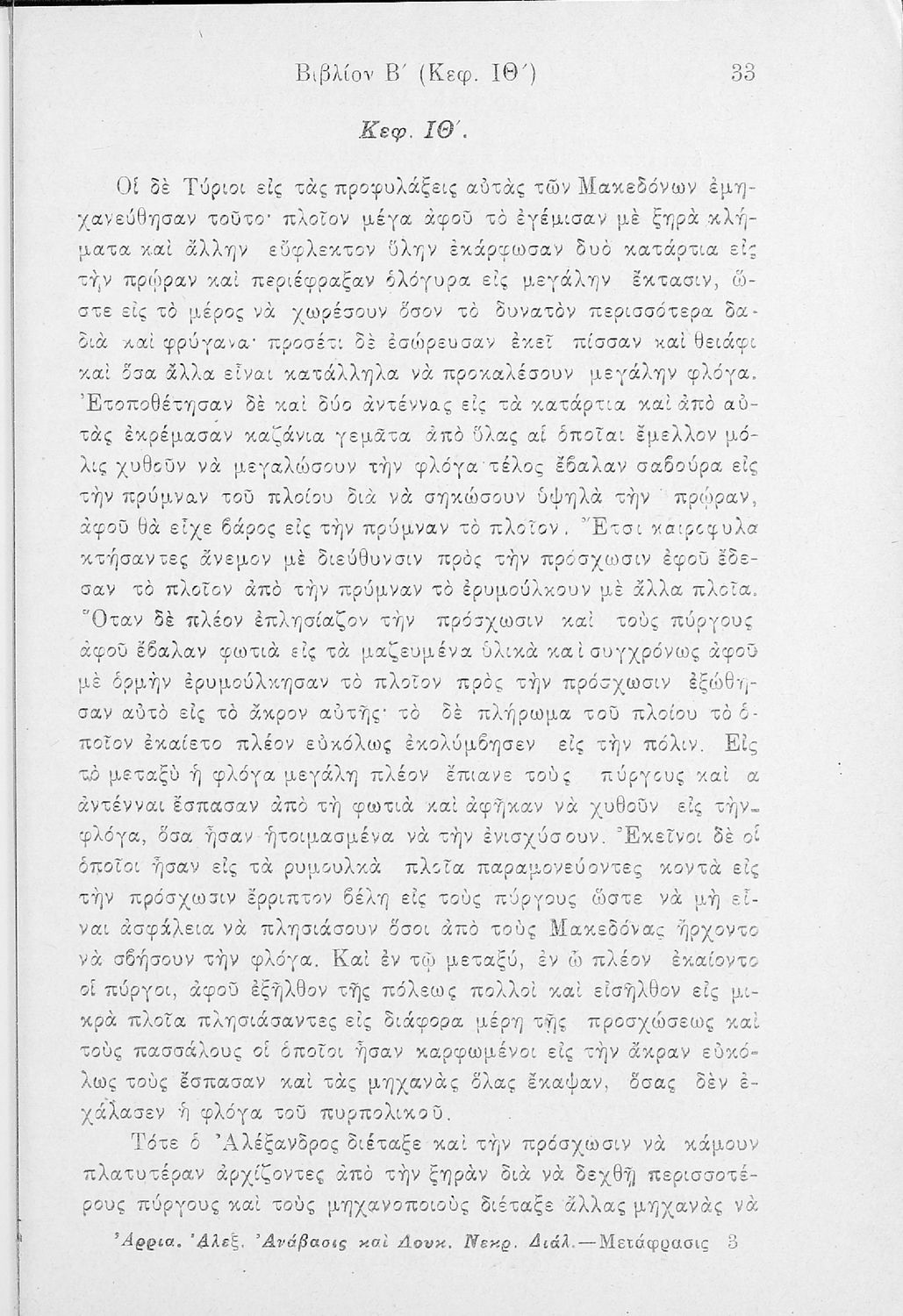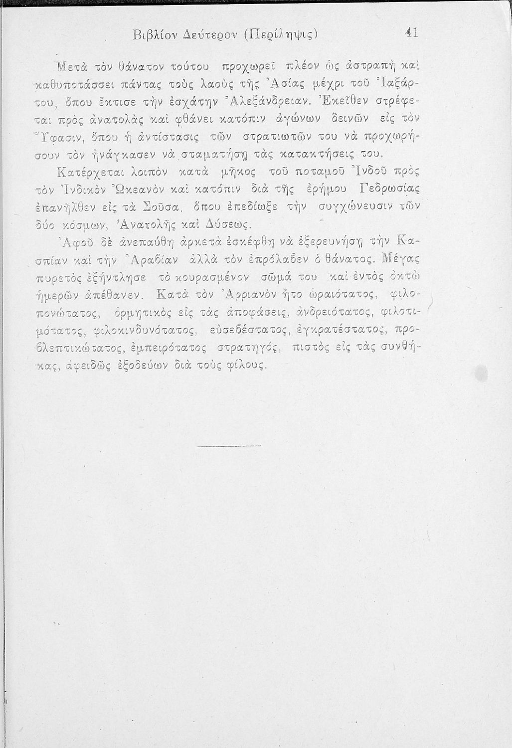 Μαθητικό βοήθημα Αρχαίων Ελληνικών για τα Αστικά Σχολεία και Παρθεναγωγεία που περιέχει μετάφραση αποσπασμάτων από το έργο του Αρριανού Αλέξανδρου Ανάβασις και του Λουκιανού Νεκρικοί Διάλογοι, ερμηνευτικά και πραγματολογικά σχόλια.