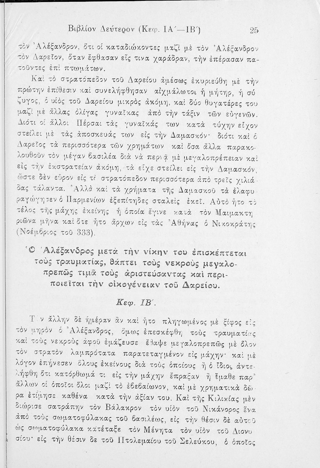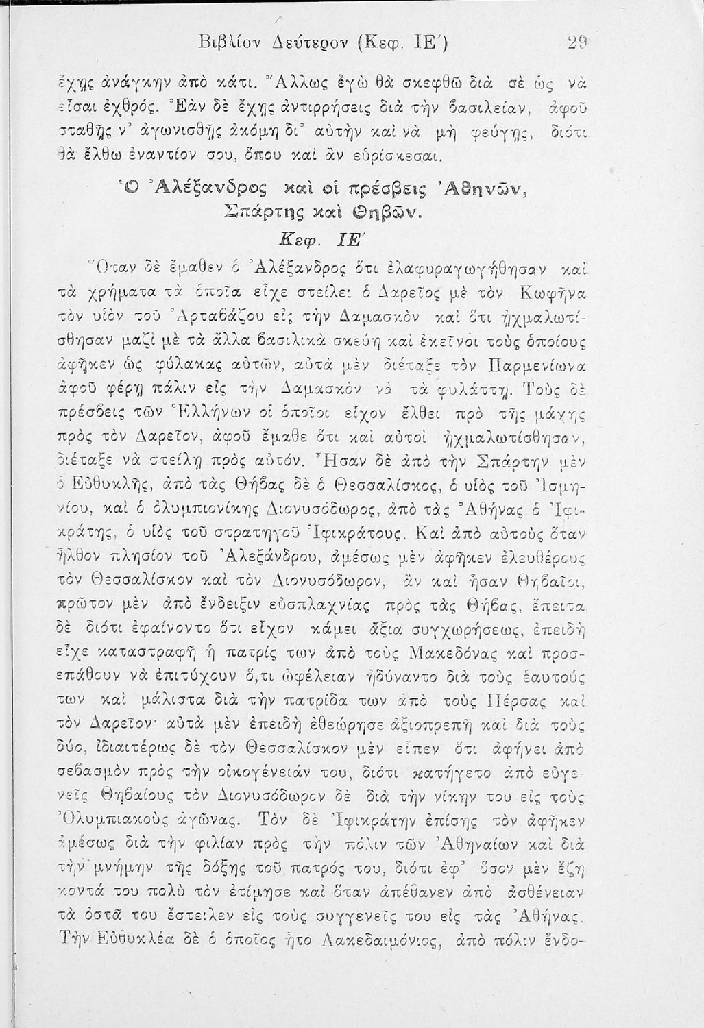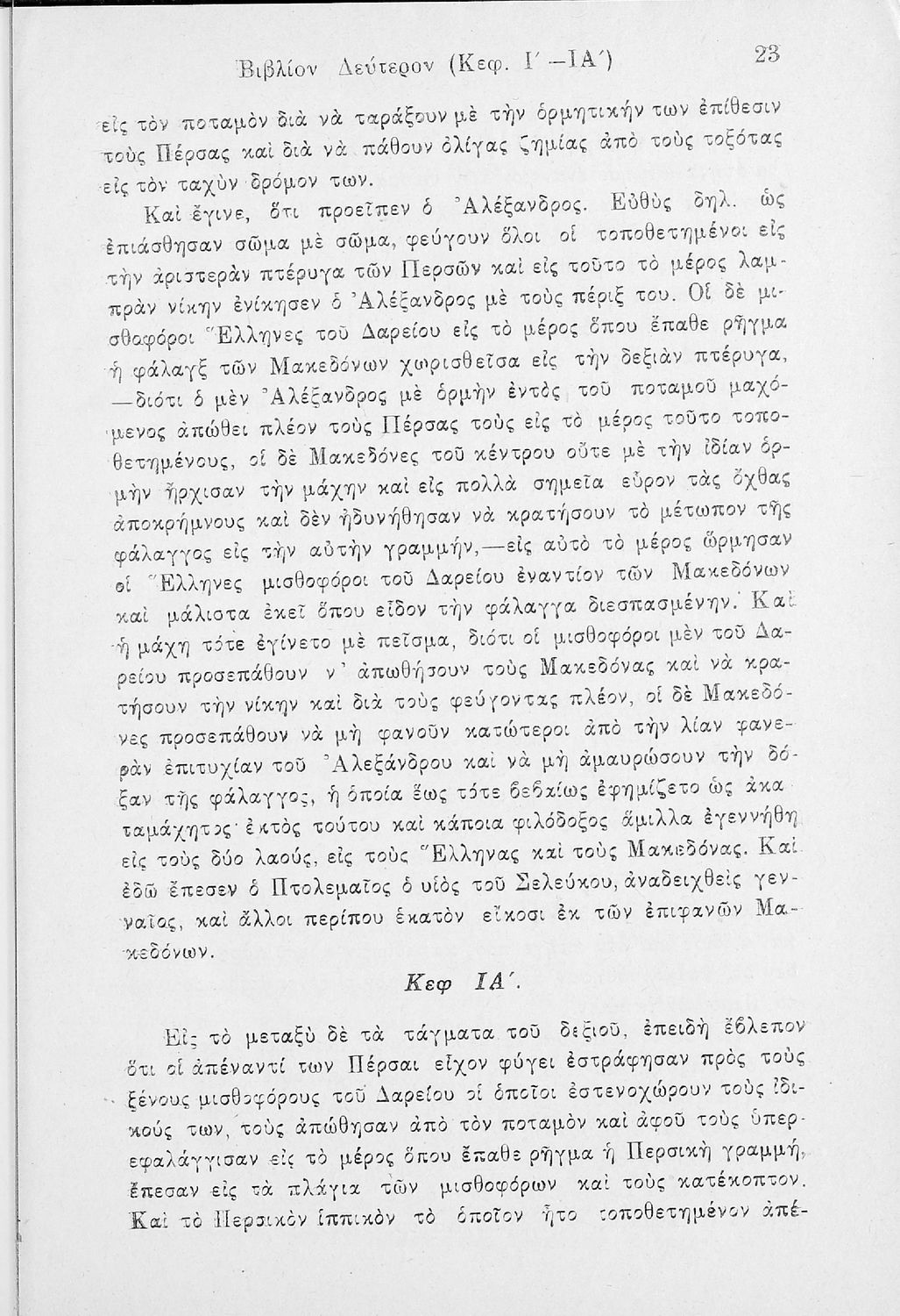 Μαθητικό βοήθημα Αρχαίων Ελληνικών για τα Αστικά Σχολεία και Παρθεναγωγεία που περιέχει μετάφραση αποσπασμάτων από το έργο του Αρριανού Αλέξανδρου Ανάβασις και του Λουκιανού Νεκρικοί Διάλογοι, ερμηνευτικά και πραγματολογικά σχόλια.