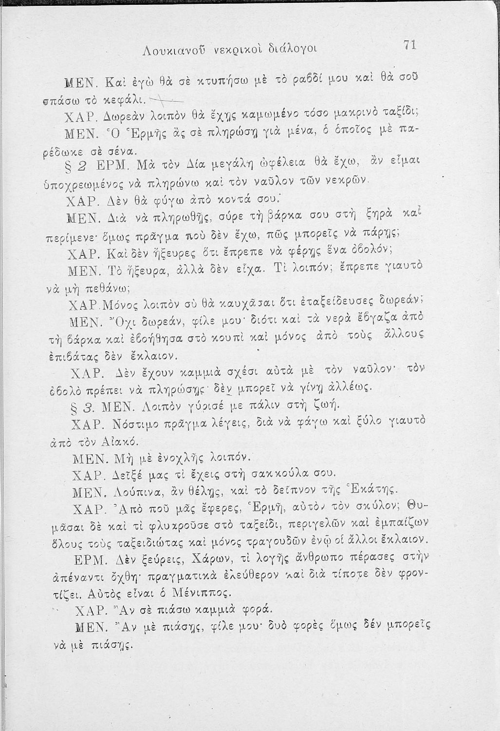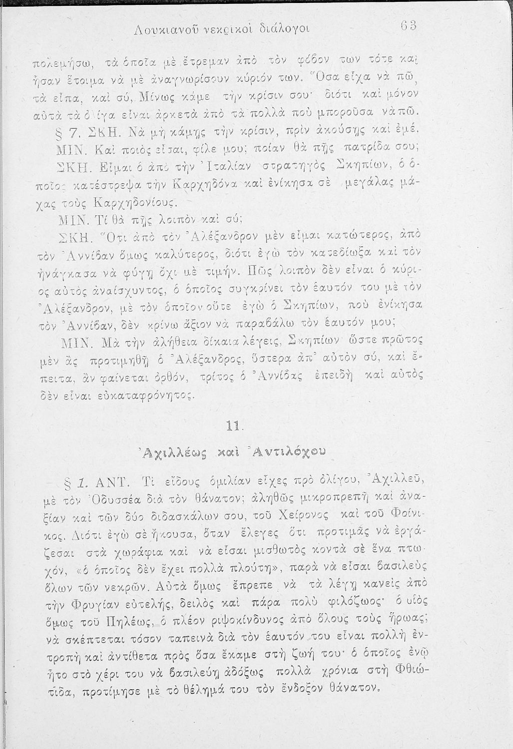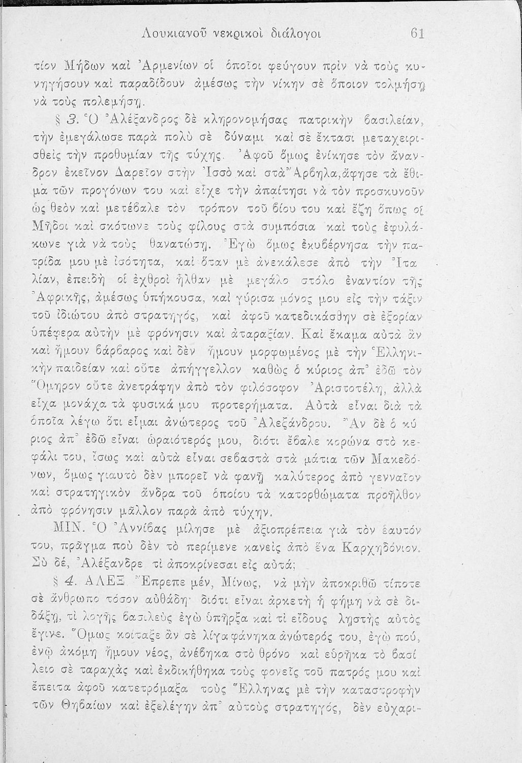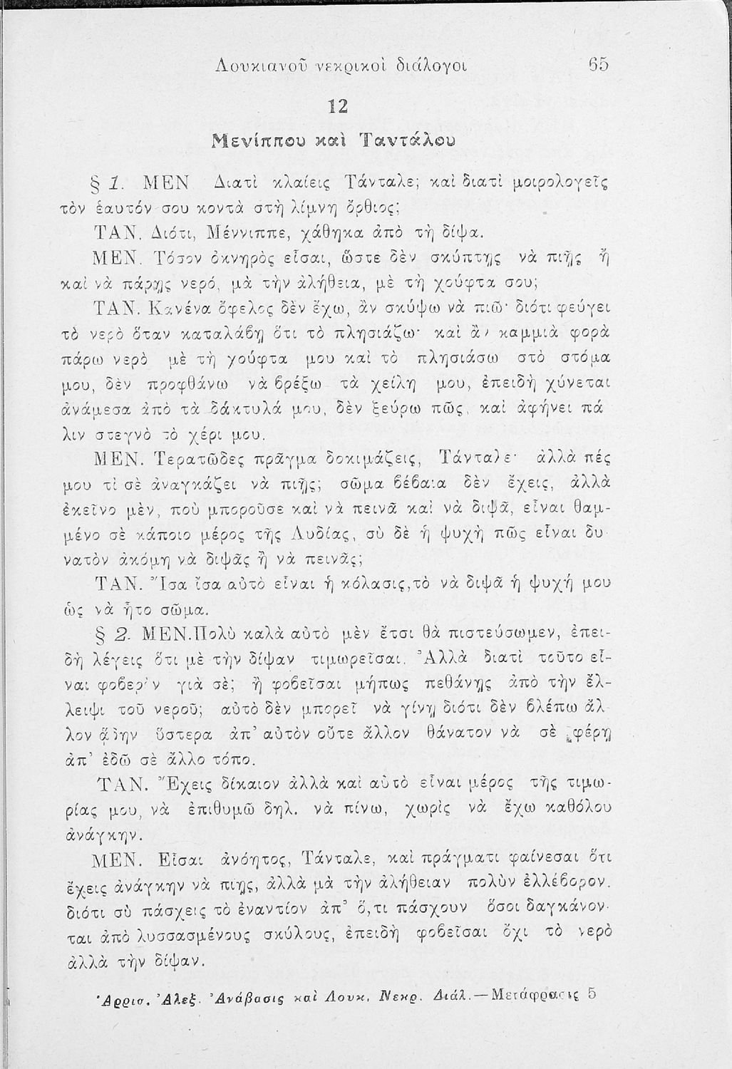Μαθητικό βοήθημα Αρχαίων Ελληνικών για τα Αστικά Σχολεία και Παρθεναγωγεία που περιέχει μετάφραση αποσπασμάτων από το έργο του Αρριανού Αλέξανδρου Ανάβασις και του Λουκιανού Νεκρικοί Διάλογοι, ερμηνευτικά και πραγματολογικά σχόλια.