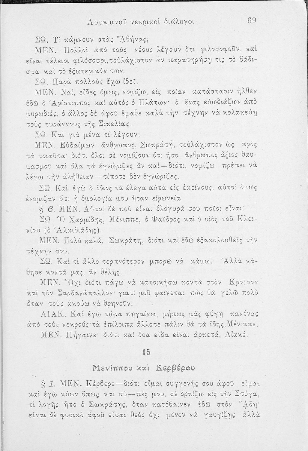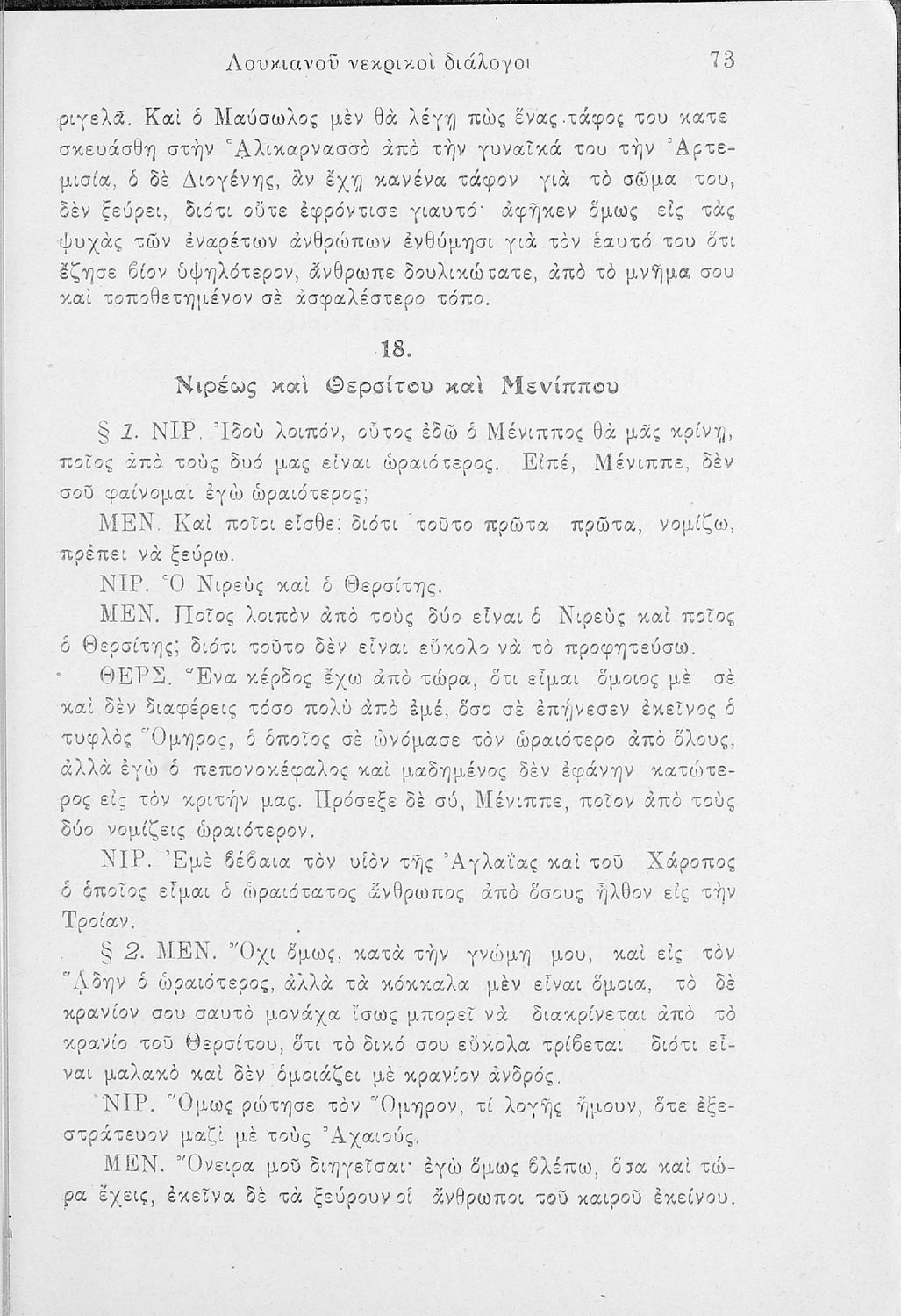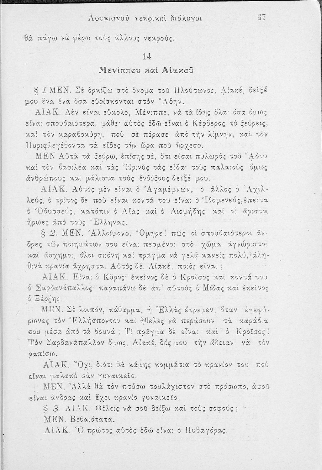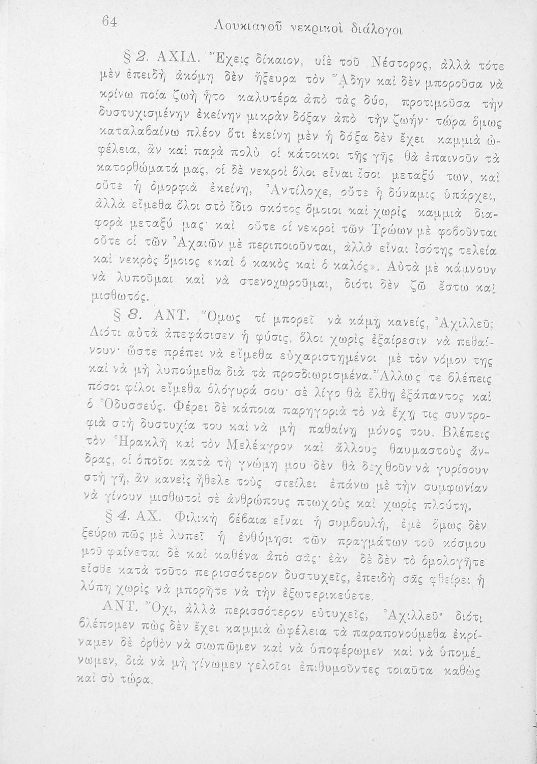 Μαθητικό βοήθημα Αρχαίων Ελληνικών για τα Αστικά Σχολεία και Παρθεναγωγεία που περιέχει μετάφραση αποσπασμάτων από το έργο του Αρριανού Αλέξανδρου Ανάβασις και του Λουκιανού Νεκρικοί Διάλογοι, ερμηνευτικά και πραγματολογικά σχόλια.