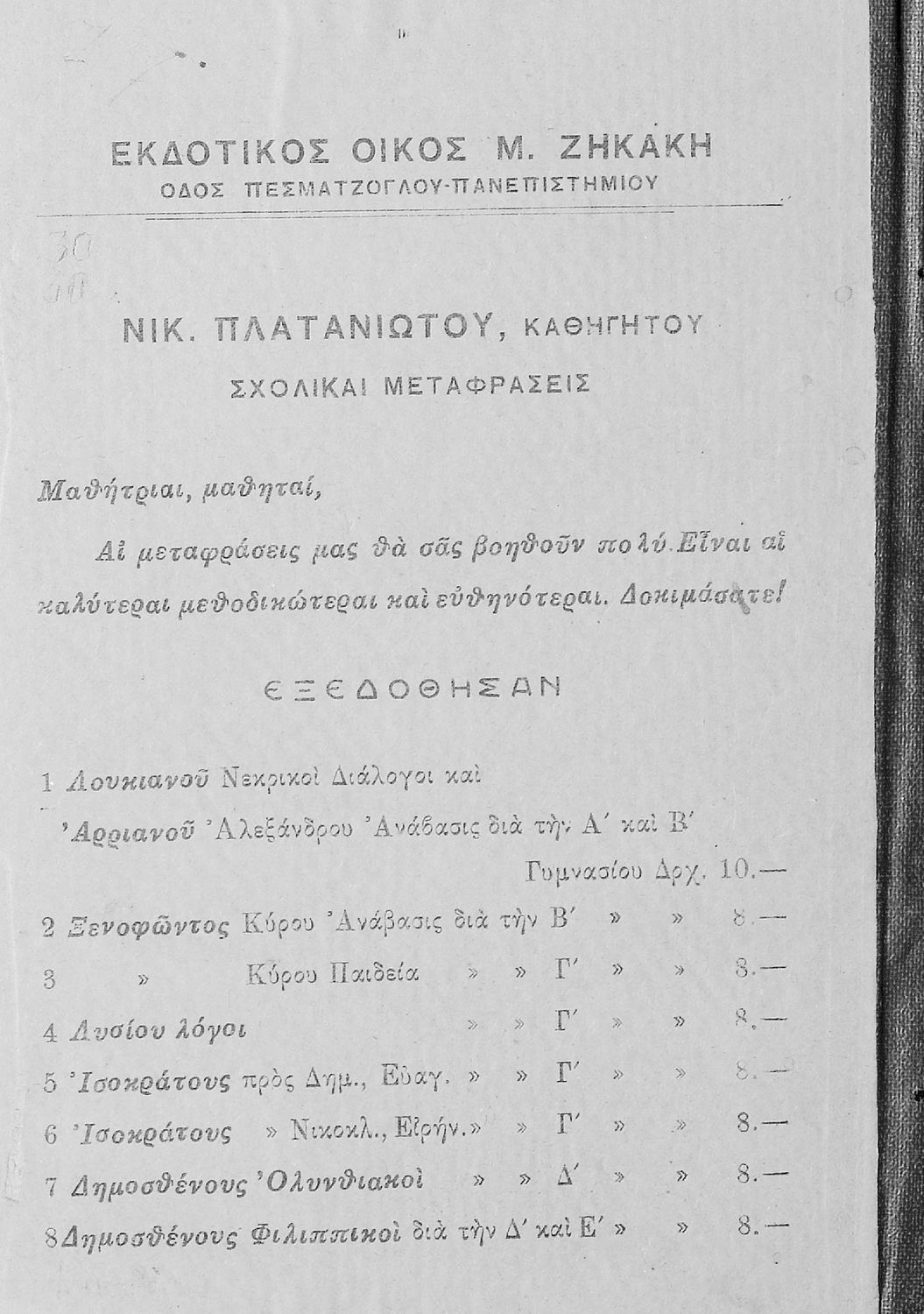 Εκδότης: Μιχ. Σ. Ζηκάκης Έτος έκδοσης: 1934 Τόπος έκδοσης: Αθήνα Έκδοση: 2η |