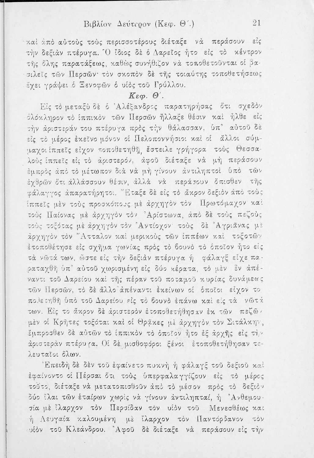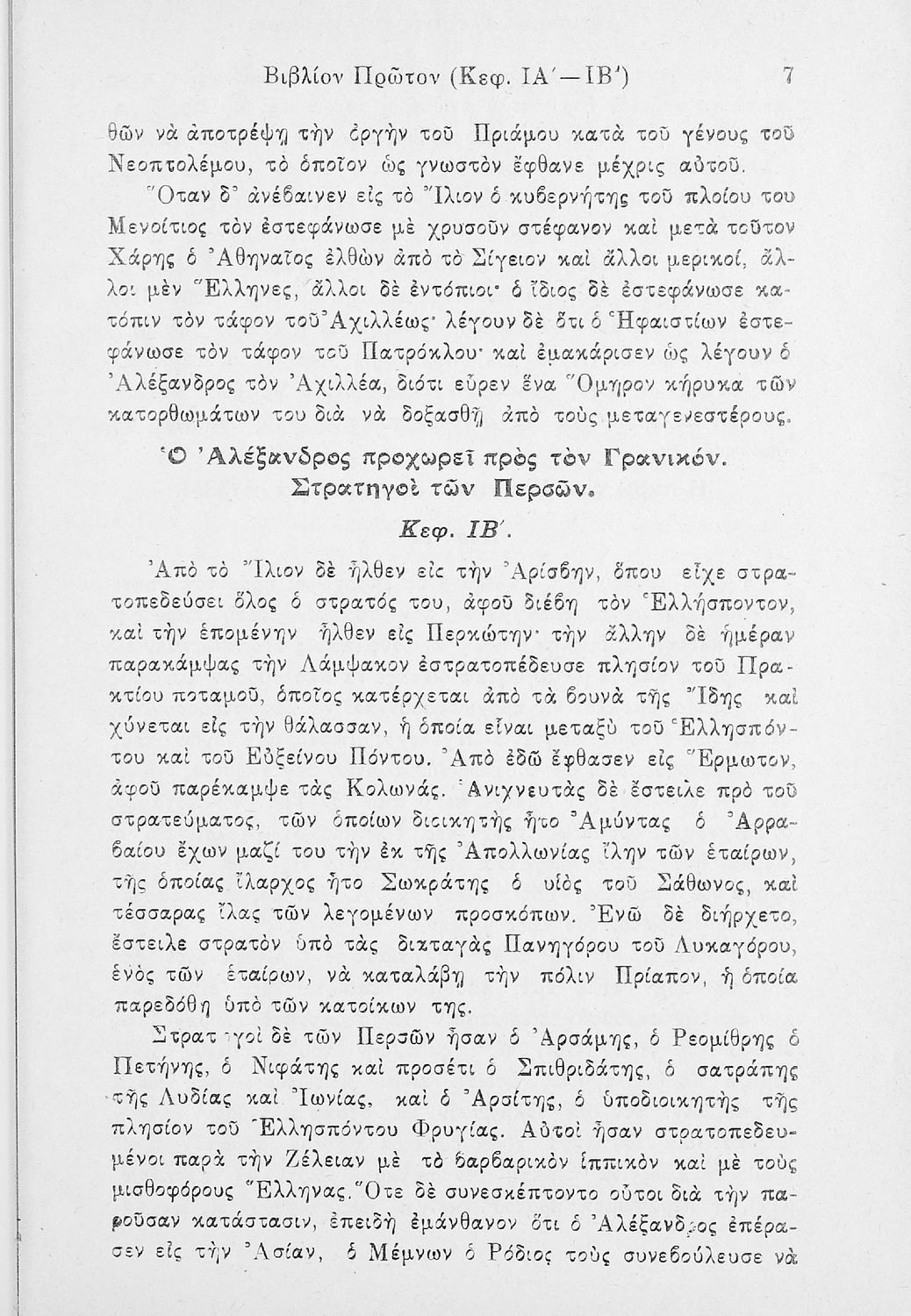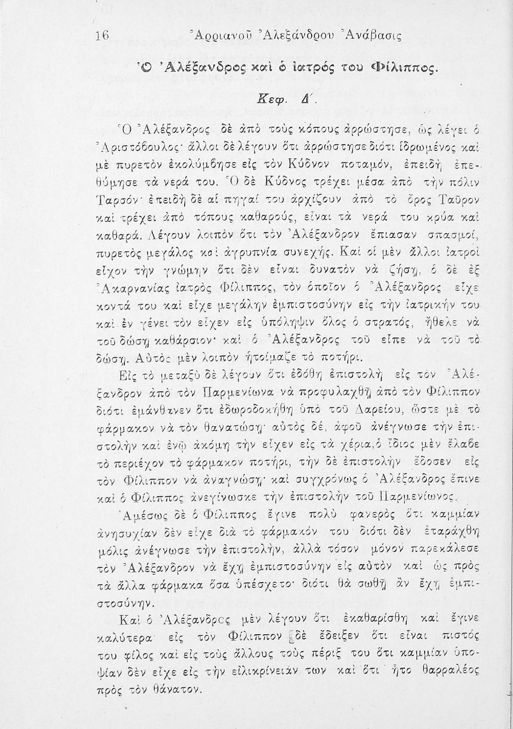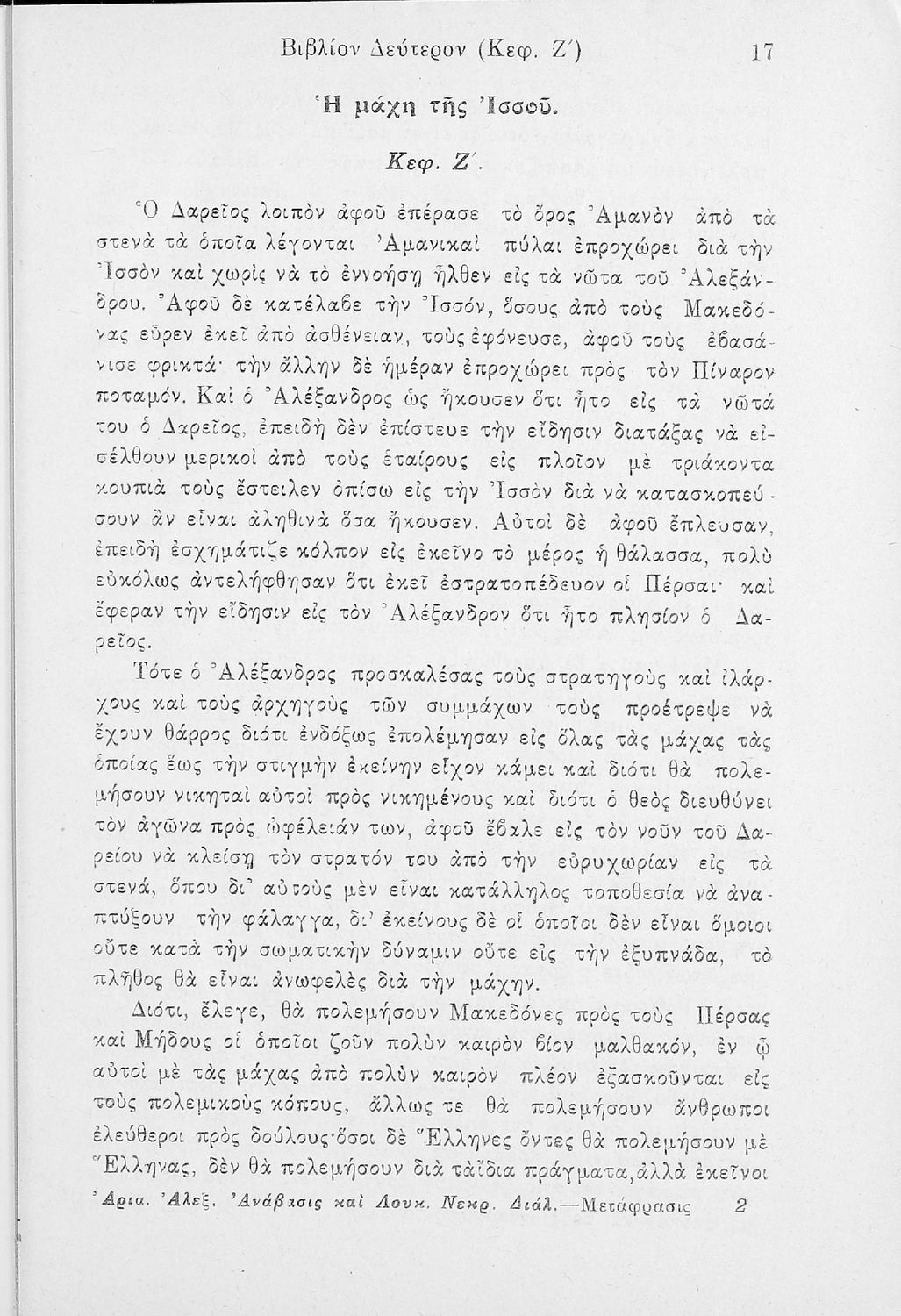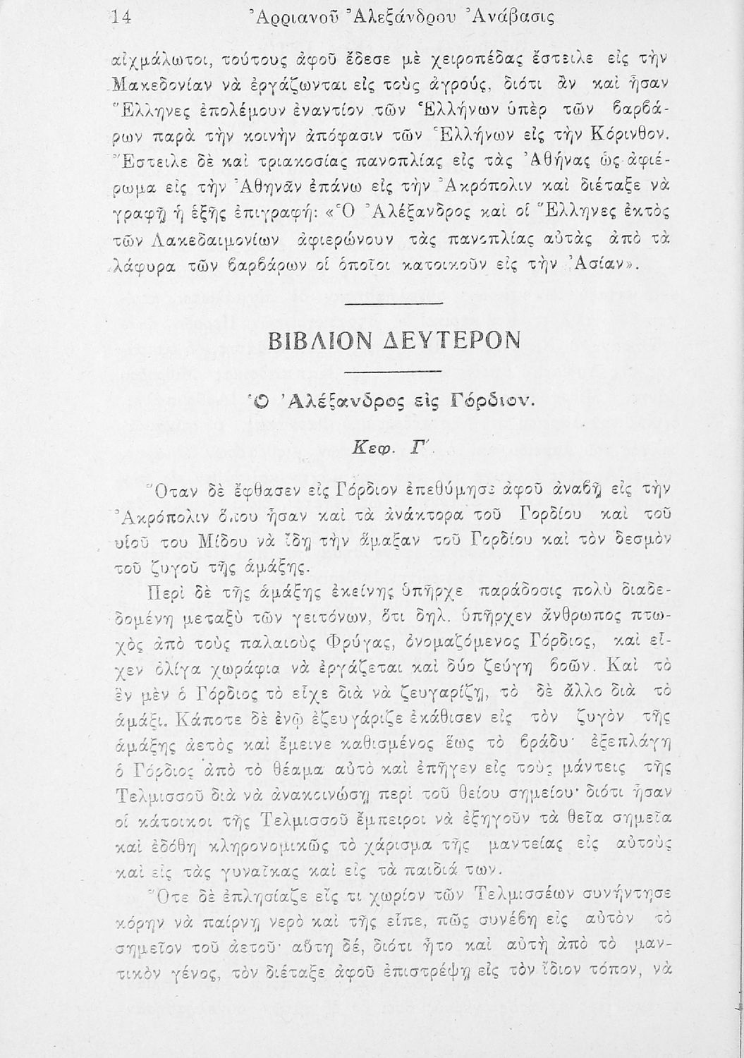 Μαθητικό βοήθημα Αρχαίων Ελληνικών για τα Αστικά Σχολεία και Παρθεναγωγεία που περιέχει μετάφραση αποσπασμάτων από το έργο του Αρριανού Αλέξανδρου Ανάβασις και του Λουκιανού Νεκρικοί Διάλογοι, ερμηνευτικά και πραγματολογικά σχόλια.