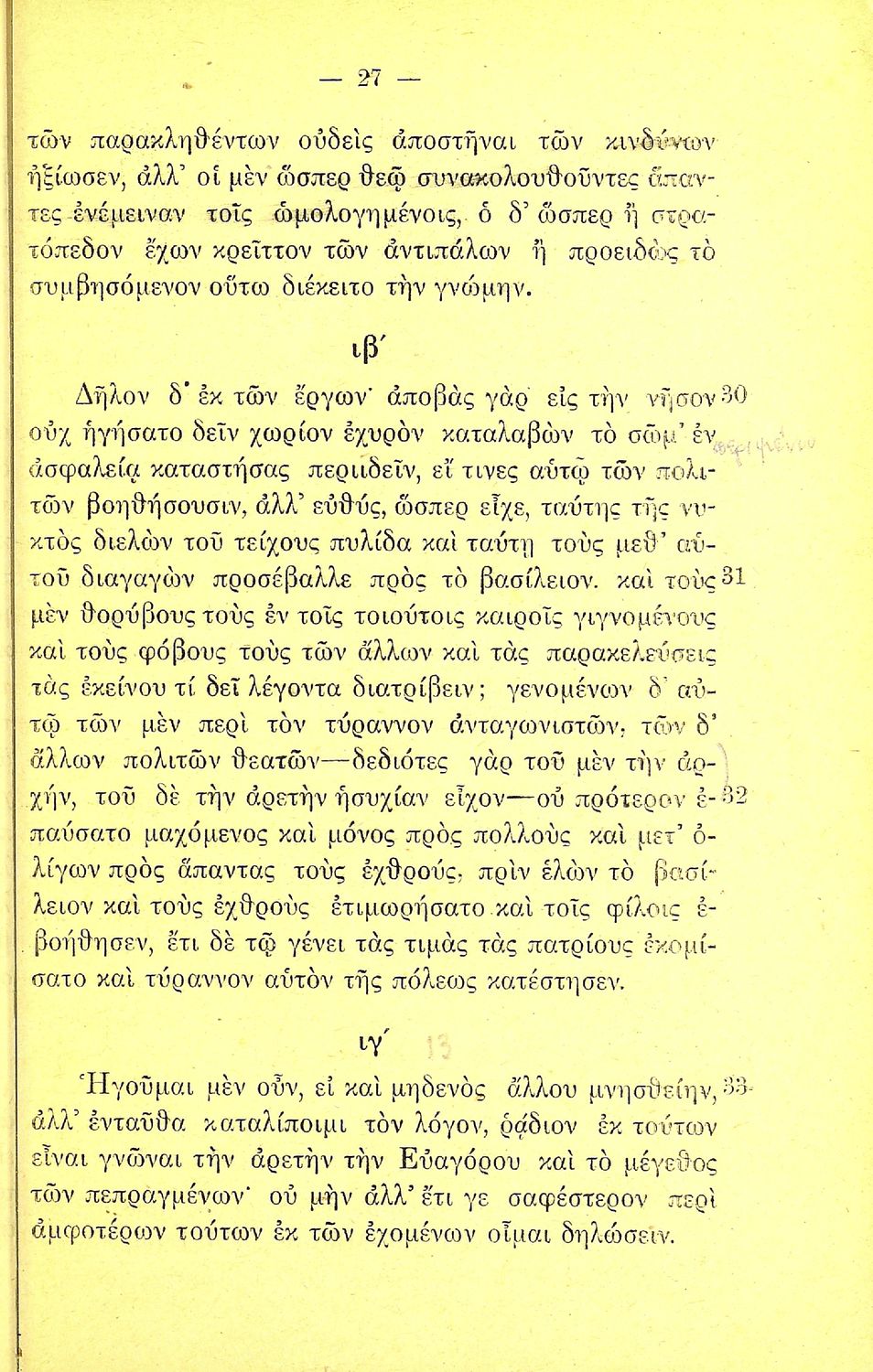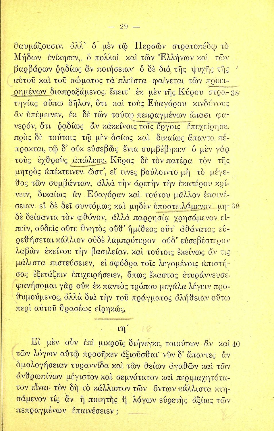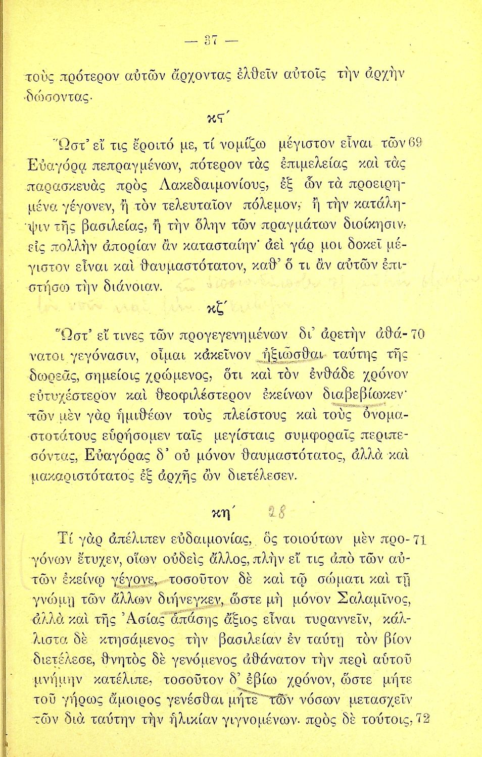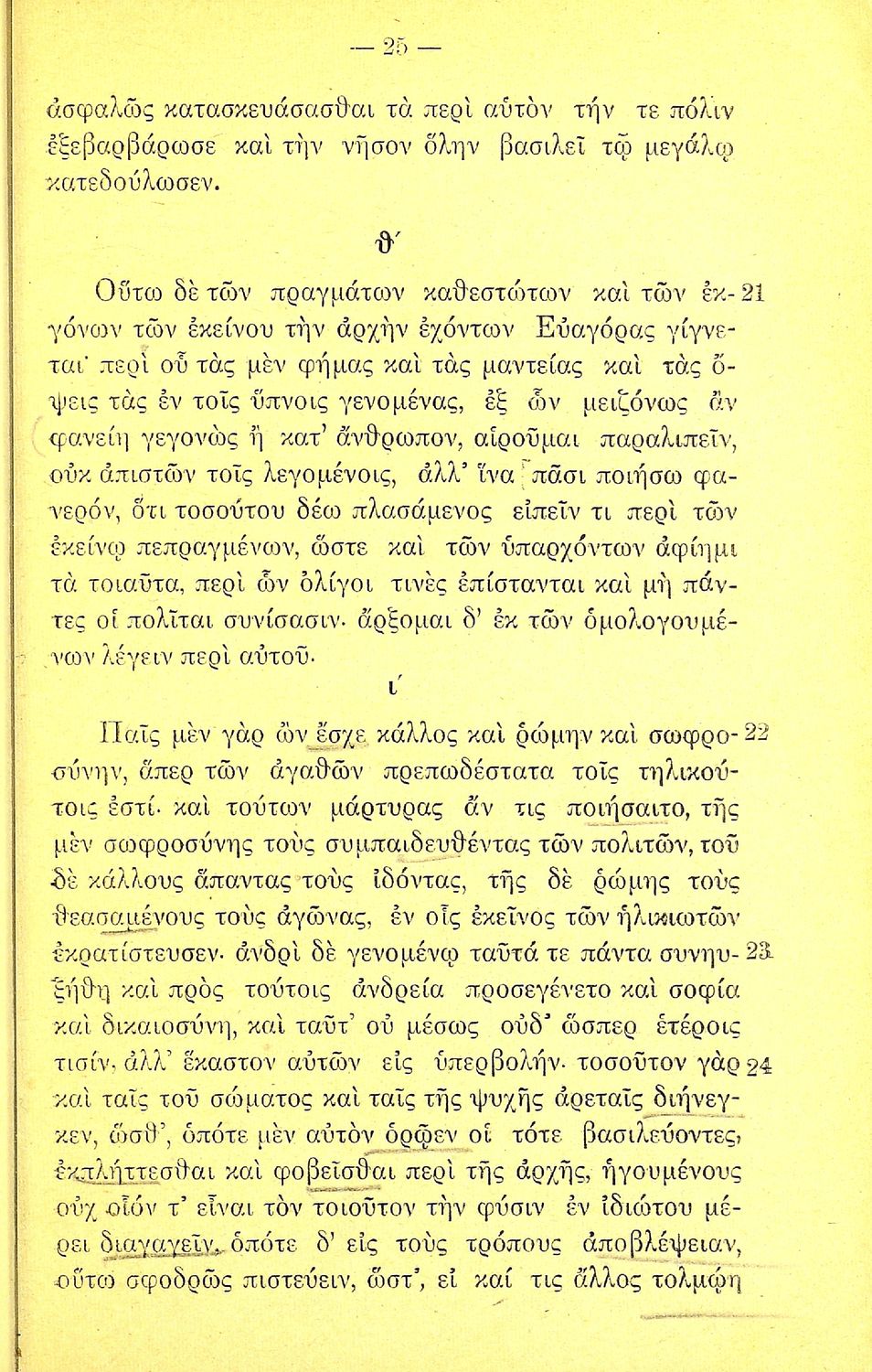 Σχολικό εγχειρίδιο Αρχαίων Ελληνικών Ε΄ Εξαταξίου Γυμνασίου που περιλαμβάνει εισαγωγή στη ζωή και στο έργο του Ισοκράτη, τους Λόγους του Προς Νικοκλέα και Ευαγόρας και ερμηνευτικά και λεξιλογικά σχόλια.