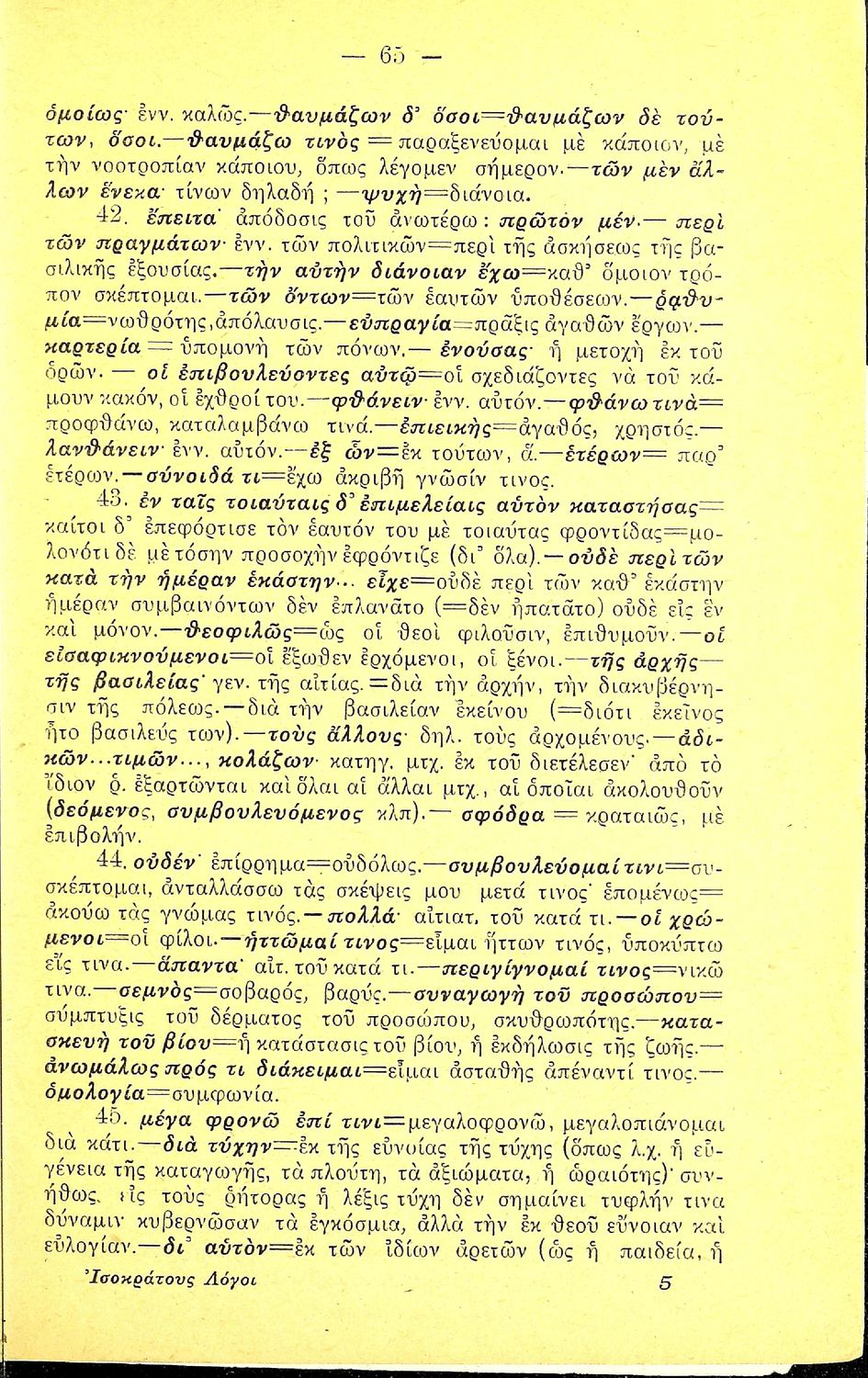 Σχολικό εγχειρίδιο Αρχαίων Ελληνικών Ε΄ Εξαταξίου Γυμνασίου που περιλαμβάνει εισαγωγή στη ζωή και στο έργο του Ισοκράτη, τους Λόγους του Προς Νικοκλέα και Ευαγόρας και ερμηνευτικά και λεξιλογικά σχόλια.