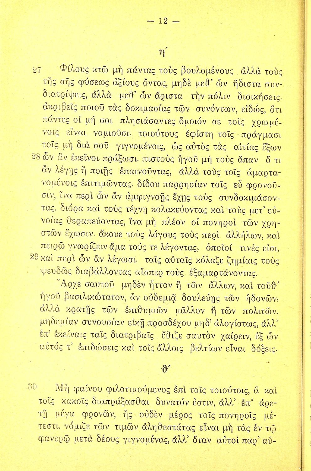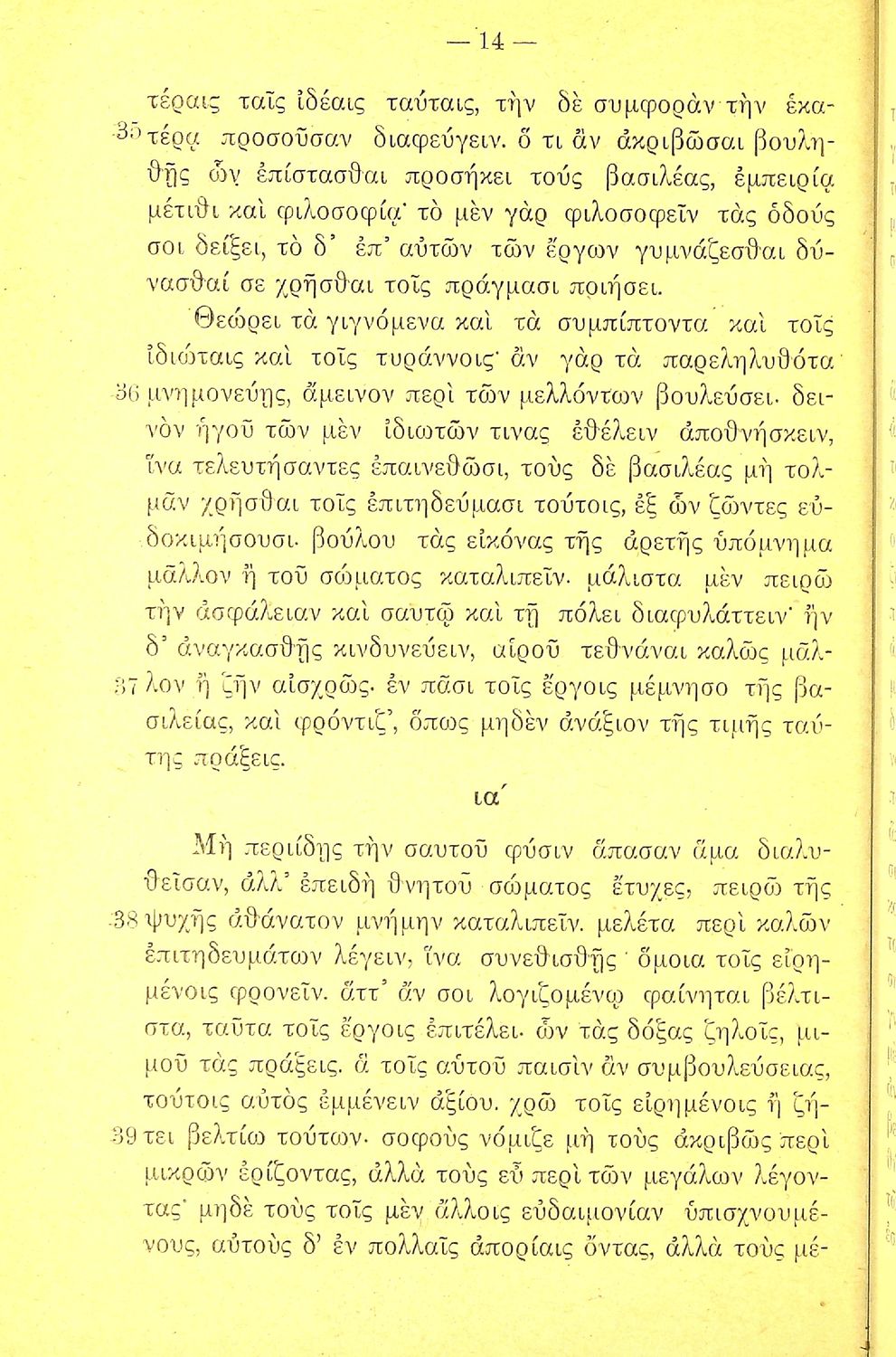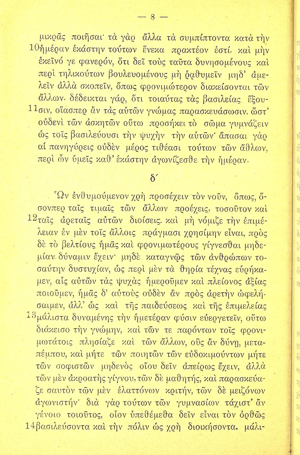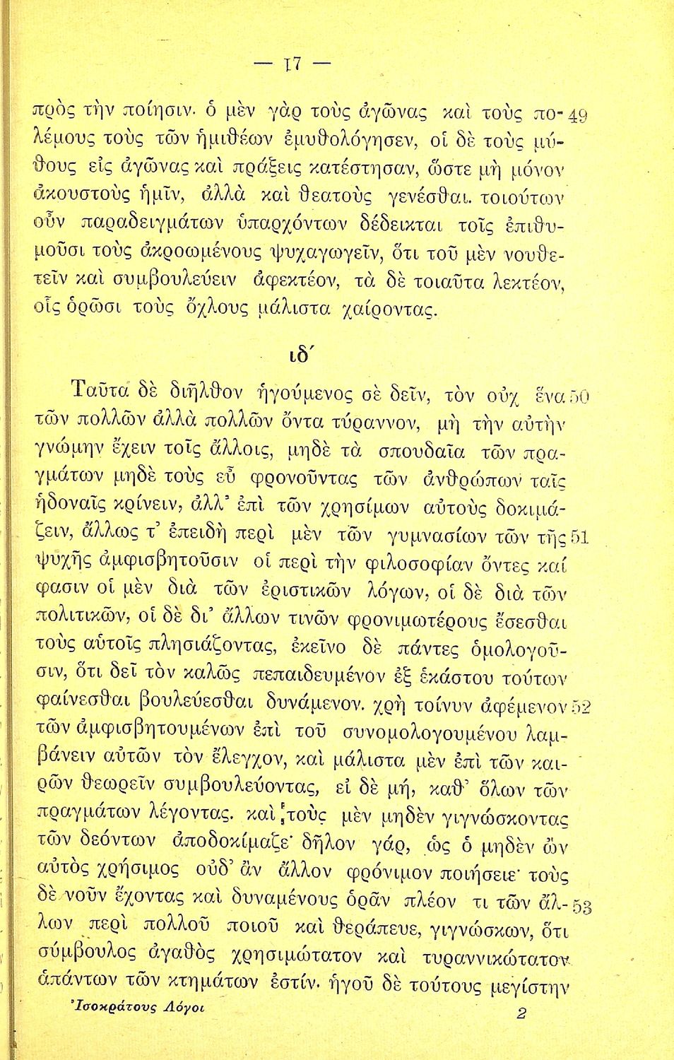 Σχολικό εγχειρίδιο Αρχαίων Ελληνικών Ε΄ Εξαταξίου Γυμνασίου που περιλαμβάνει εισαγωγή στη ζωή και στο έργο του Ισοκράτη, τους Λόγους του Προς Νικοκλέα και Ευαγόρας και ερμηνευτικά και λεξιλογικά σχόλια.