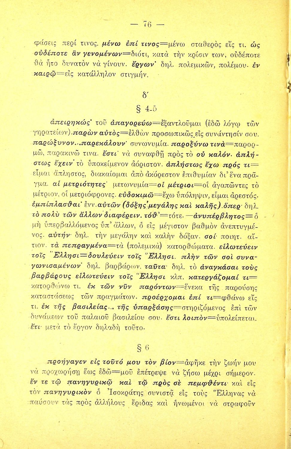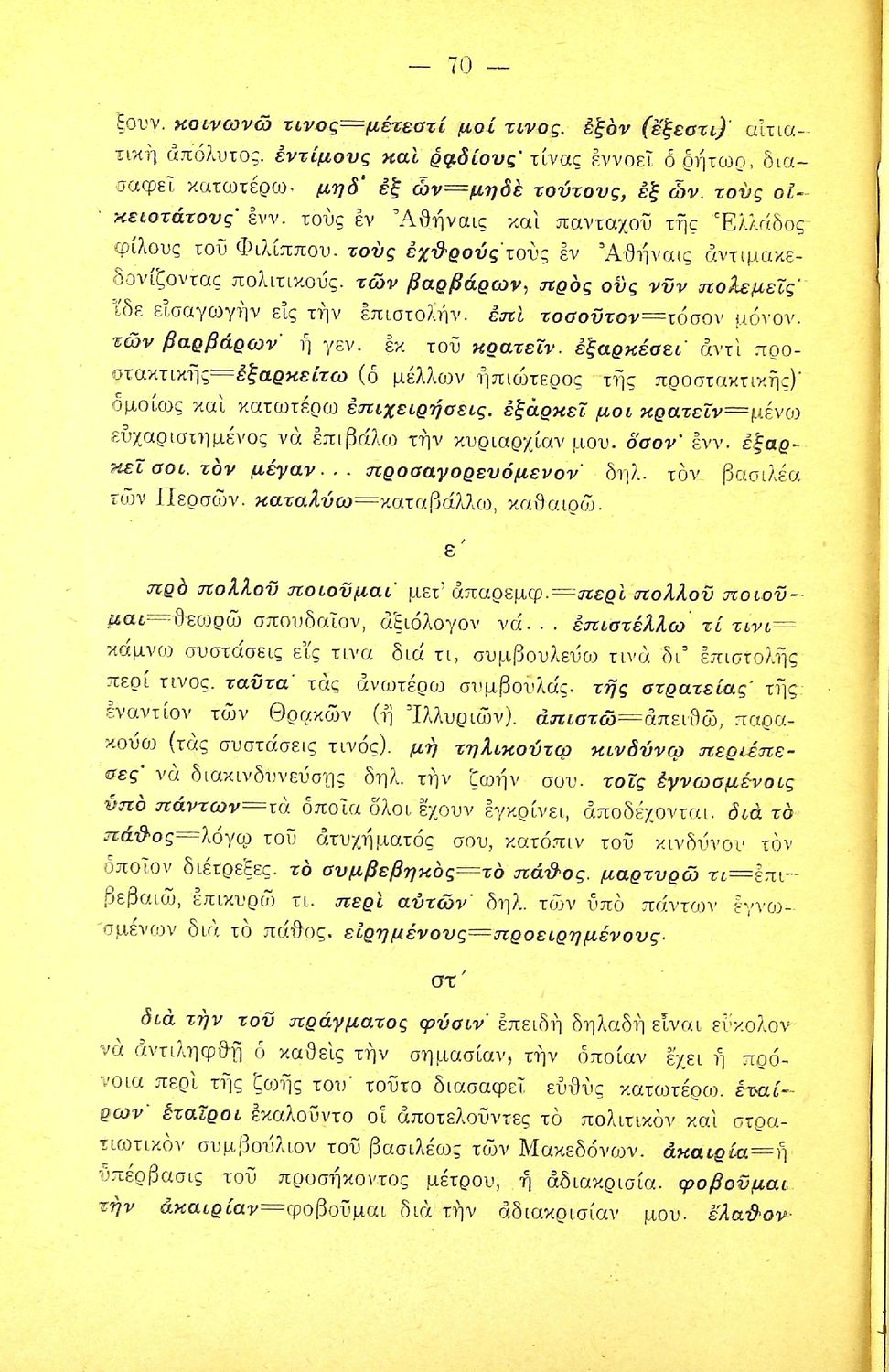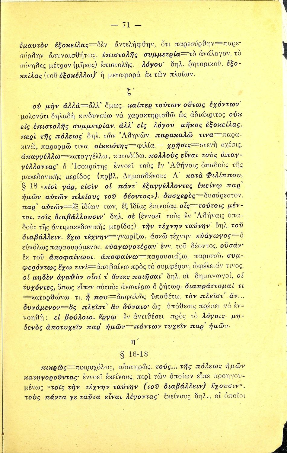 Δημοσθένης, Λυκούργος, Ισοκράτης, Κυριάκος Κοσμάς, Νικ. Φραγκίσκος, Μιχ. Περίδης, Γ. Παπαοικονόμου (σχόλια)