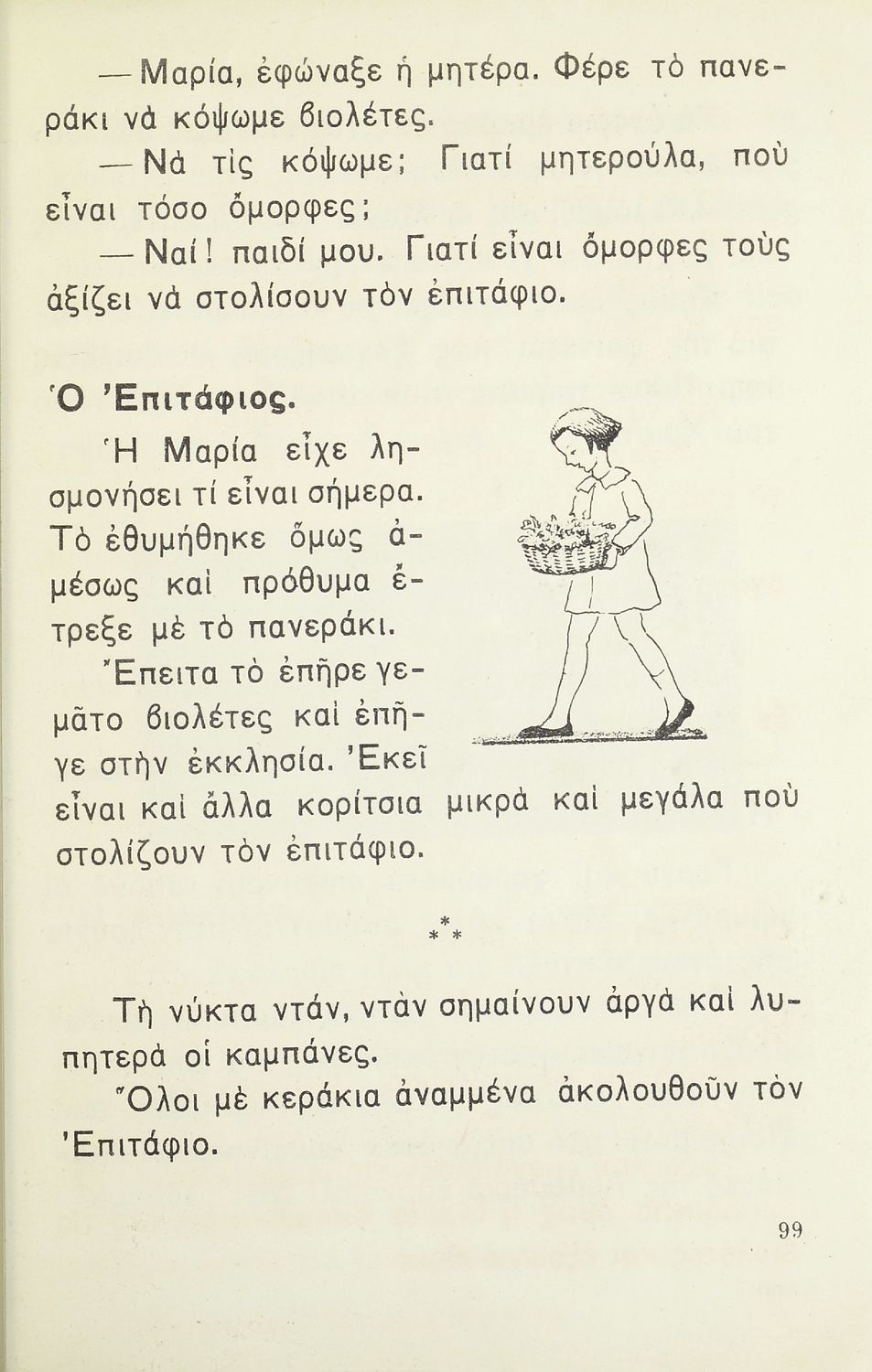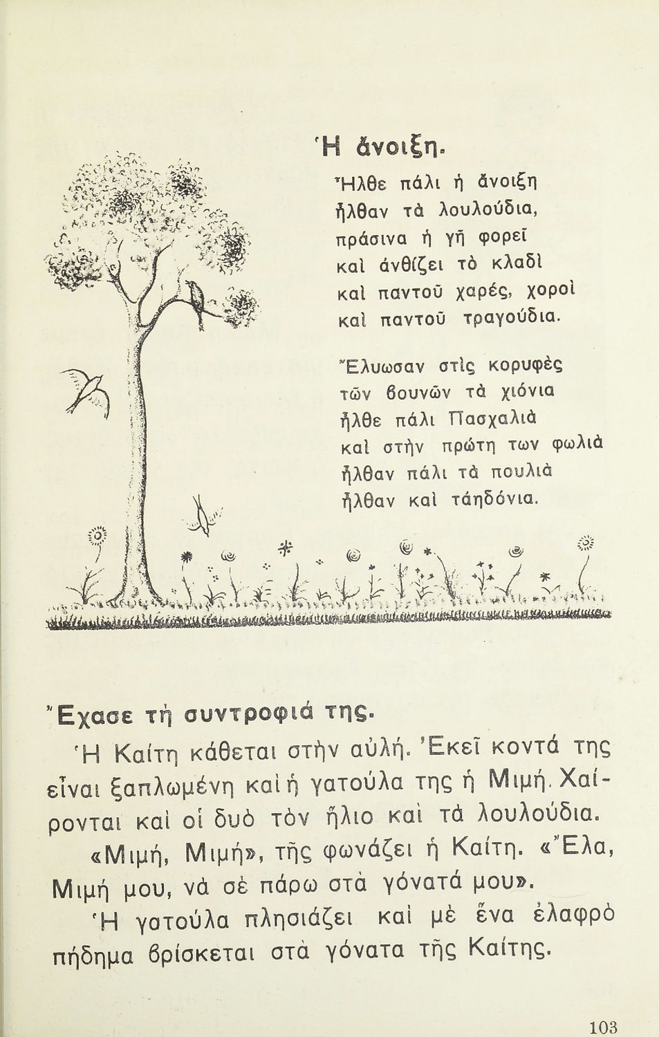 Αναγνωστικό Α΄ Δημοτικού που περιλαμβάνει τα γράμματα του ελληνικού αλφαβήτου, εικόνες, τις πρώτες συλλαβές και λέξεις και μικρά ποιήματα και διηγήματα με ιστορίες από την φύση, την οικογένεια και την ελληνική ύπαιθρο.