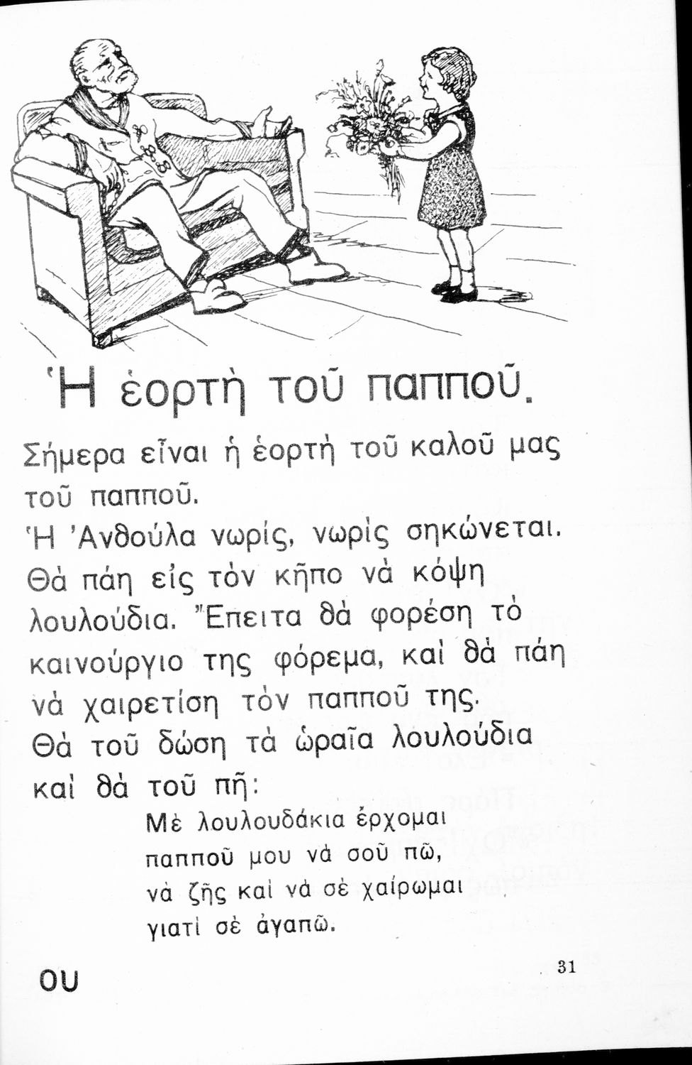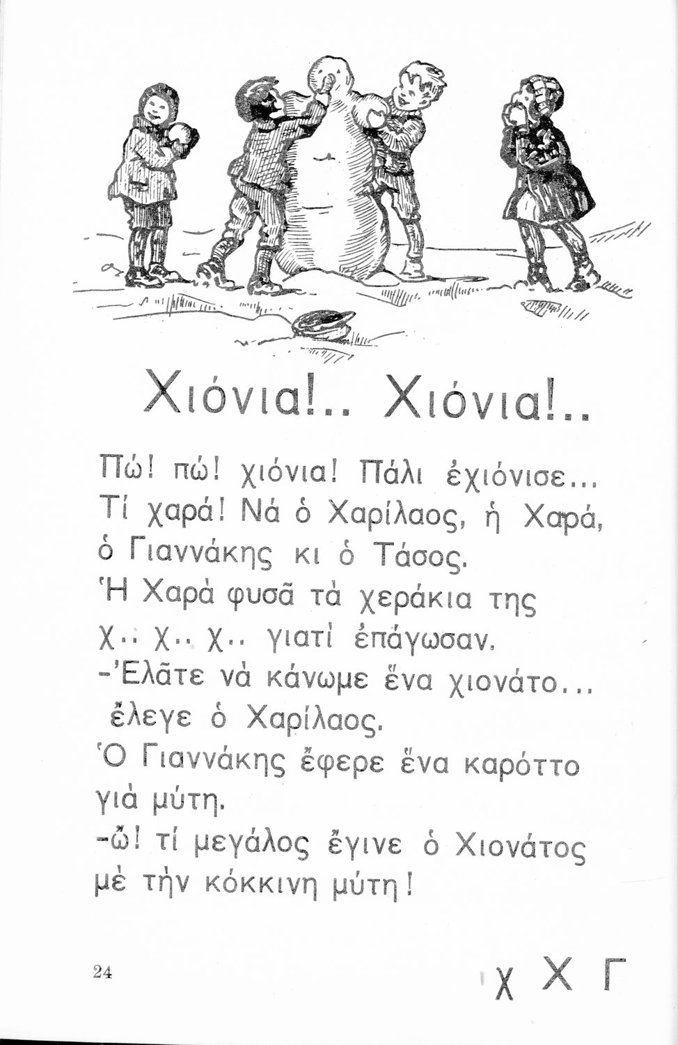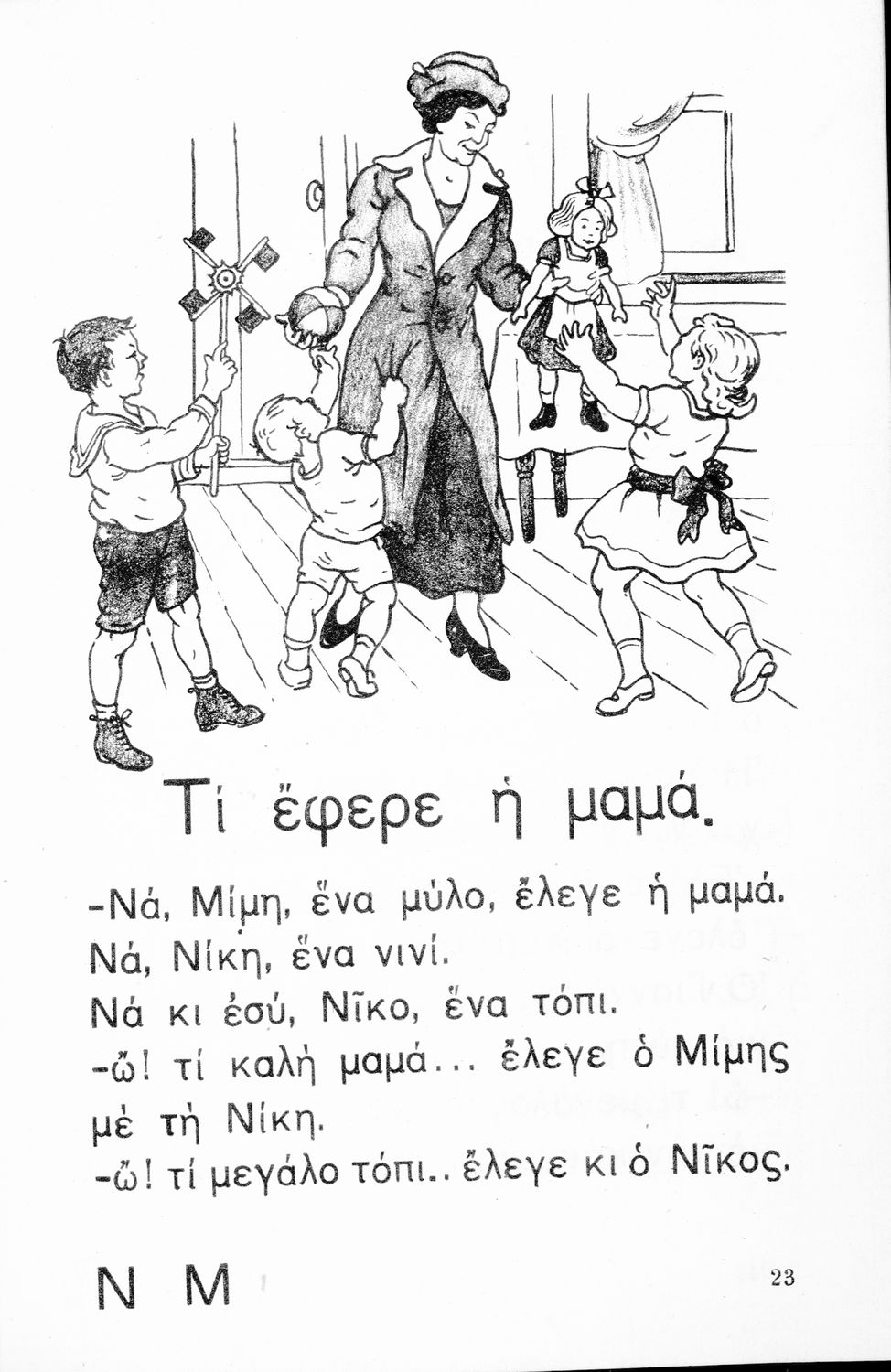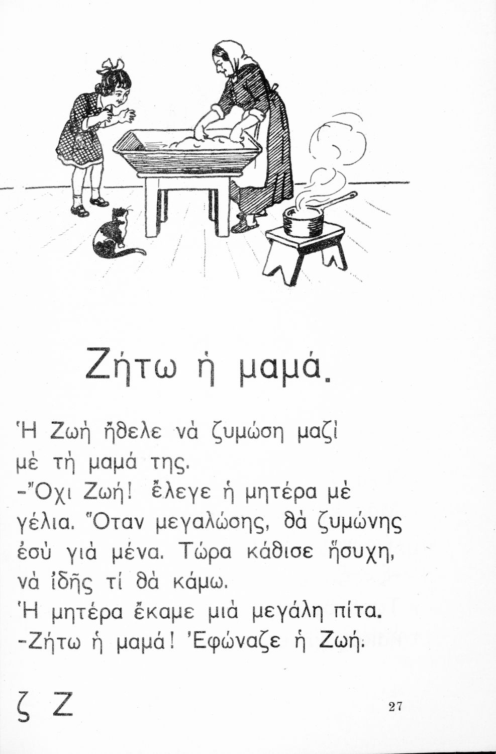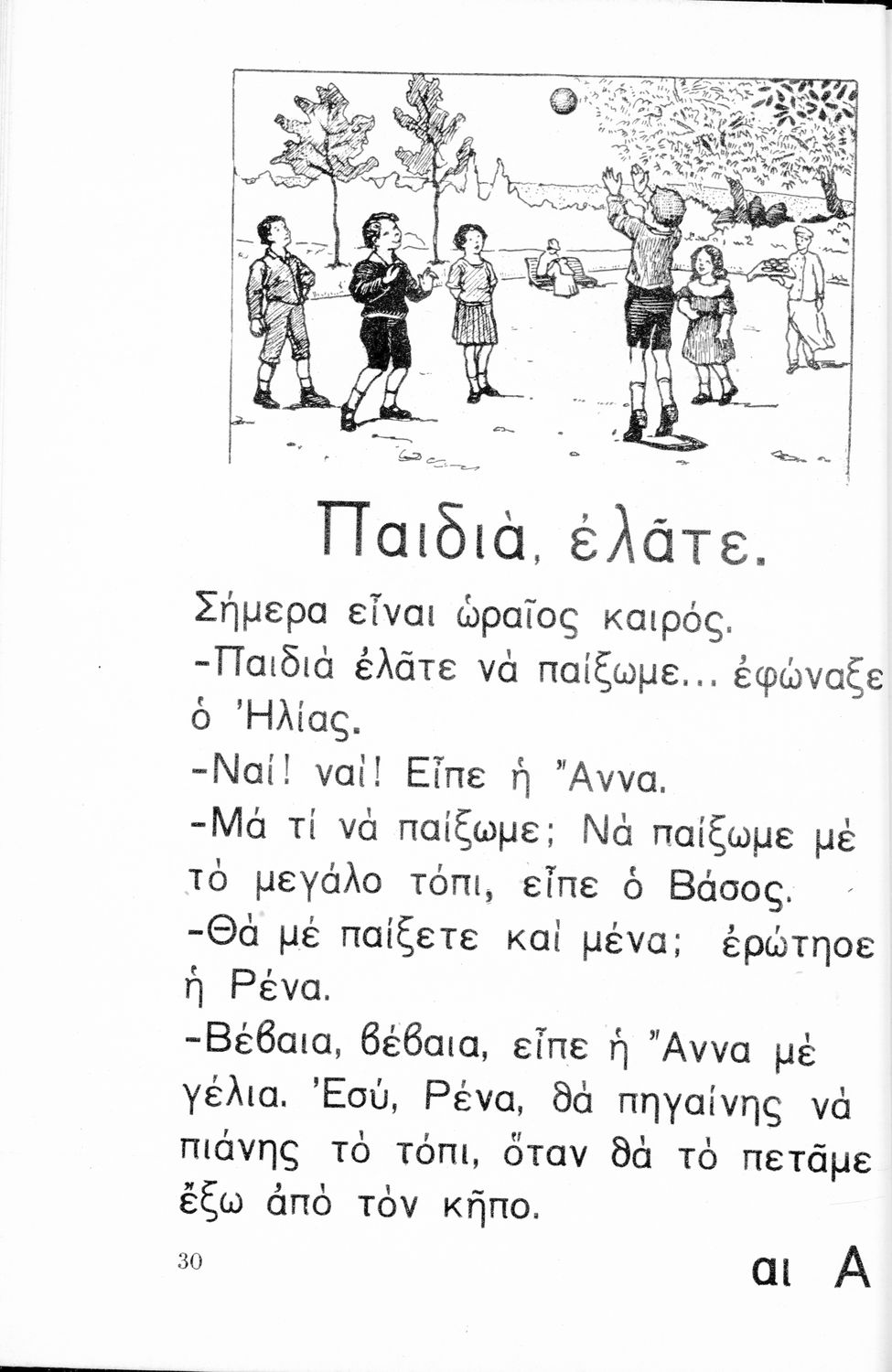 Αναγνωστικό Α΄ Δημοτικού που περιλαμβάνει μικρές συλλαβές και ιστορίες με θεματολογία από την οικογενειακή και κοινωνική ζωή μιας μικροαστικής οικογένειας κατά τη διάρκεια ενός χρόνου.