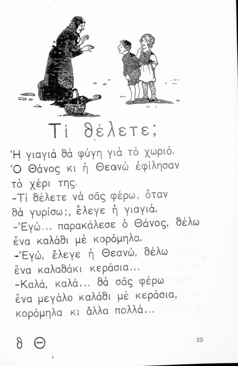 Αναγνωστικό Α΄ Δημοτικού που περιλαμβάνει τα γράμματα του ελληνικού αλφαβήτου, εικόνες, τις πρώτες συλλαβές και λέξεις και μικρά ποιήματα και διηγήματα με ιστορίες από την φύση, την οικογένεια και την ελληνική ύπαιθρο.