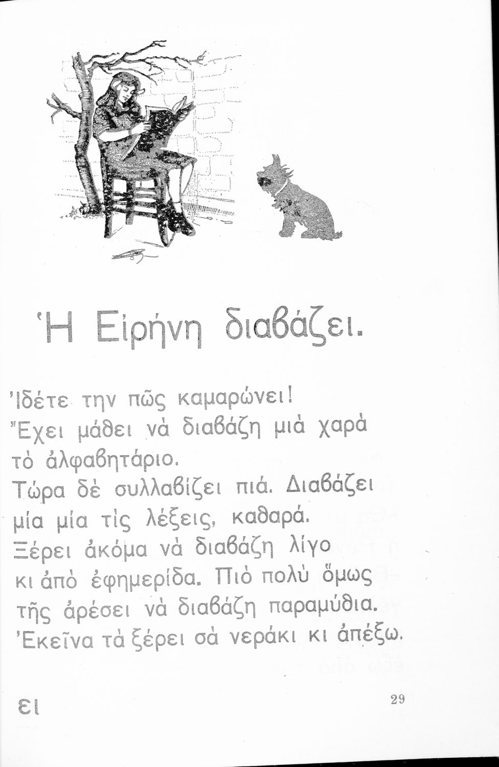 Παρουσίαση περιεχομένου: Αναγνωστικό Α΄ Δημοτικού που περιλαμβάνει τα γράμματα του ελληνικού αλφαβήτου, εικόνες, τις πρώτες συλλαβές και λέξεις και μικρά ποιήματα και διηγήματα με ιστορίες από την φύση, την οικογένεια και την ελληνική ύπαιθρο.