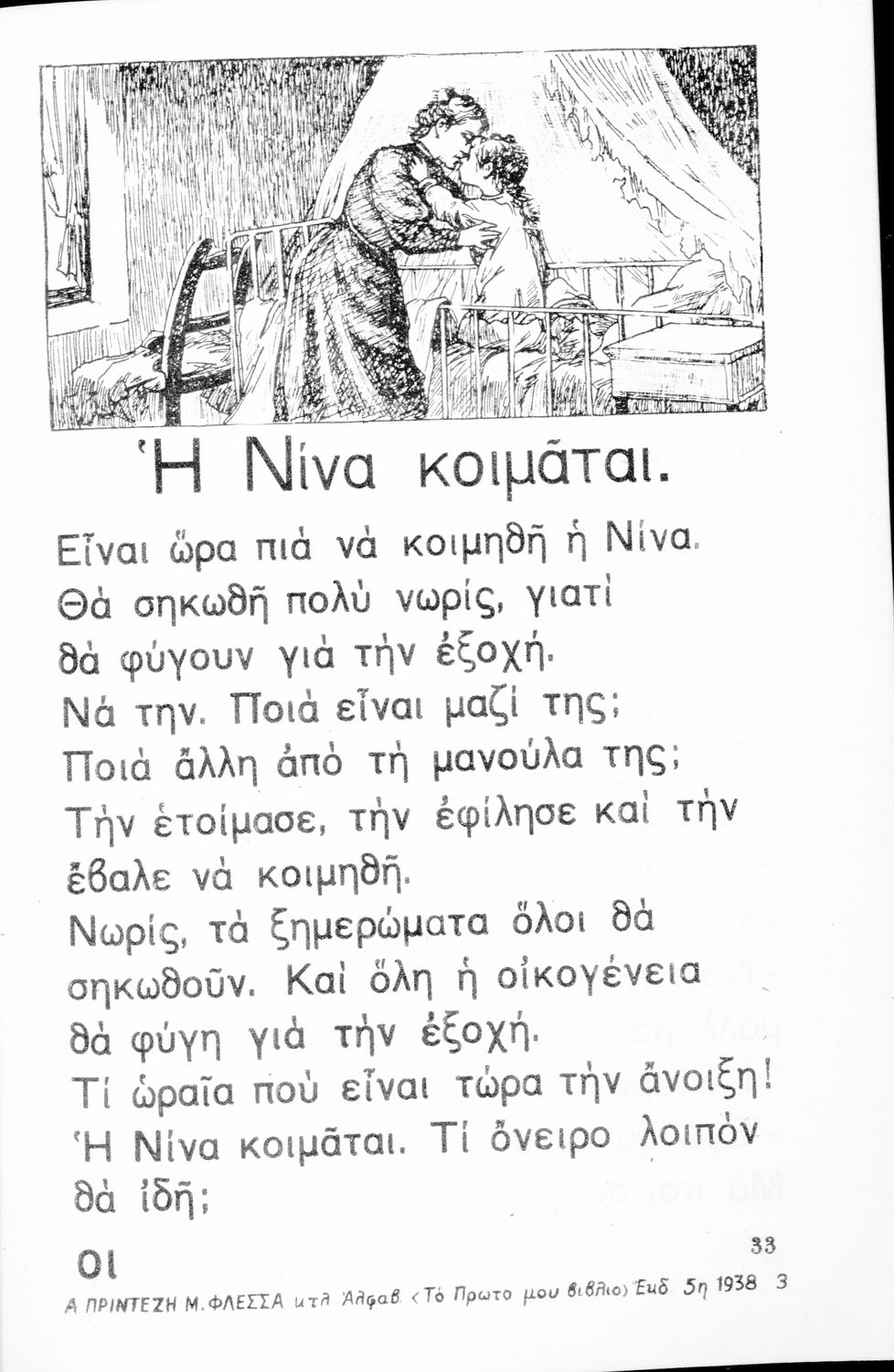 LDR 01288 2200217 4500 035 ## _a20-01650 040 ## _aΚΕΝΕΚ - Εταιρεία Σπουδών Νεοελληνικού Πολιτισμού και Παιδείας 041 ## _ael 100 ## _aΑ. Πρίντεζης _aΜ. Φλέσσας 110 ## _a1650 245 0# _aΑλφαβητάριο. Το πρώτο μου βιβλίο 250 ## _a5η Έκδοση 260 ## _aΑθήνα _bΙωάννης Ν. Σιδέρης _c1938 300 ## _a122 _bΣκίτσα (ασπρόμαυρα και έγχρωμα) Εξώφυλλο (έγχρωμο) _c23 520 ## _aΑναγνωστικό Α΄ Δημοτικού που περιλαμβάνει τα γράμματα του ελληνικού αλφαβήτου, εικόνες, τις πρώτες συλλαβές και λέξεις και μικρά ποιήματα και διηγήματα με ιστορίες από την φύση, την οικογένεια και την ελληνική ύπαιθρο. 521 ## _aΑ' Δημοτικού 522 ## _aΕλλάδα 546 ## _aΔημοτική 563 ## _aΜαλακό Εξώφυλλο 583 ## _a50163/10-7-1936 _c1936 650 #4 _aΓράμματα _aΔίφθογγοι _aΛέξεις _aΠοιήματα _aΣυλλαβές