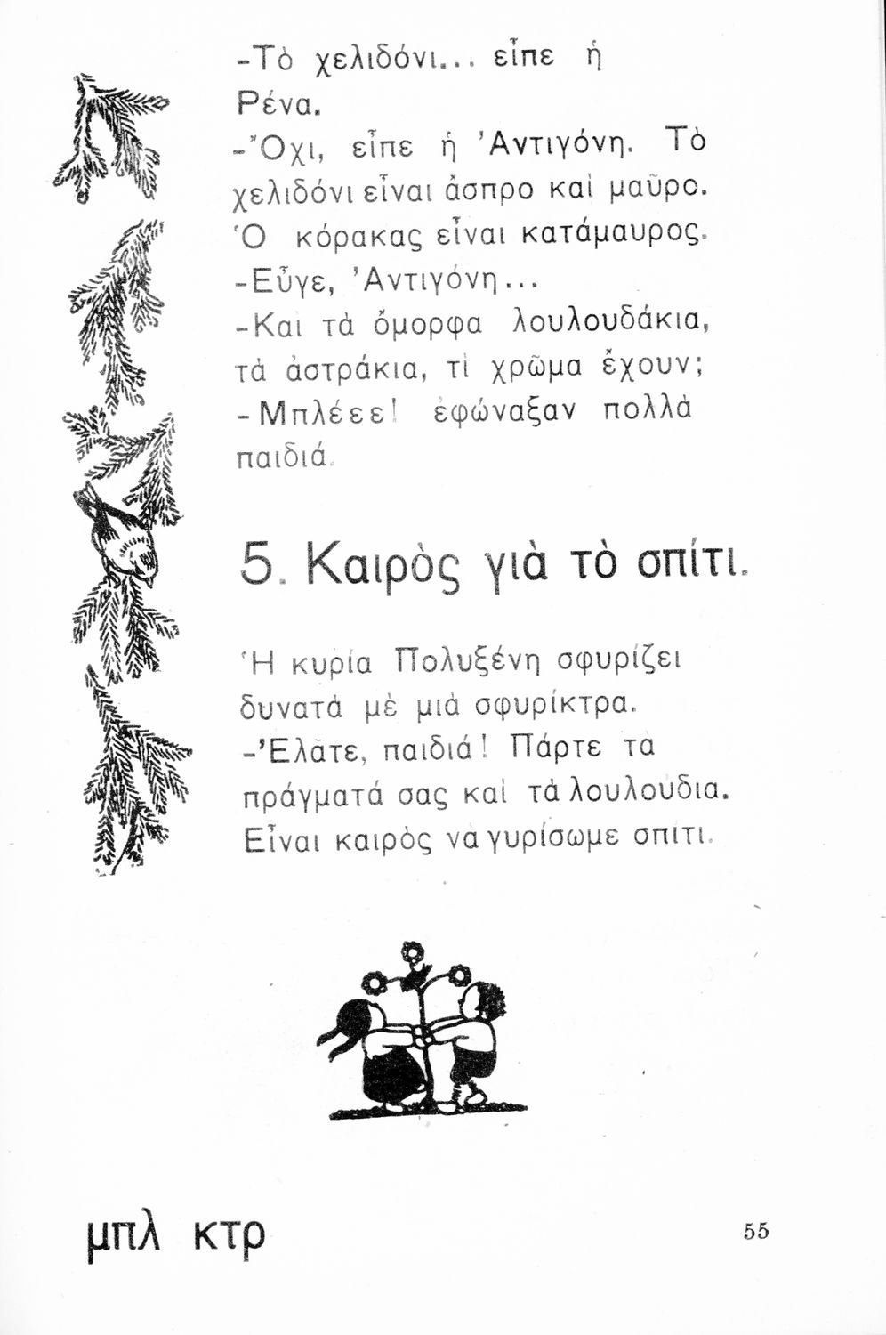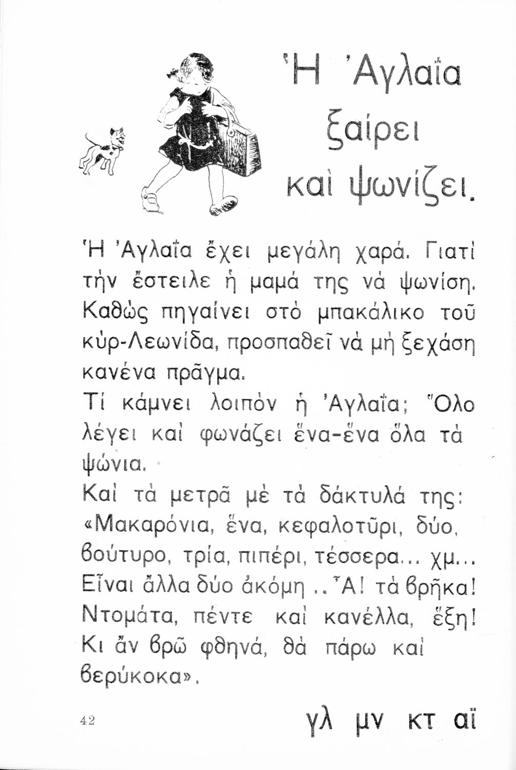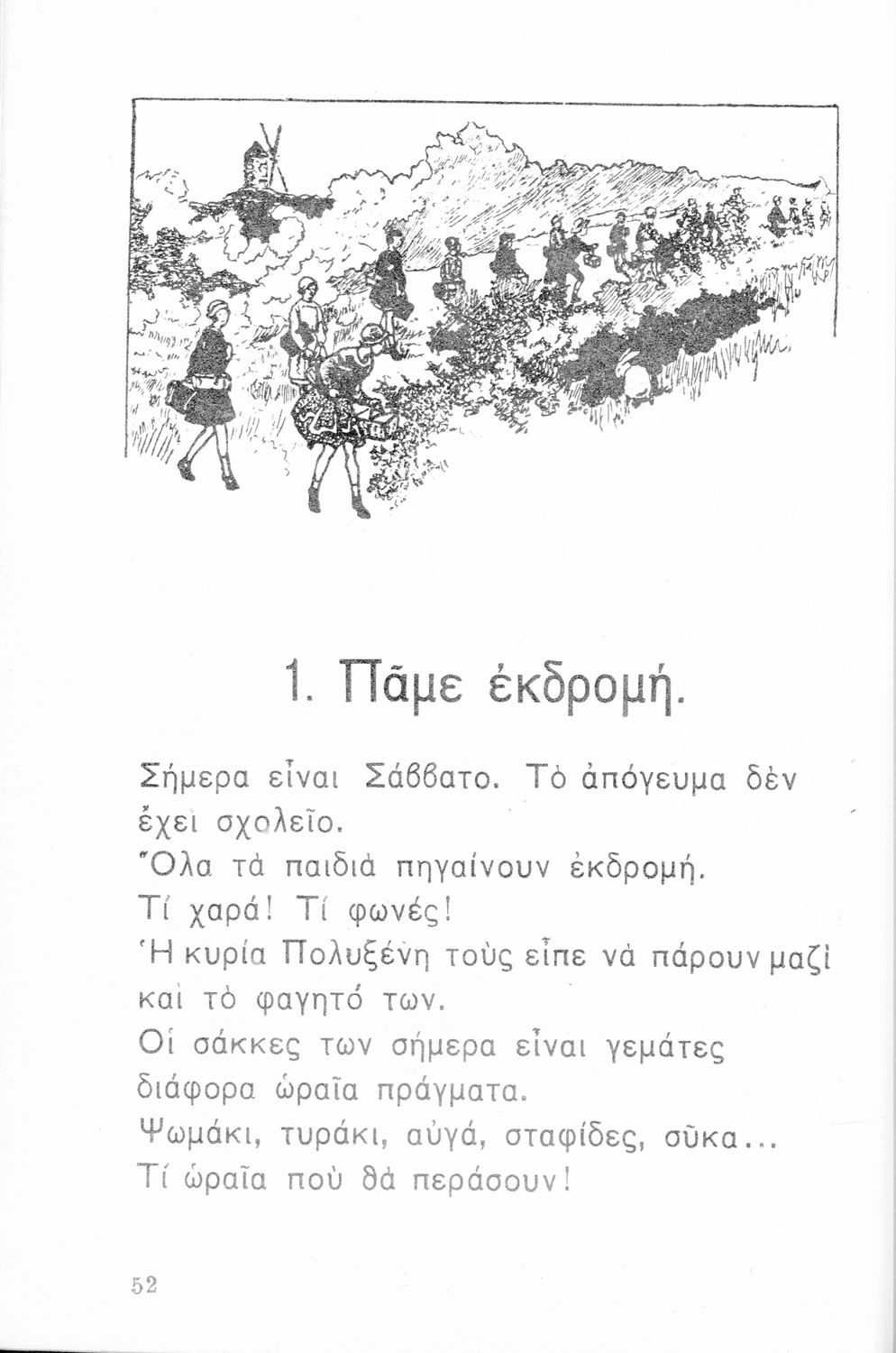 Αναγνωστικό Α΄ Δημοτικού που περιλαμβάνει τα γράμματα του ελληνικού αλφαβήτου, εικόνες, τις πρώτες συλλαβές και λέξεις και μικρά ποιήματα και διηγήματα με ιστορίες από την φύση, την οικογένεια και την ελληνική ύπαιθρο.