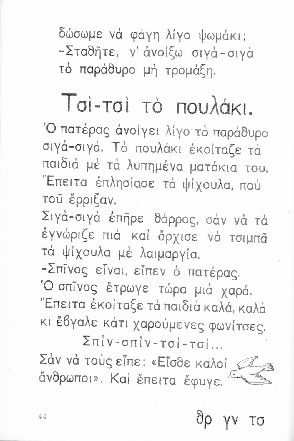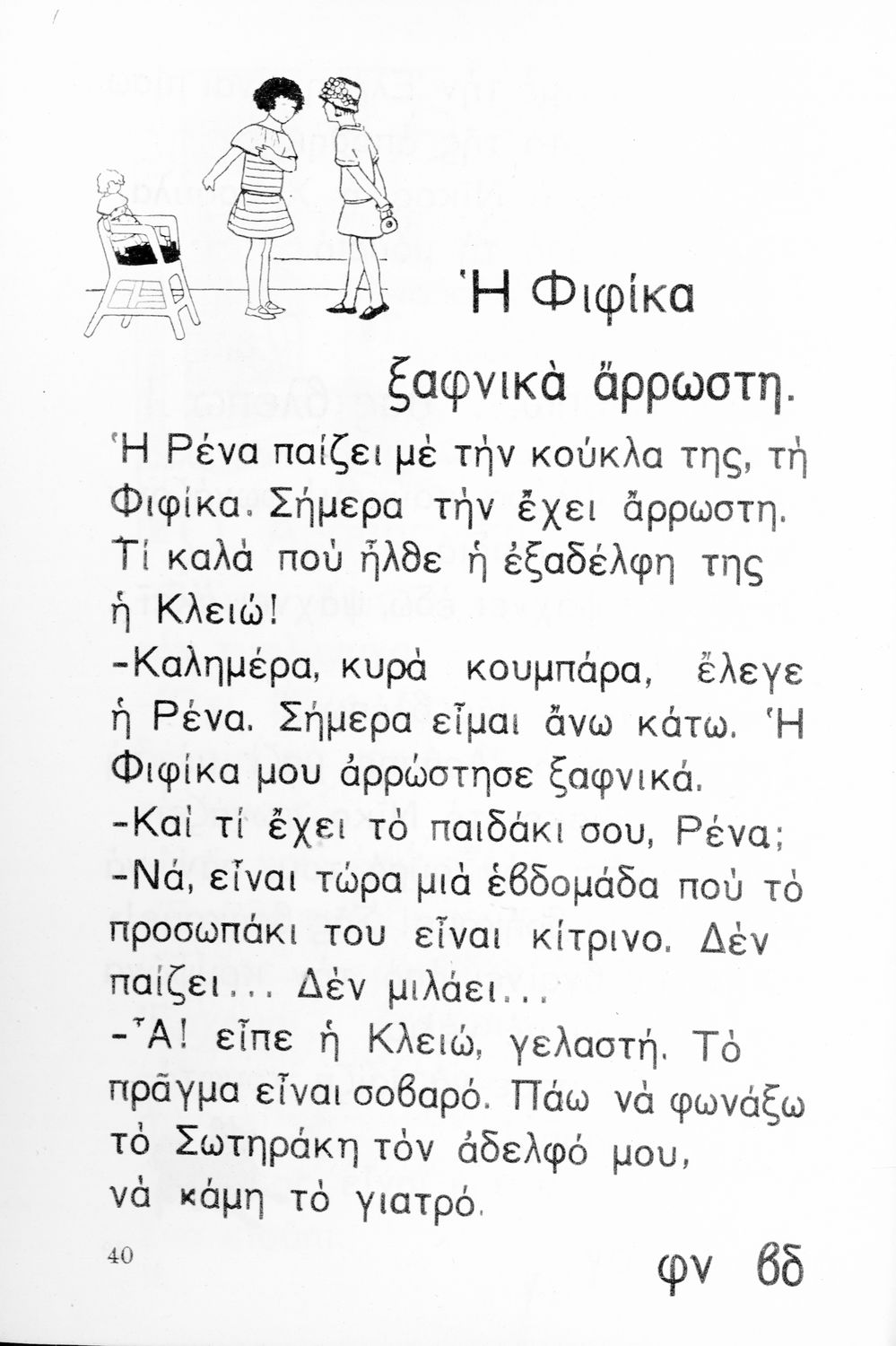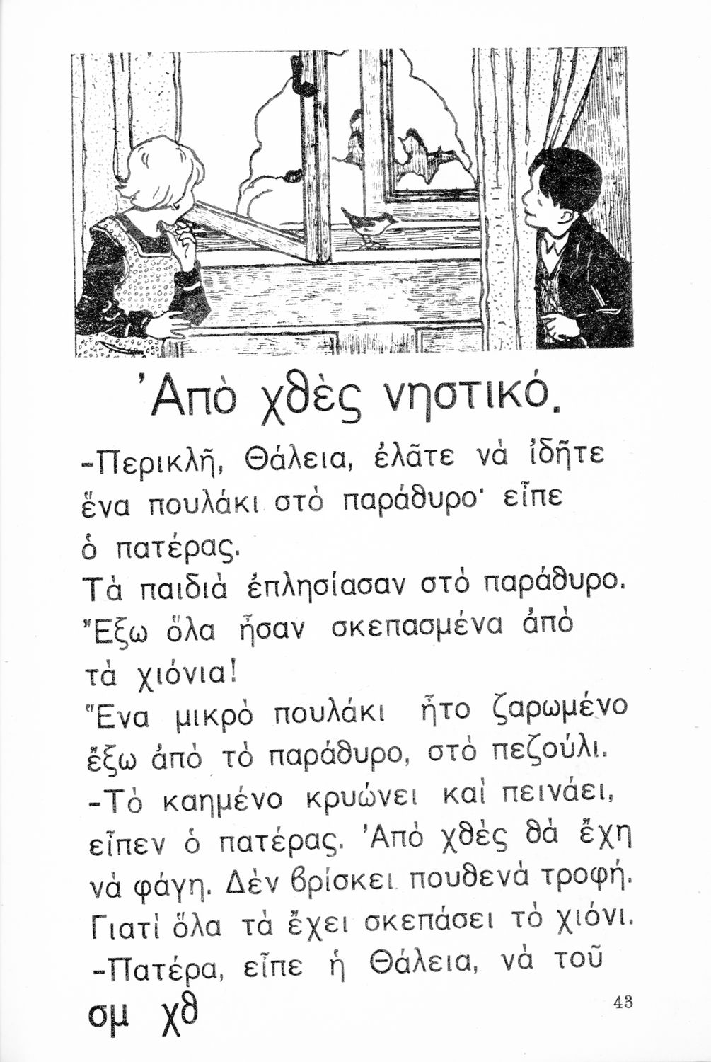 Αναγνωστικό Α΄ Δημοτικού που περιλαμβάνει τα γράμματα του ελληνικού αλφαβήτου, εικόνες, τις πρώτες συλλαβές και λέξεις και μικρά ποιήματα και διηγήματα με ιστορίες από την φύση, την οικογένεια και την ελληνική ύπαιθρο.