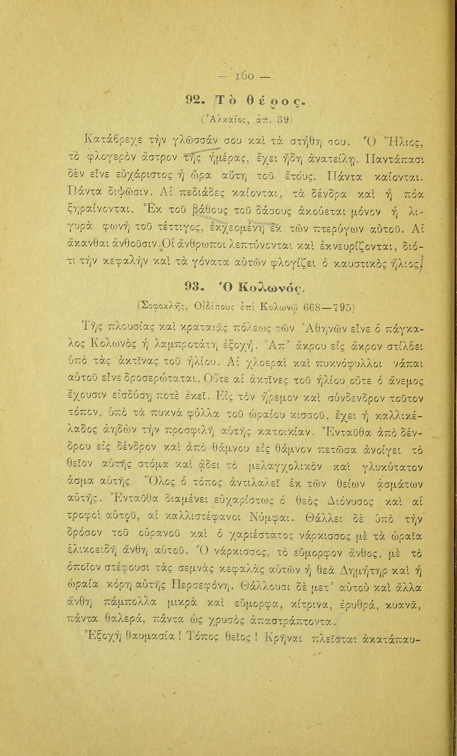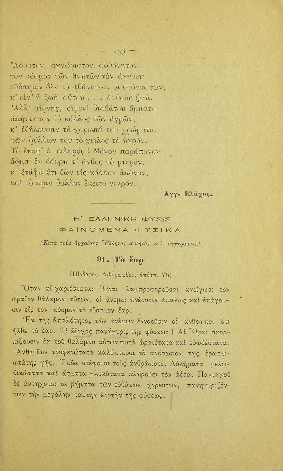 Σχολικό εγχειρίδιο Νέων Ελληνικών Γ΄ Γυμνασίου που περιλαμβάνει ποιήματα και πεζά Ελλήνων συγγραφέων και δημοτικά τραγούδια εμπνευσμένα από την ελληνική φύση και τη ζωή στην ύπαιθρο, την οικογενειακή και ...