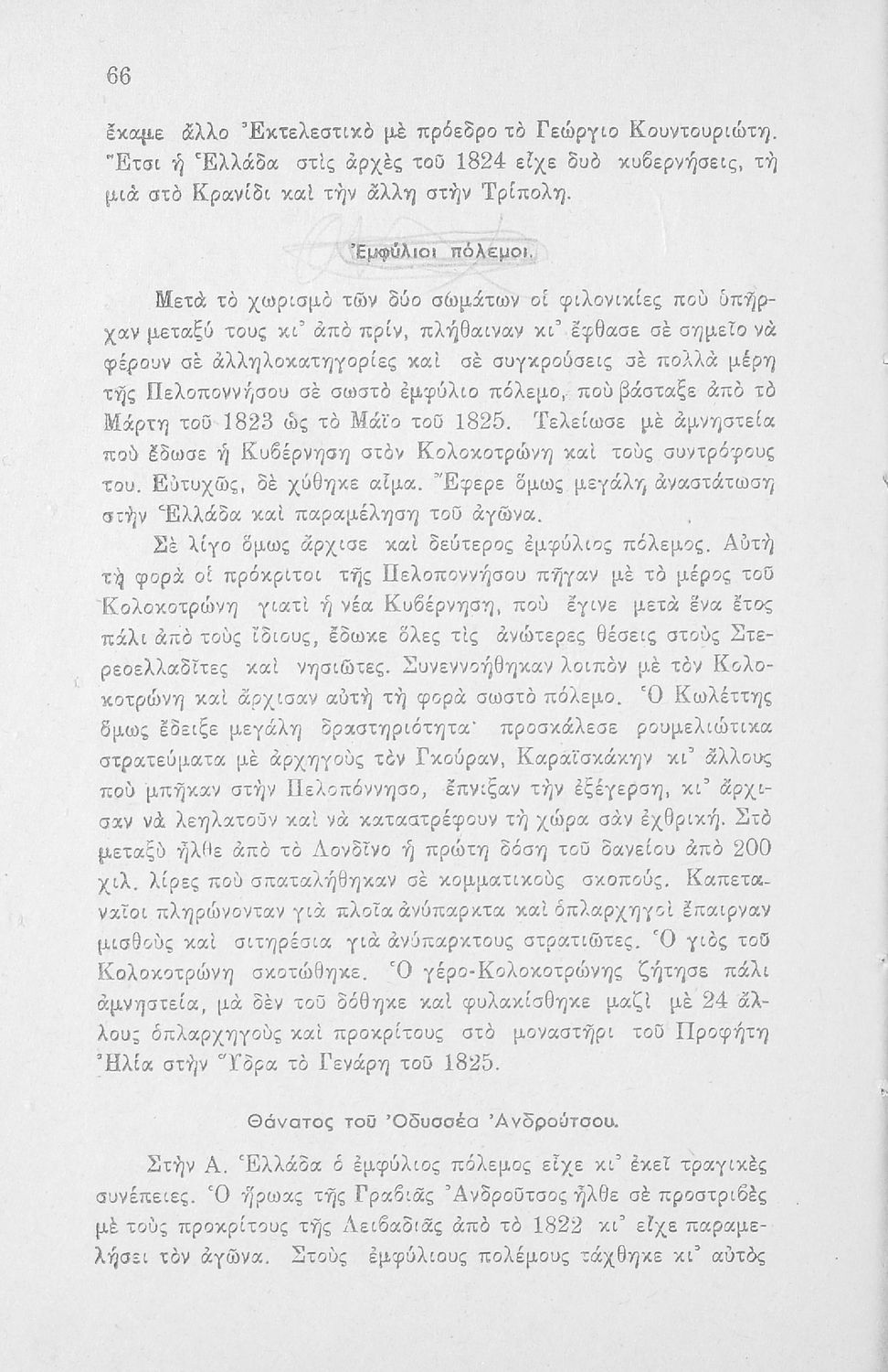 Σχολικό εγχειρίδιο της ΣΤ΄ Δημοτικού για το μάθημα της Ιστορίας. Αναφέρεται διεξοδικά στην Ελληνική Επανάσταση και συνοπτικά καλύπτονται τα άλλα ιστορικά γεγονότα μέχρι των Β΄ Παγκόσμιο.