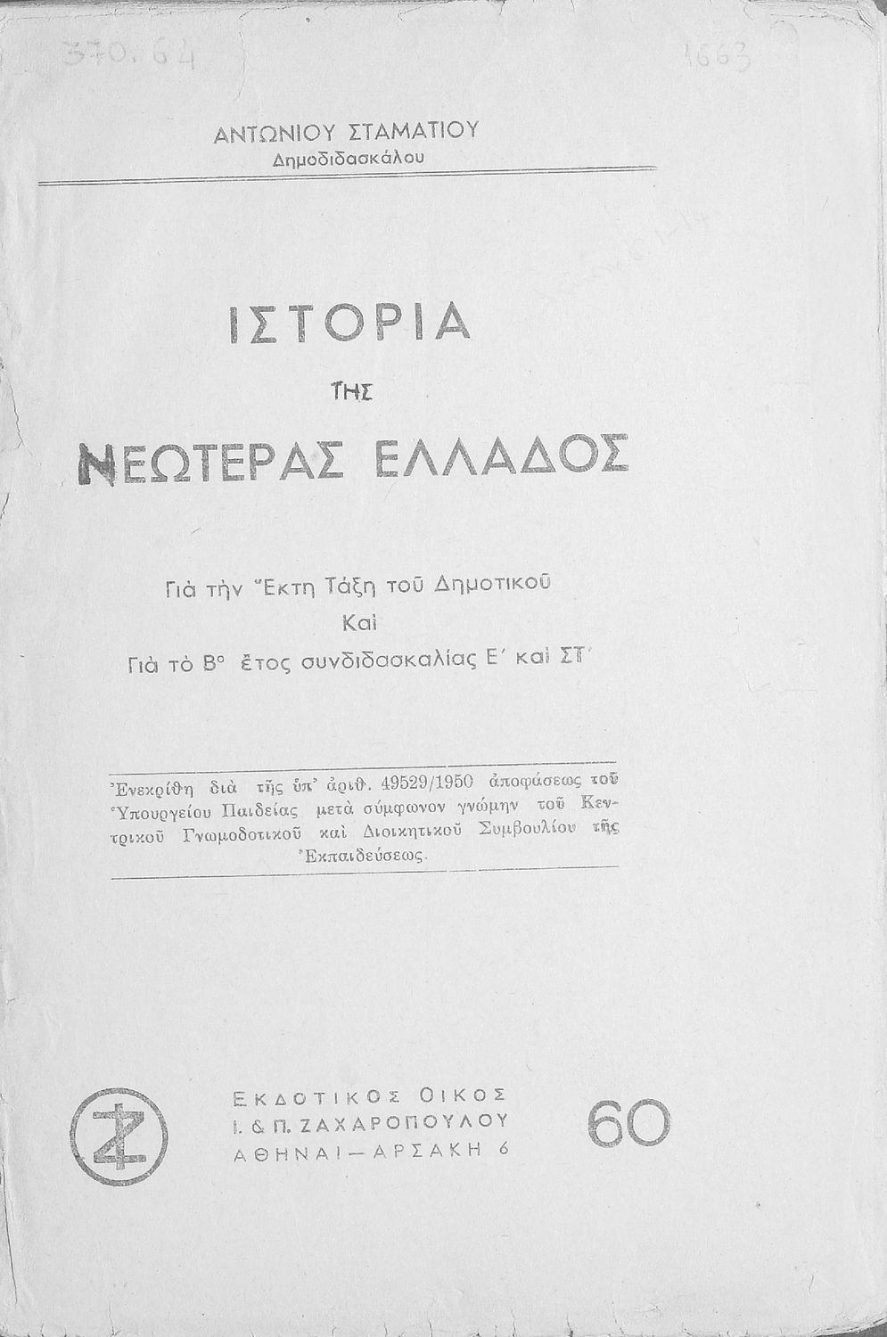 Σχολικό εγχειρίδιο της ΣΤ΄ Δημοτικού για το μάθημα της Ιστορίας. Αναφέρεται διεξοδικά στην Ελληνική Επανάσταση και συνοπτικά καλύπτονται τα άλλα ιστορικά γεγονότα μέχρι των Β΄ Παγκόσμιο.