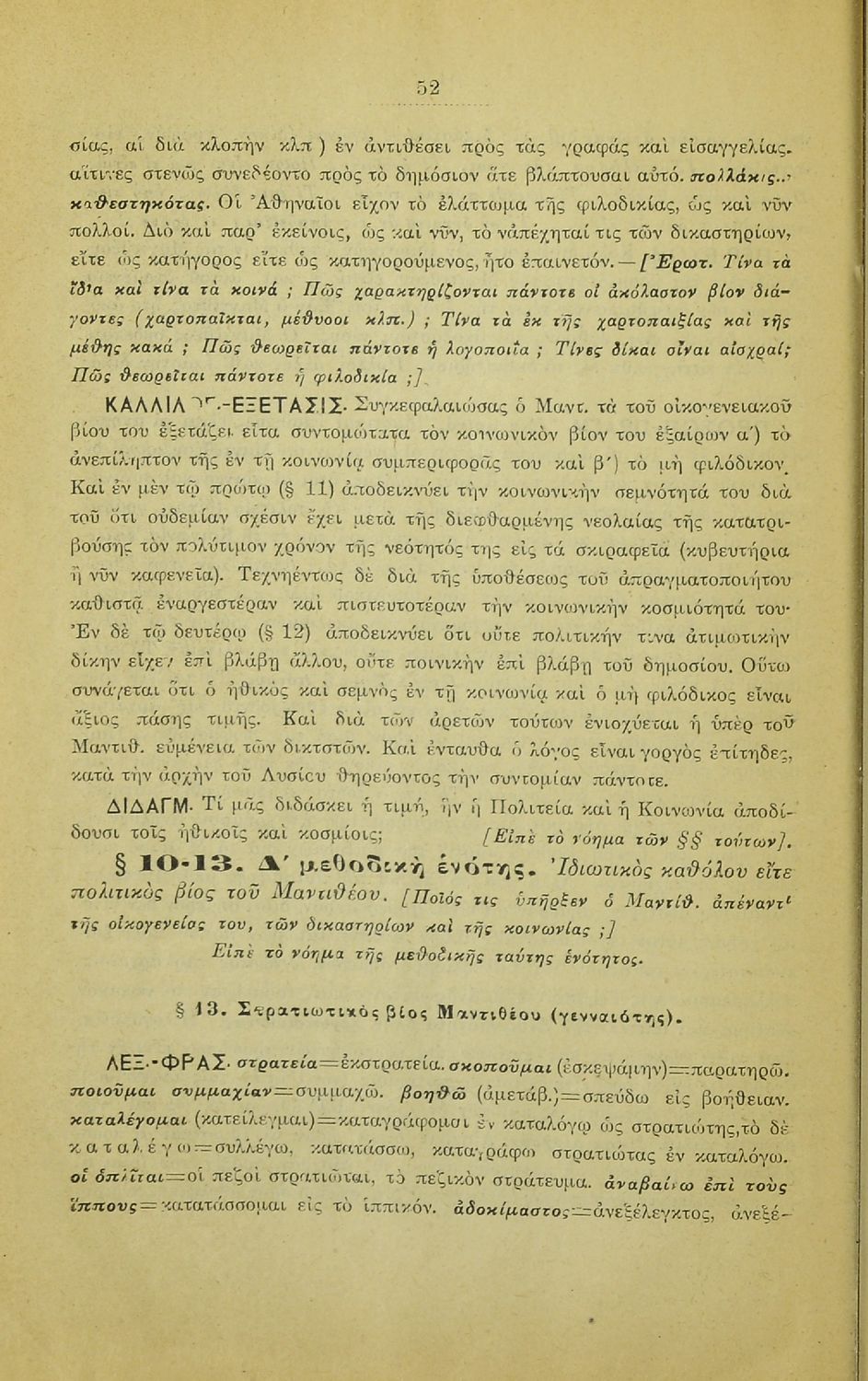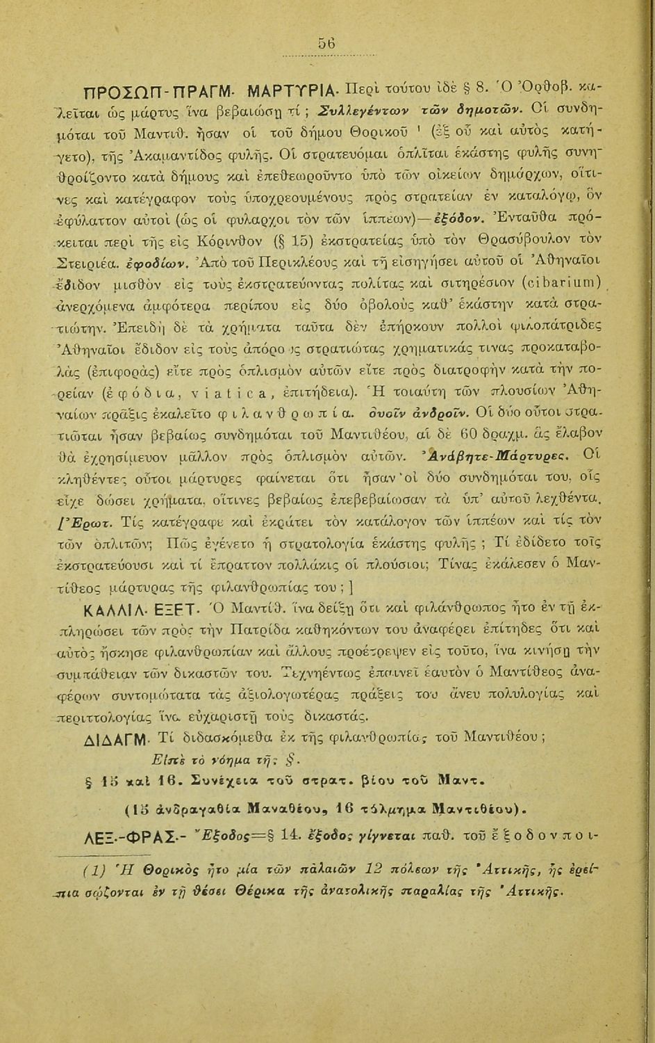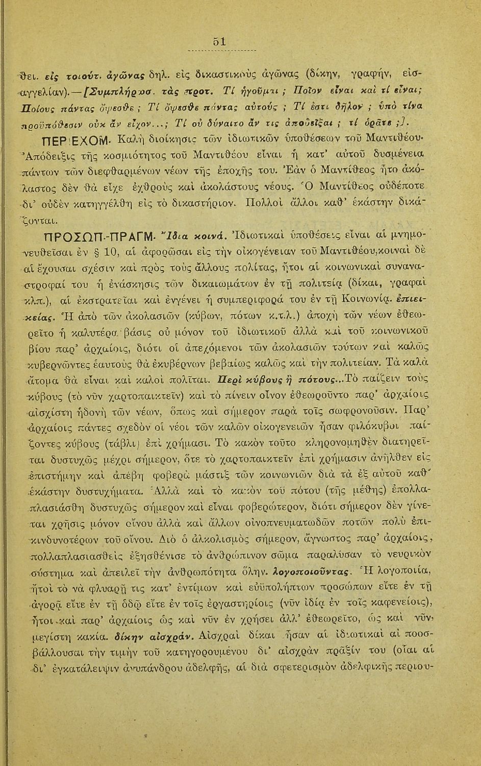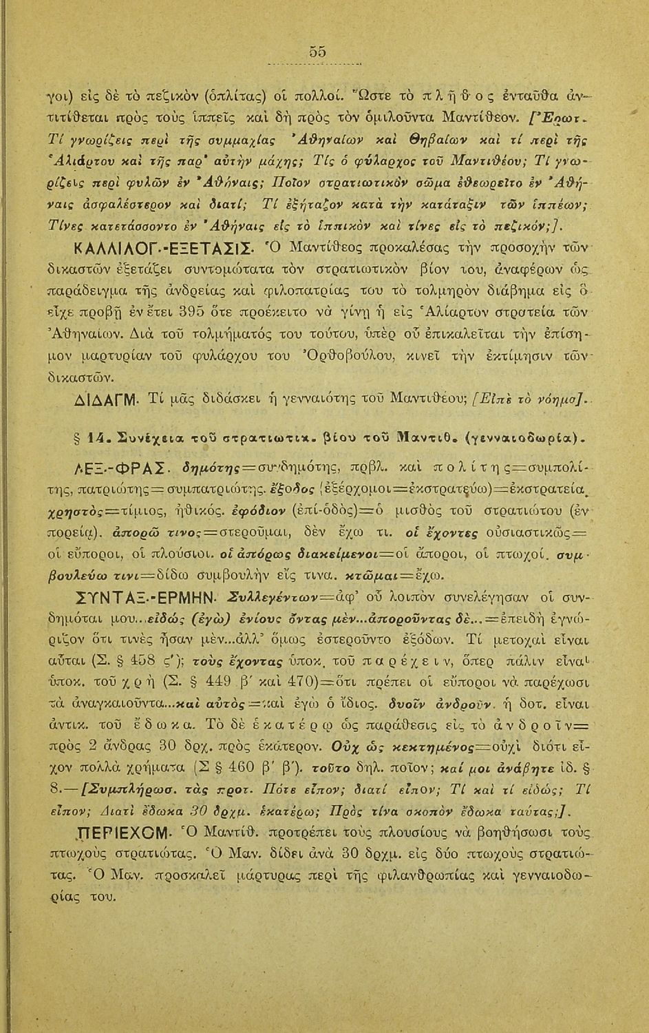 Σχολικό εγχειρίδιο Αρχαίων Ελληνικών που περιλαμβάνει τους λόγους του Λυσία Υπέρ Μαντιθέου και Περί δημοσίων αδικημάτων, εισαγωγή στη ζωή και το συγγραφικό έργο του, τα είδη ρητορικών λόγων, και γραμματικά, ερμηνευτικά και συντακτικά σχόλια.