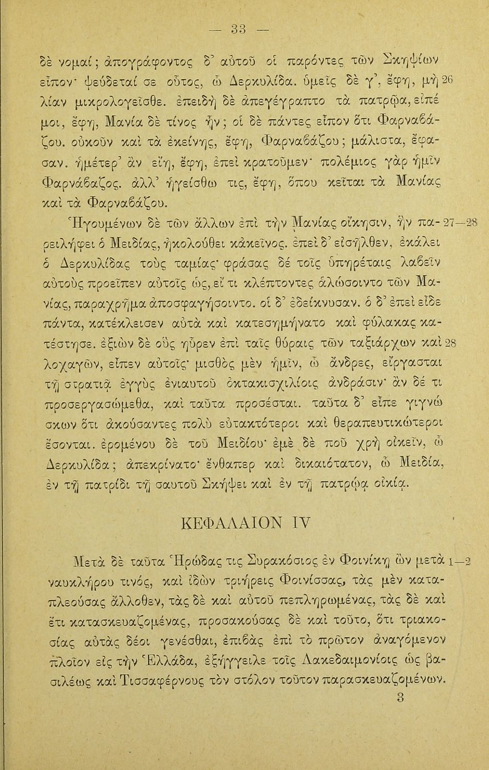 Μαθητικό βοήθημα Αρχαίων Ελληνικών για την Δ' Γυμνασίου. Περιλαμβάνει μετάφραση, ερμηνευτικά, γραμματικά και συντακτικά σχόλια.