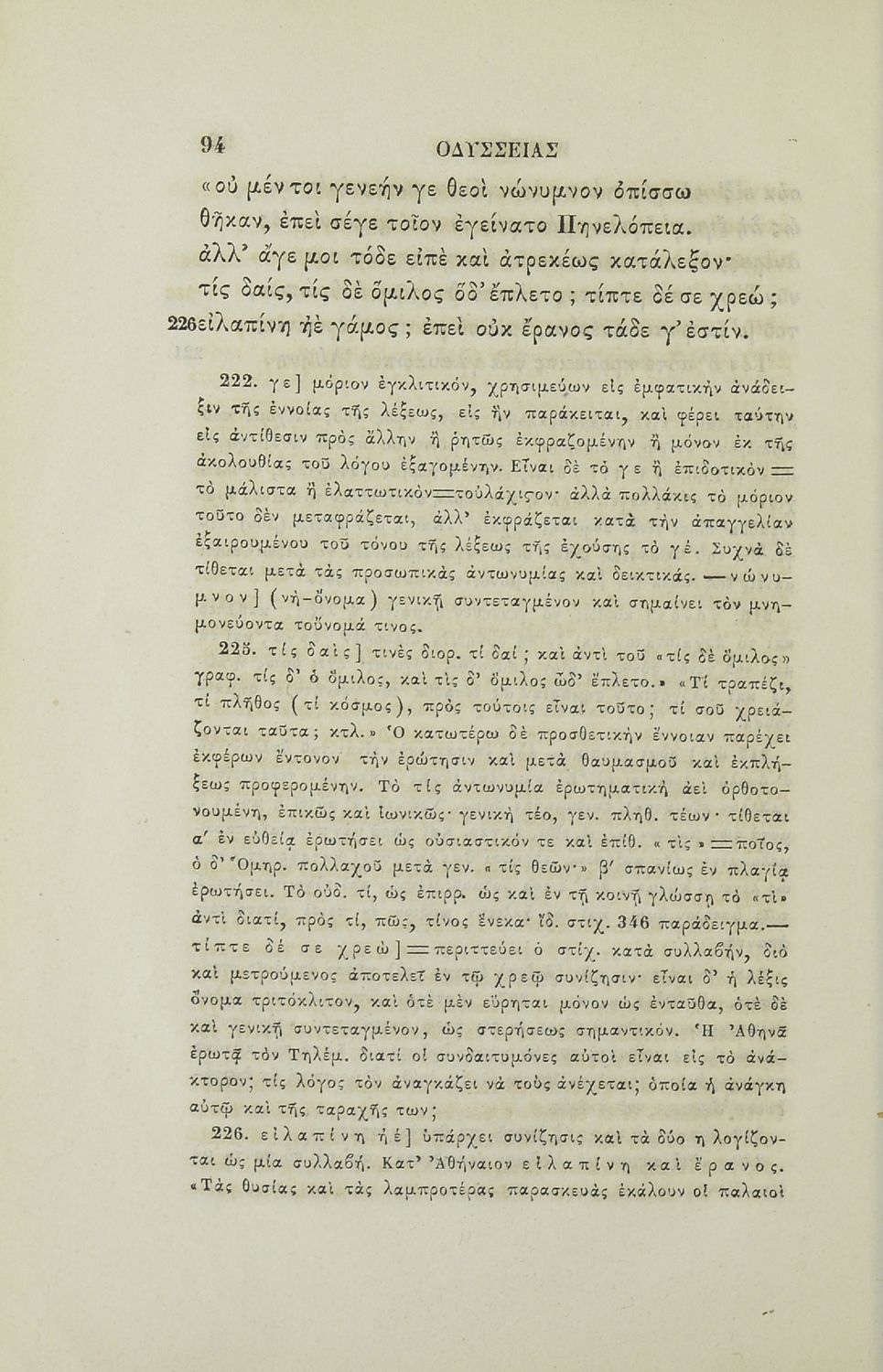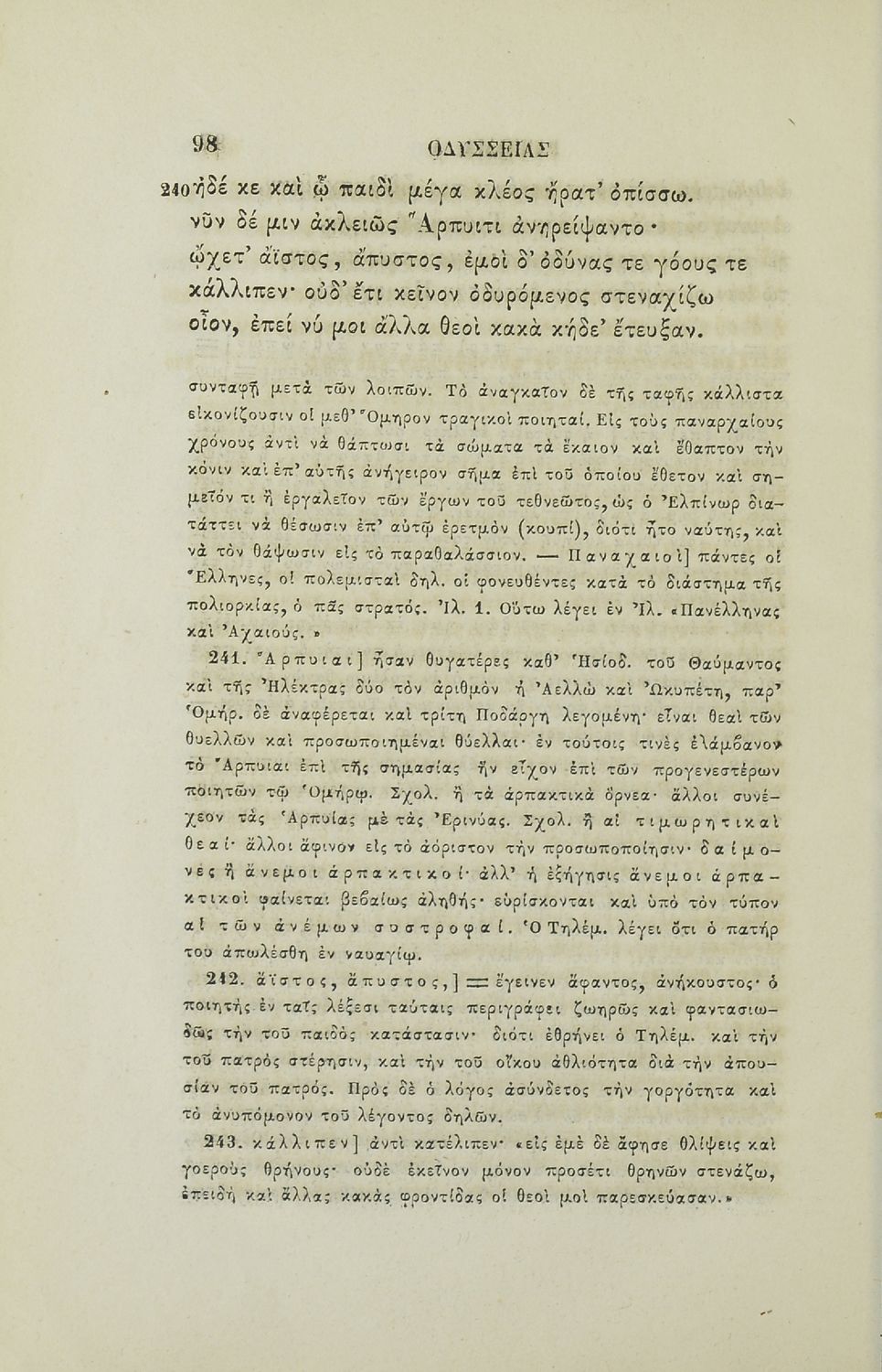 Ομήρου Οδύσσεια τεύχος πρώτον, περιέχον Α΄ και Β΄ ραψωδίαν μετά σημειώσεων ερμηνευτικών