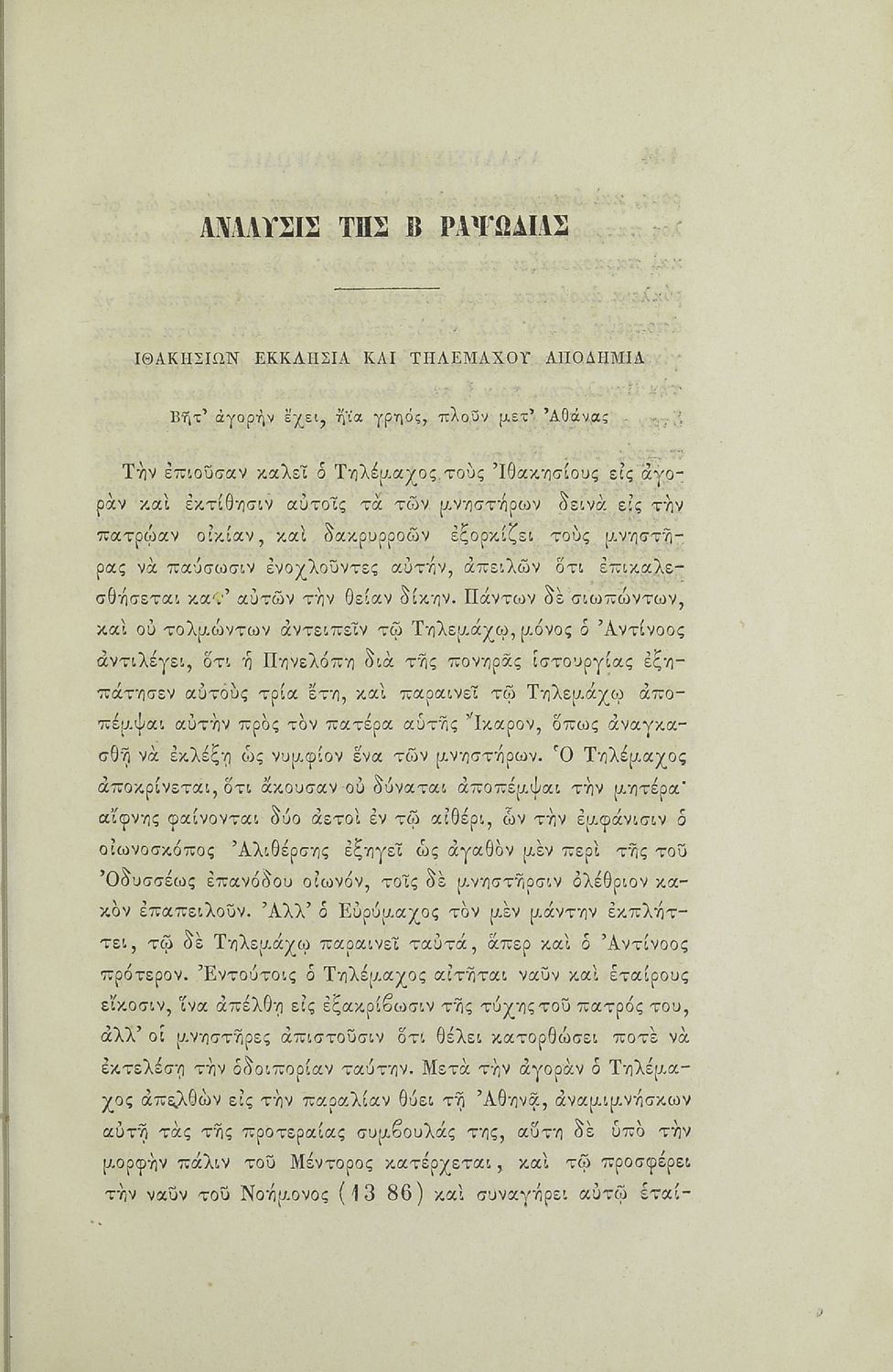 LDR 01261 2200181 4500 035 ## _a20-01670 040 ## _aΚΕΝΕΚ - Εταιρεία Σπουδών Νεοελληνικού Πολιτισμού και Παιδείας 041 ## _ael 100 ## _aΌμηρος _aΒ. Γ. Βυθούλκας (επιμ.) 110 ## _a1670 245 0# _aΟμήρου Οδύσσεια τεύχος πρώτον, περιέχον Α΄ και Β΄ ραψωδίαν μετά σημειώσεων ερμηνευτικών 260 ## _aΑθήνα _bΤυπογραφείο Φιλόκα _c1877 300 ## _a206 _c21 520 ## _aΣχολικό εγχειρίδιο Αρχαίων Ελληνικών περιλαμβάνει τις ραψωδίες Α΄ και Β΄ της Οδύσσειας, εισαγωγή στον Όμηρο, στα προομηρικά χρόνια, στην επική ποίηση και στο ιστορικό πλαίσιο της εποχής και ερμηνευτικά, γραμματικά, λεξιλογικά και πραγματολογικά σχόλια. 522 ## _aΕλλάδα 546 ## _aΚαθαρεύουσα 563 ## _aΣκληρό Εξώφυλλο 650 #4 _aΑθήνα _aΑντίνοος _aΟδυσσέας _aΠηνελόπη _aΤηλέμαχος