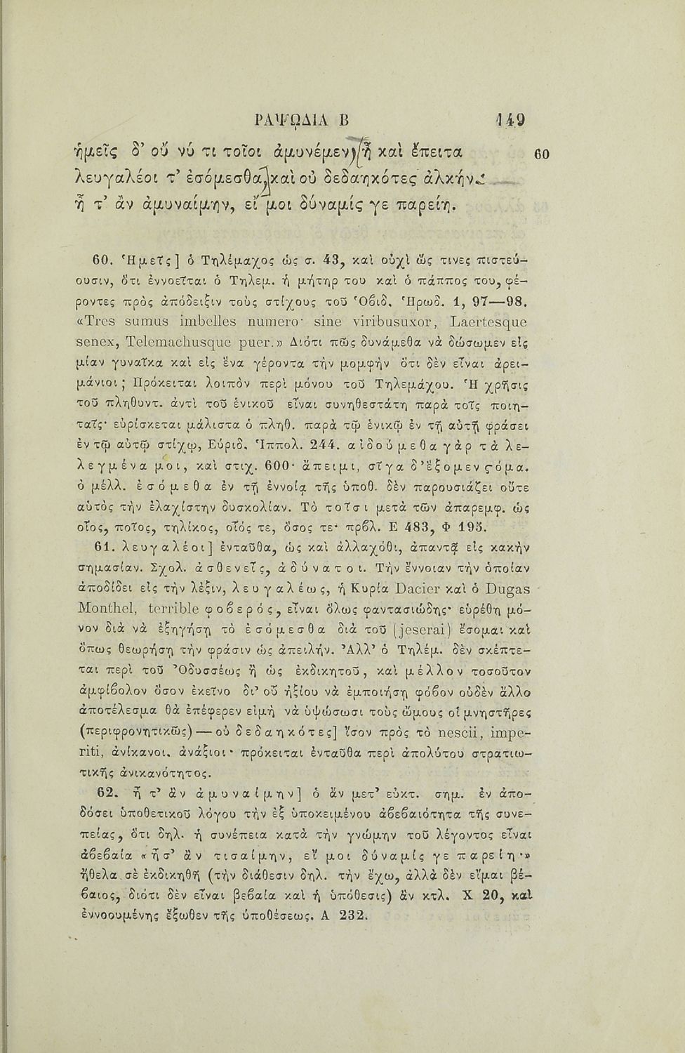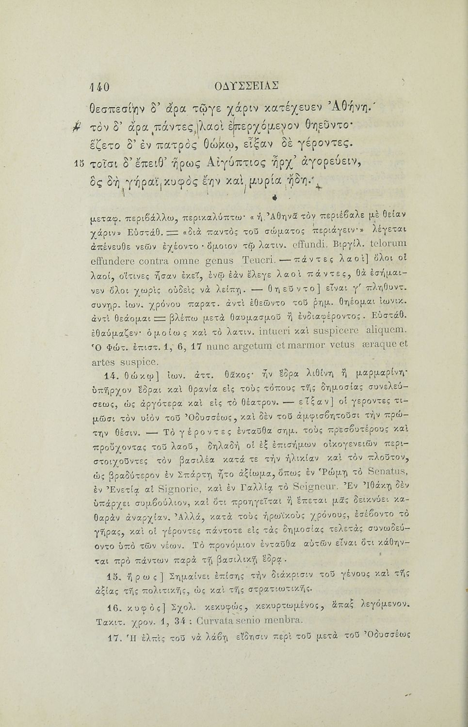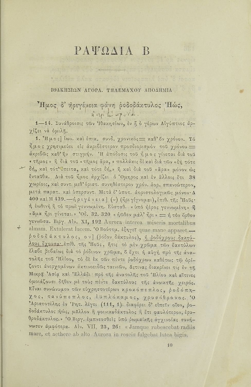 Βαθμίδα εκπαίδευσης: Δευτεροβάθμια Μάθημα: Αρχαία Ελληνικά Γλώσσα: Καθαρεύουσα Παρουσίαση περιεχομένου: Σχολικό εγχειρίδιο Αρχαίων Ελληνικών περιλαμβάνει τις ραψωδίες Α΄ και Β΄ της Οδύσσειας, εισαγωγή στον Όμηρο, στα προομηρικά χρόνια, στην επική ποίηση και στο ιστορικό πλαίσιο της εποχής και ερμηνευτικά, γραμματικά, λεξιλογικά και πραγματολογικά σχόλια. |