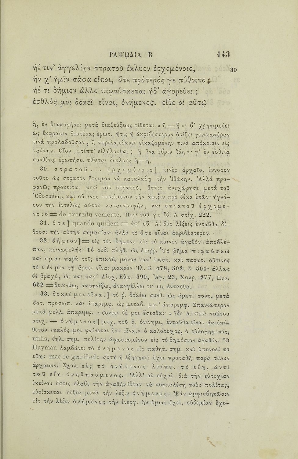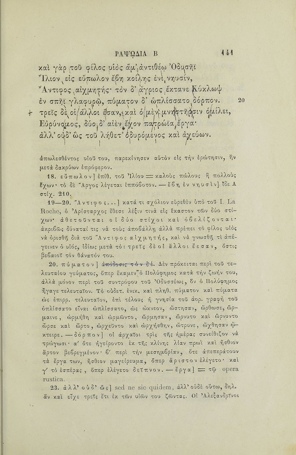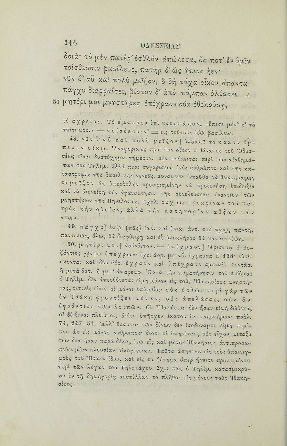 Βαθμίδα εκπαίδευσης: Δευτεροβάθμια Μάθημα: Αρχαία Ελληνικά Γλώσσα: Καθαρεύουσα Παρουσίαση περιεχομένου: Σχολικό εγχειρίδιο Αρχαίων Ελληνικών περιλαμβάνει τις ραψωδίες Α΄ και Β΄ της Οδύσσειας, εισαγωγή στον Όμηρο, στα προομηρικά χρόνια, στην επική ποίηση και στο ιστορικό πλαίσιο της εποχής και ερμηνευτικά, γραμματικά, λεξιλογικά και πραγματολογικά σχόλια. |