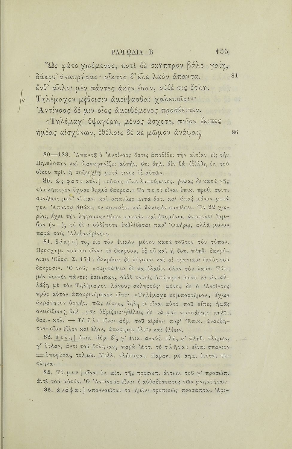 Ομήρου Οδύσσεια τεύχος πρώτον, περιέχον Α΄ και Β΄ ραψωδίαν μετά σημειώσεων ερμηνευτικών