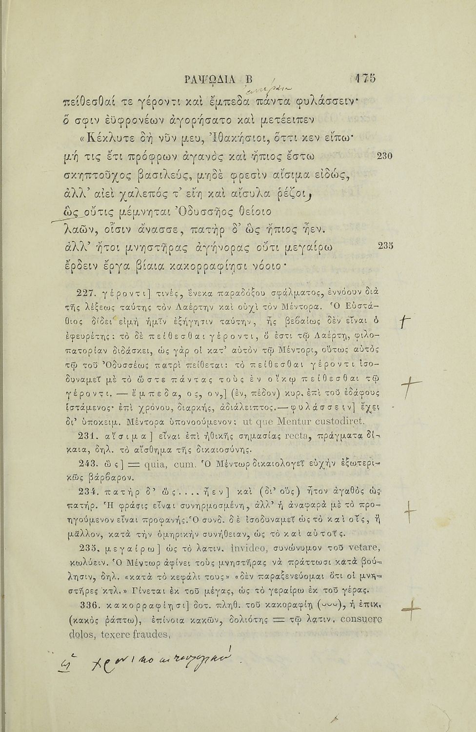Ομήρου Οδύσσεια τεύχος πρώτον, περιέχον Α΄ και Β΄ ραψωδίαν μετά σημειώσεων ερμηνευτικών