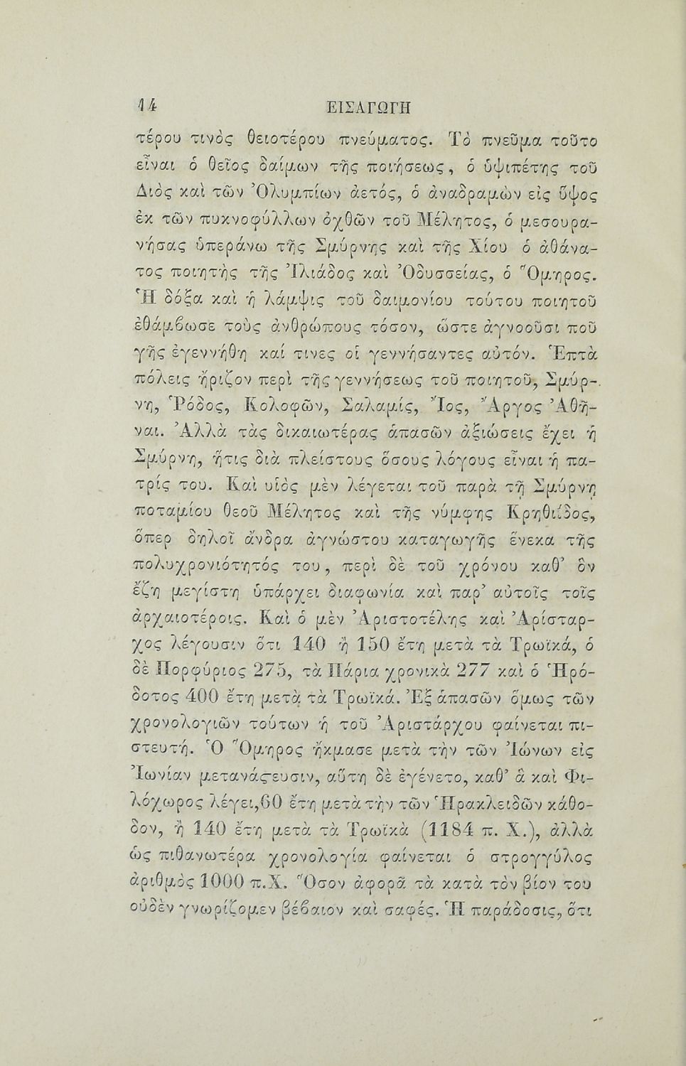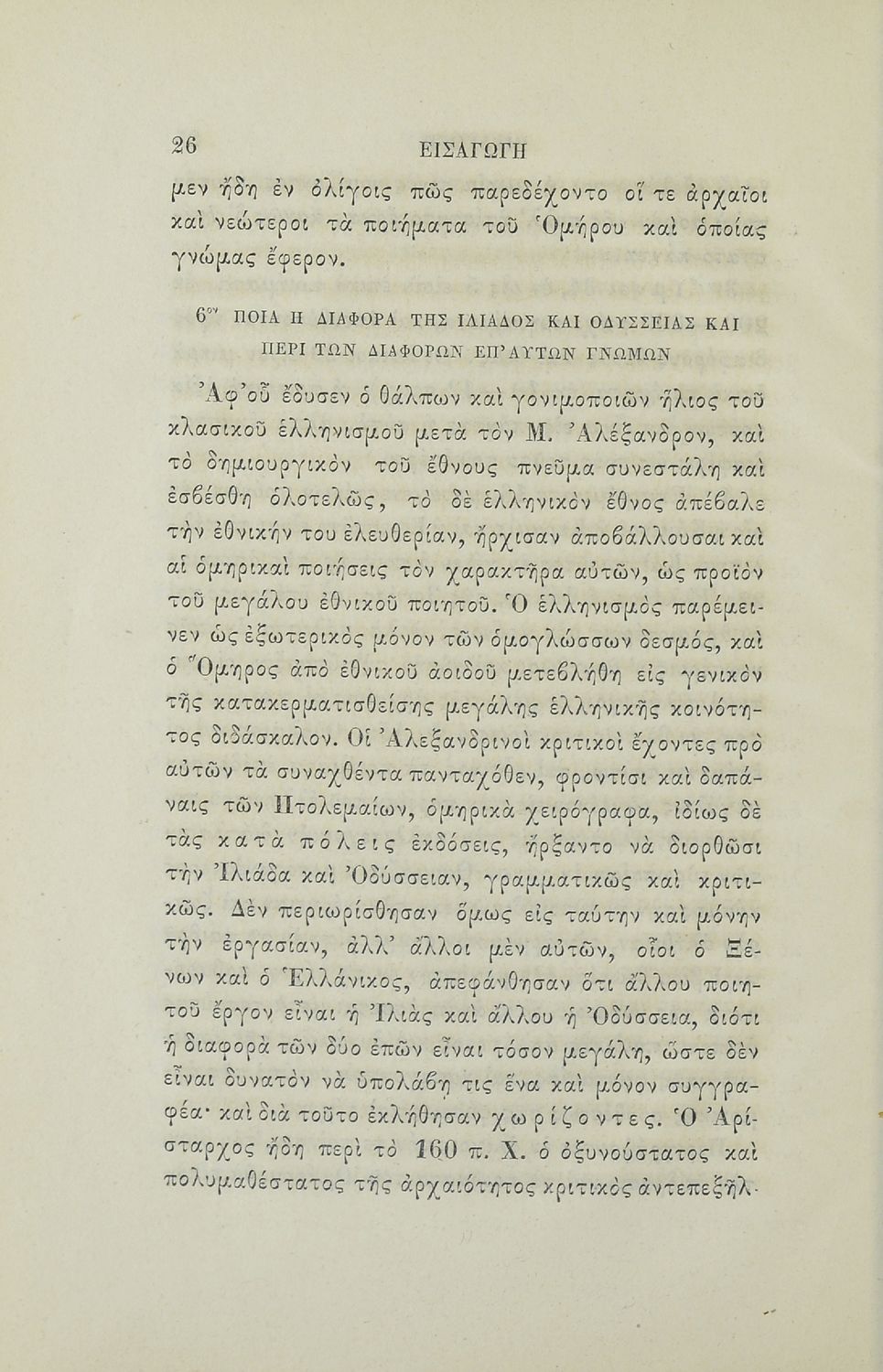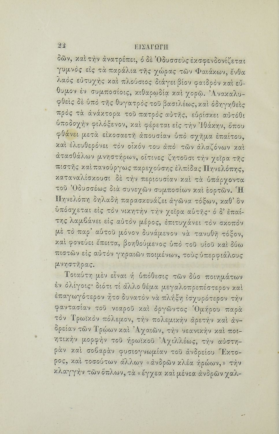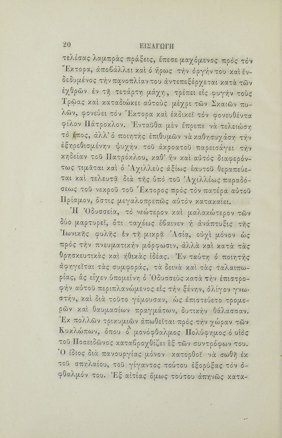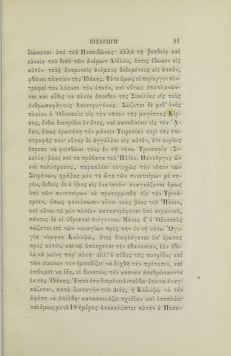 Βαθμίδα εκπαίδευσης: Δευτεροβάθμια Μάθημα: Αρχαία Ελληνικά Γλώσσα: Καθαρεύουσα Παρουσίαση περιεχομένου: Σχολικό εγχειρίδιο Αρχαίων Ελληνικών περιλαμβάνει τις ραψωδίες Α΄ και Β΄ της Οδύσσειας, εισαγωγή στον Όμηρο, στα προομηρικά χρόνια, στην επική ποίηση και στο ιστορικό πλαίσιο της εποχής και ερμηνευτικά, γραμματικά, λεξιλογικά και πραγματολογικά σχόλια. |