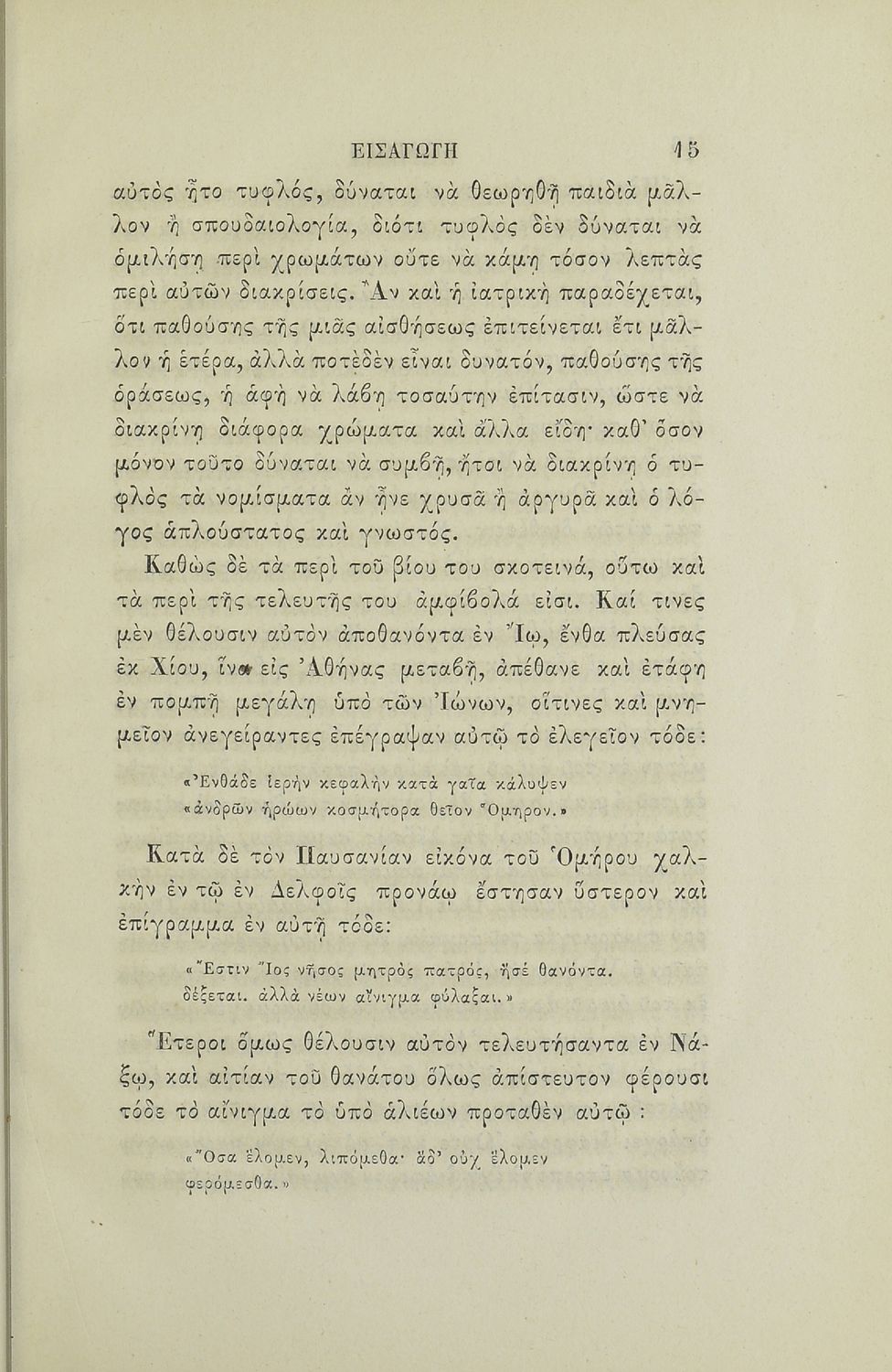 LDR 01261 2200181 4500 035 ## _a20-01670 040 ## _aΚΕΝΕΚ - Εταιρεία Σπουδών Νεοελληνικού Πολιτισμού και Παιδείας 041 ## _ael 100 ## _aΌμηρος _aΒ. Γ. Βυθούλκας (επιμ.) 110 ## _a1670 245 0# _aΟμήρου Οδύσσεια τεύχος πρώτον, περιέχον Α΄ και Β΄ ραψωδίαν μετά σημειώσεων ερμηνευτικών 260 ## _aΑθήνα _bΤυπογραφείο Φιλόκα _c1877 300 ## _a206 _c21 520 ## _aΣχολικό εγχειρίδιο Αρχαίων Ελληνικών περιλαμβάνει τις ραψωδίες Α΄ και Β΄ της Οδύσσειας, εισαγωγή στον Όμηρο, στα προομηρικά χρόνια, στην επική ποίηση και στο ιστορικό πλαίσιο της εποχής και ερμηνευτικά, γραμματικά, λεξιλογικά και πραγματολογικά σχόλια. 522 ## _aΕλλάδα 546 ## _aΚαθαρεύουσα 563 ## _aΣκληρό Εξώφυλλο 650 #4 _aΑθήνα _aΑντίνοος _aΟδυσσέας _aΠηνελόπη _aΤηλέμαχος