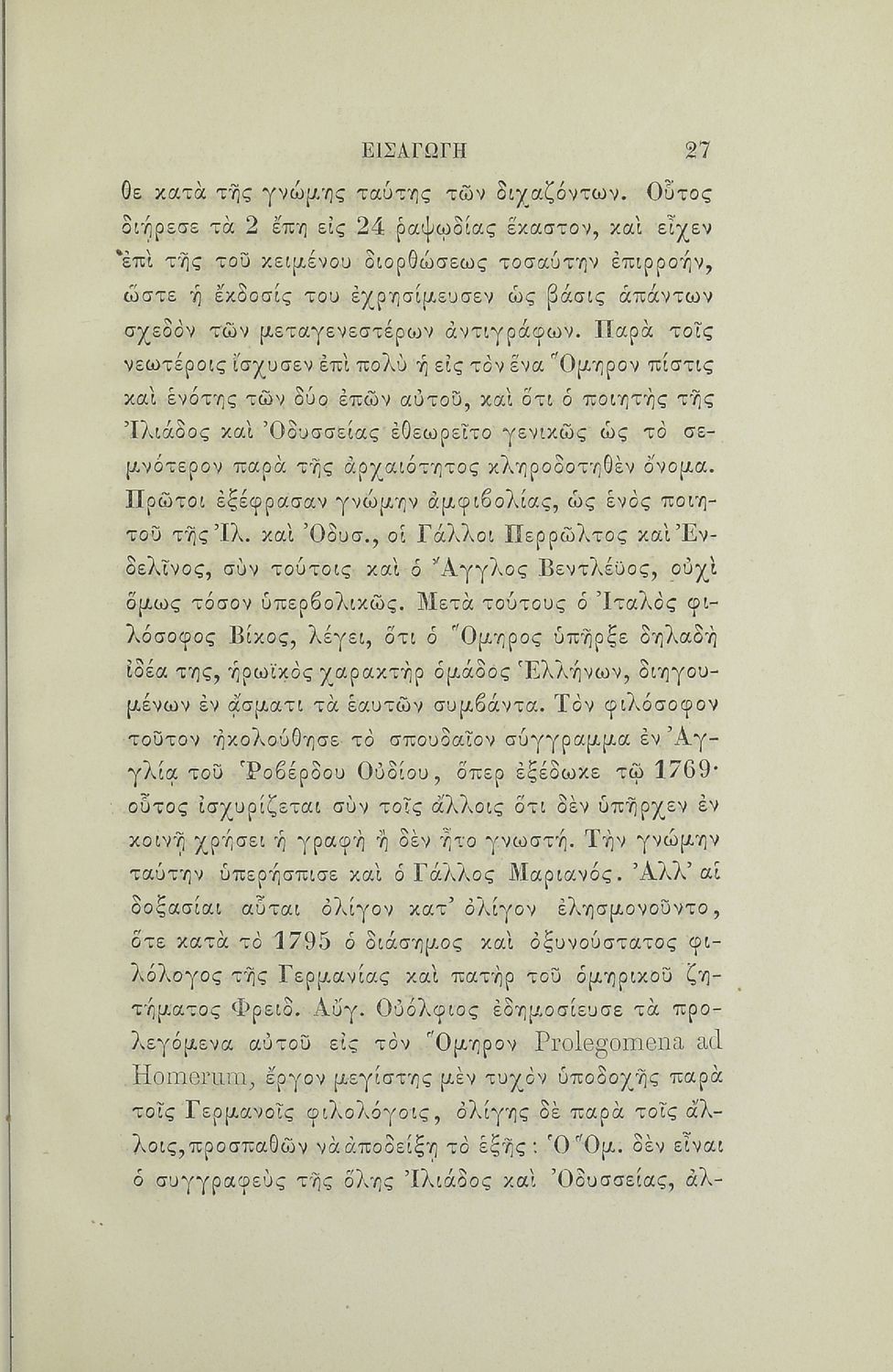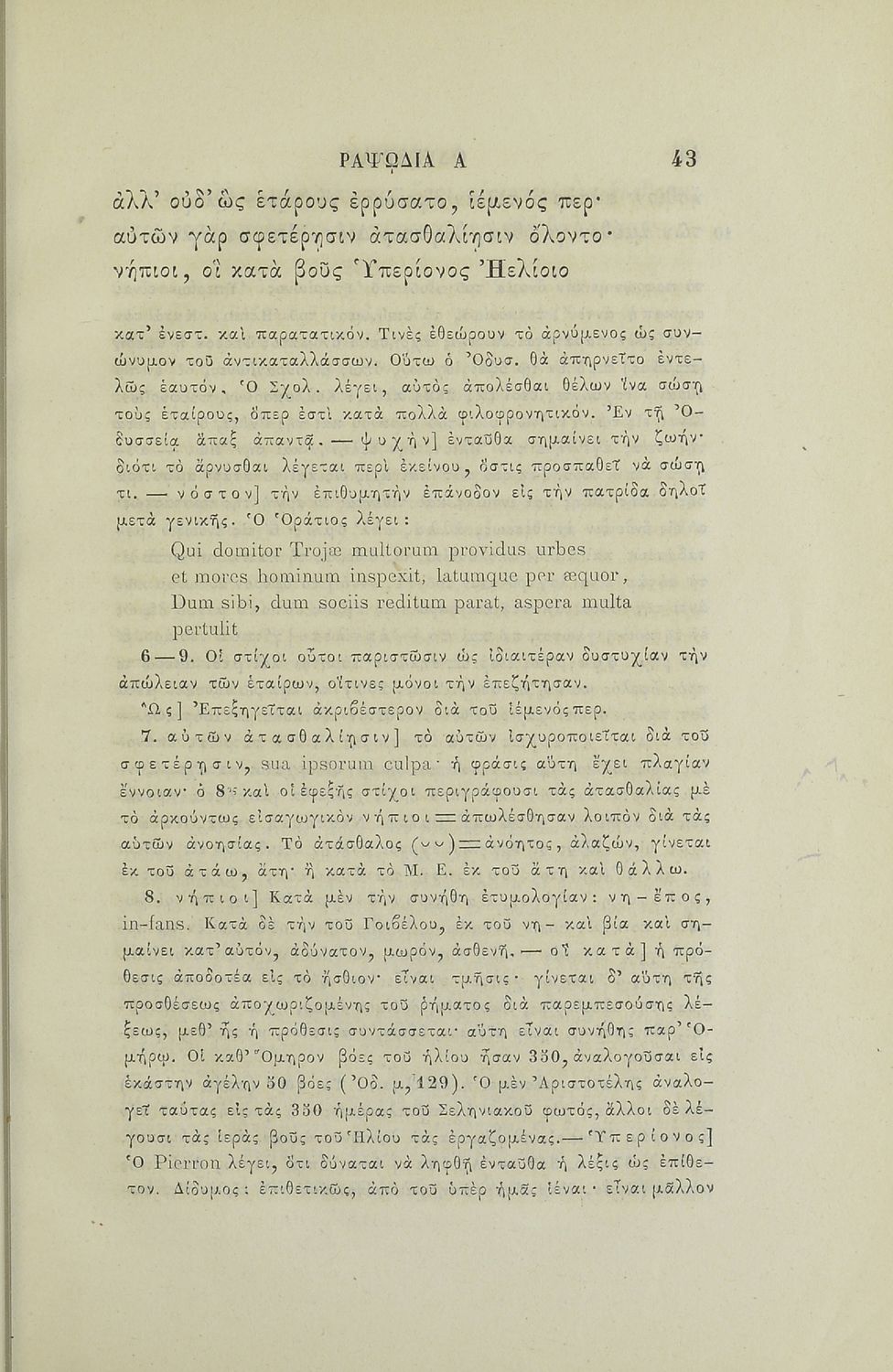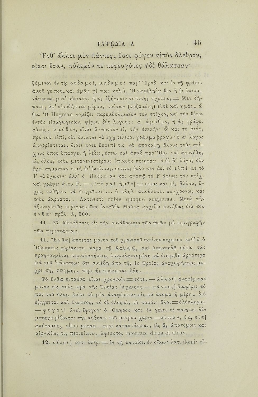 Ομήρου Οδύσσεια τεύχος πρώτον, περιέχον Α΄ και Β΄ ραψωδίαν μετά σημειώσεων ερμηνευτικών