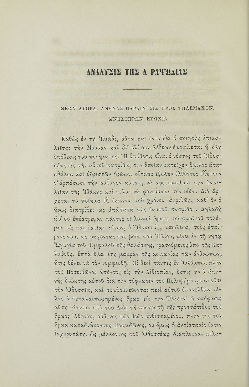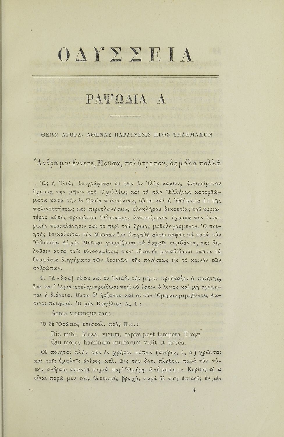 Τίτλος: Ομήρου Οδύσσεια τεύχος πρώτον, περιέχον Α΄ και Β΄ ραψωδίαν μετά σημειώσεων ερμηνευτικών