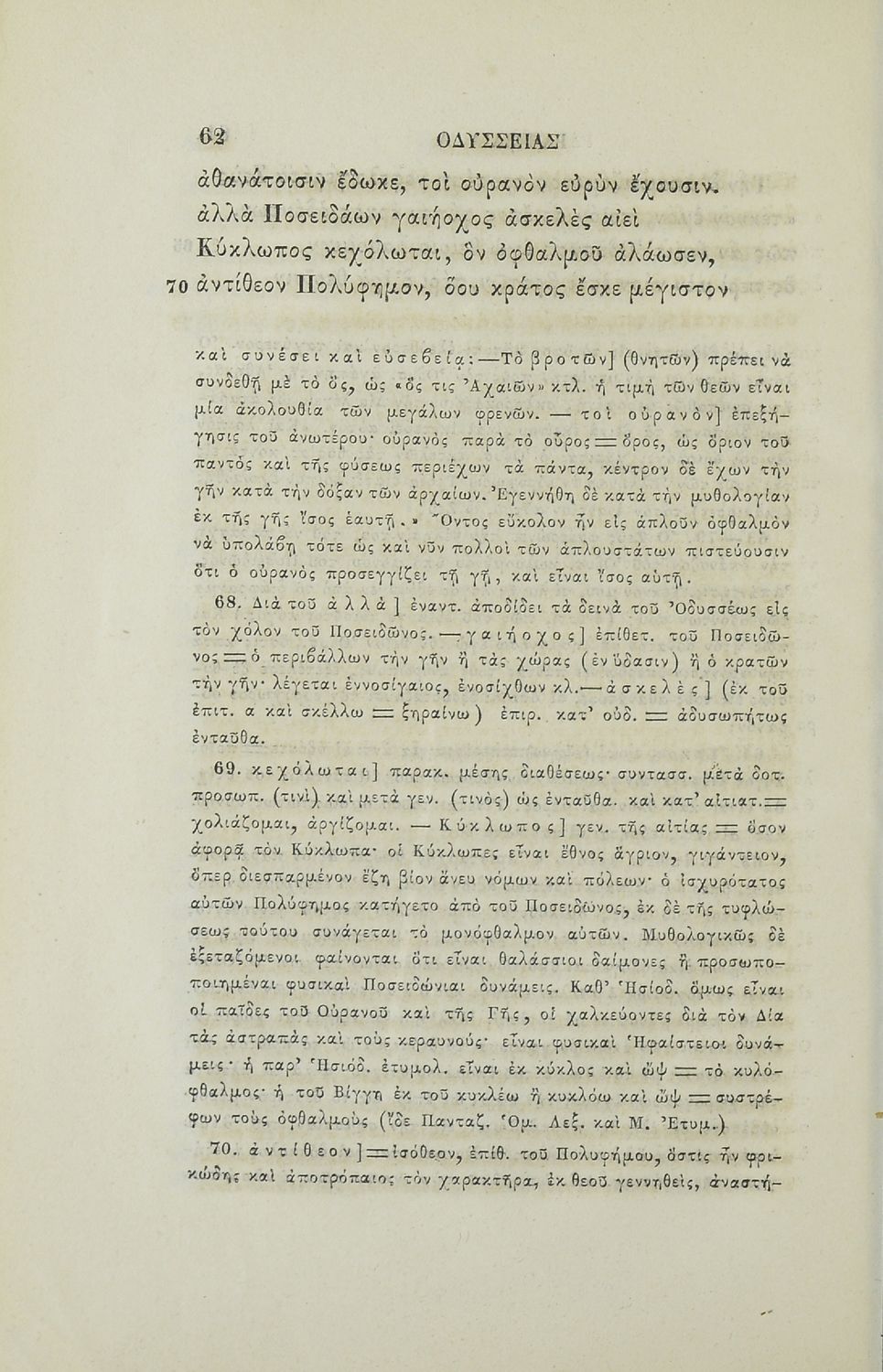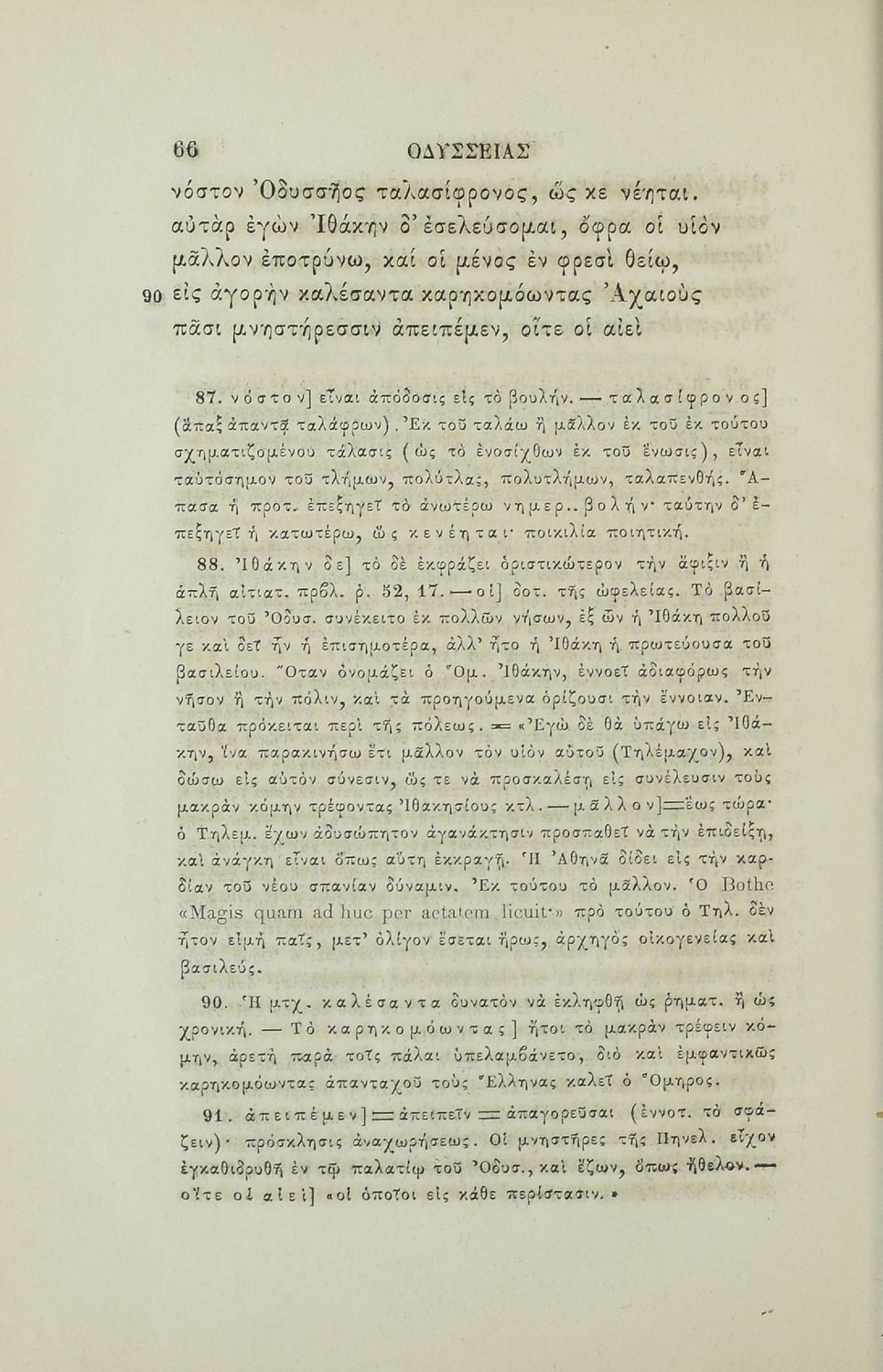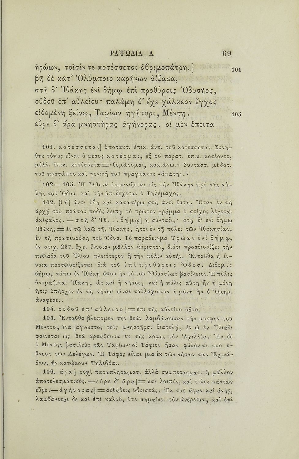 Βαθμίδα εκπαίδευσης: Δευτεροβάθμια Μάθημα: Αρχαία Ελληνικά Γλώσσα: Καθαρεύουσα Παρουσίαση περιεχομένου: Σχολικό εγχειρίδιο Αρχαίων Ελληνικών περιλαμβάνει τις ραψωδίες Α΄ και Β΄ της Οδύσσειας, εισαγωγή στον Όμηρο, στα προομηρικά χρόνια, στην επική ποίηση και στο ιστορικό πλαίσιο της εποχής και ερμηνευτικά, γραμματικά, λεξιλογικά και πραγματολογικά σχόλια. |