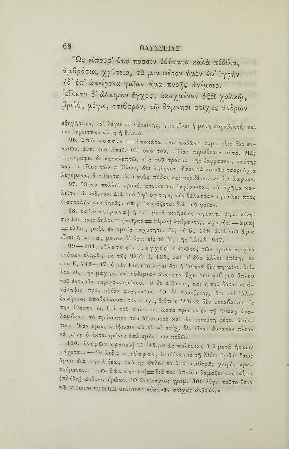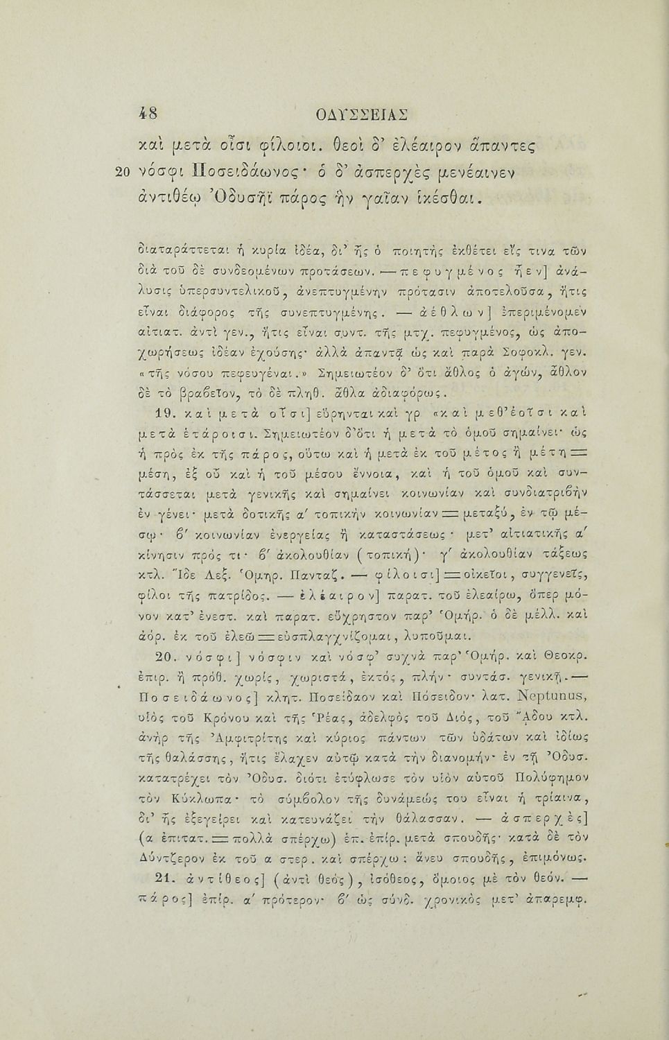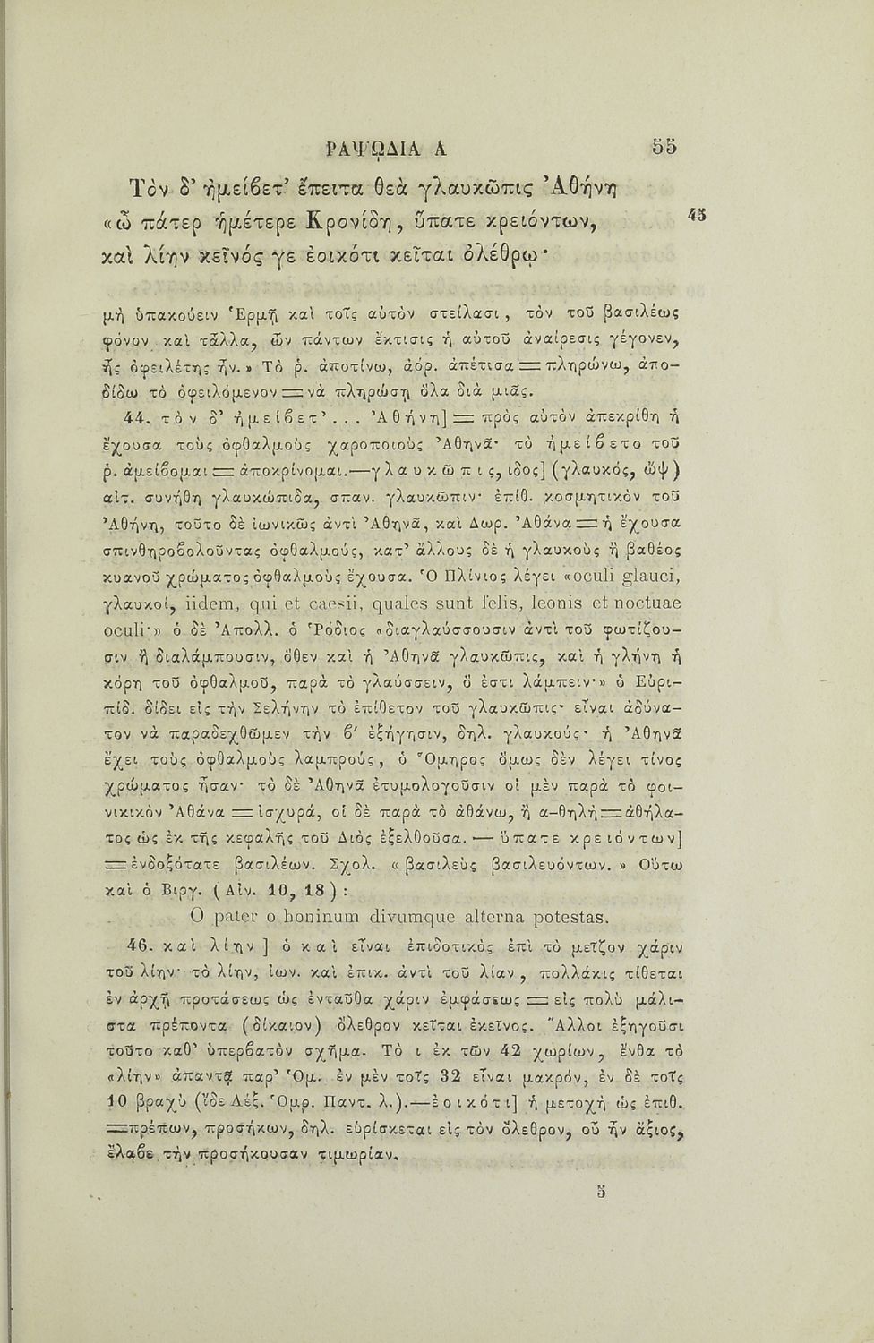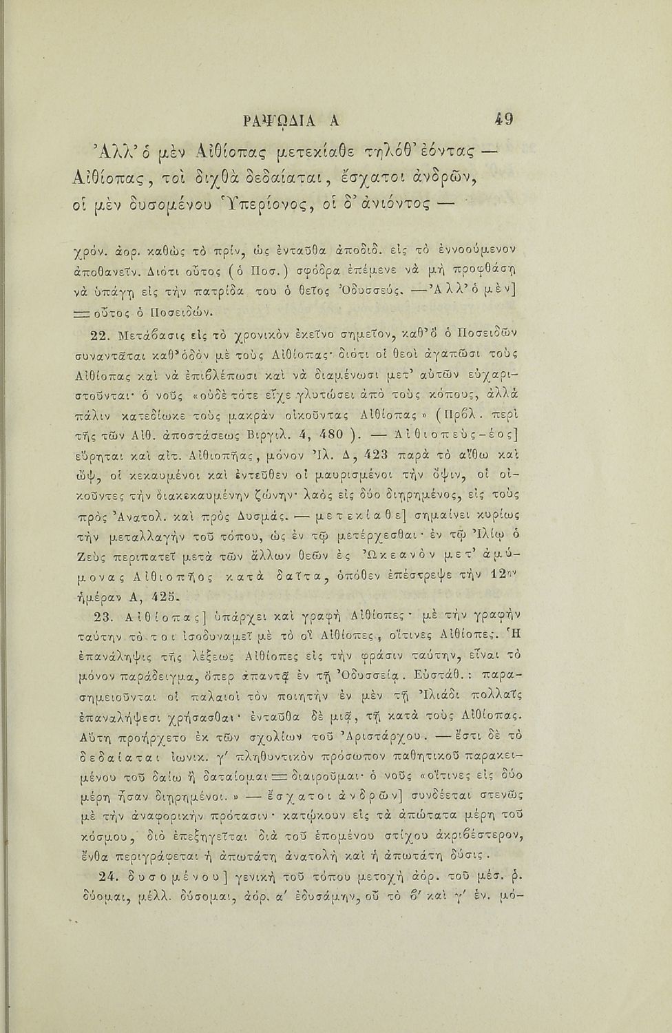 Βαθμίδα εκπαίδευσης: Δευτεροβάθμια Μάθημα: Αρχαία Ελληνικά Γλώσσα: Καθαρεύουσα Παρουσίαση περιεχομένου: Σχολικό εγχειρίδιο Αρχαίων Ελληνικών περιλαμβάνει τις ραψωδίες Α΄ και Β΄ της Οδύσσειας, εισαγωγή στον Όμηρο, στα προομηρικά χρόνια, στην επική ποίηση και στο ιστορικό πλαίσιο της εποχής και ερμηνευτικά, γραμματικά, λεξιλογικά και πραγματολογικά σχόλια. |