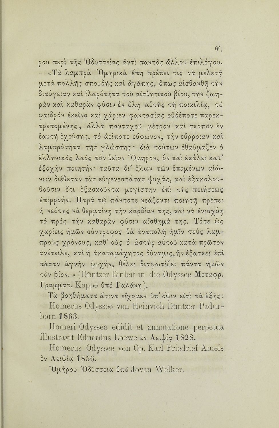 Ομήρου Οδύσσεια τεύχος πρώτον, περιέχον Α΄ και Β΄ ραψωδίαν μετά σημειώσεων ερμηνευτικών
