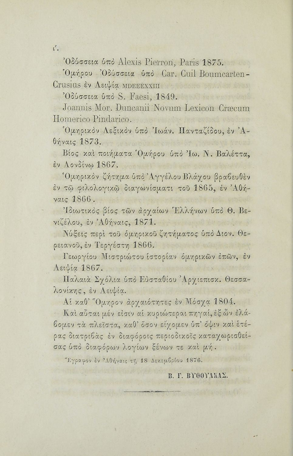 Όμηρος, Β. Γ. Βυθούλκας (επιμ.)