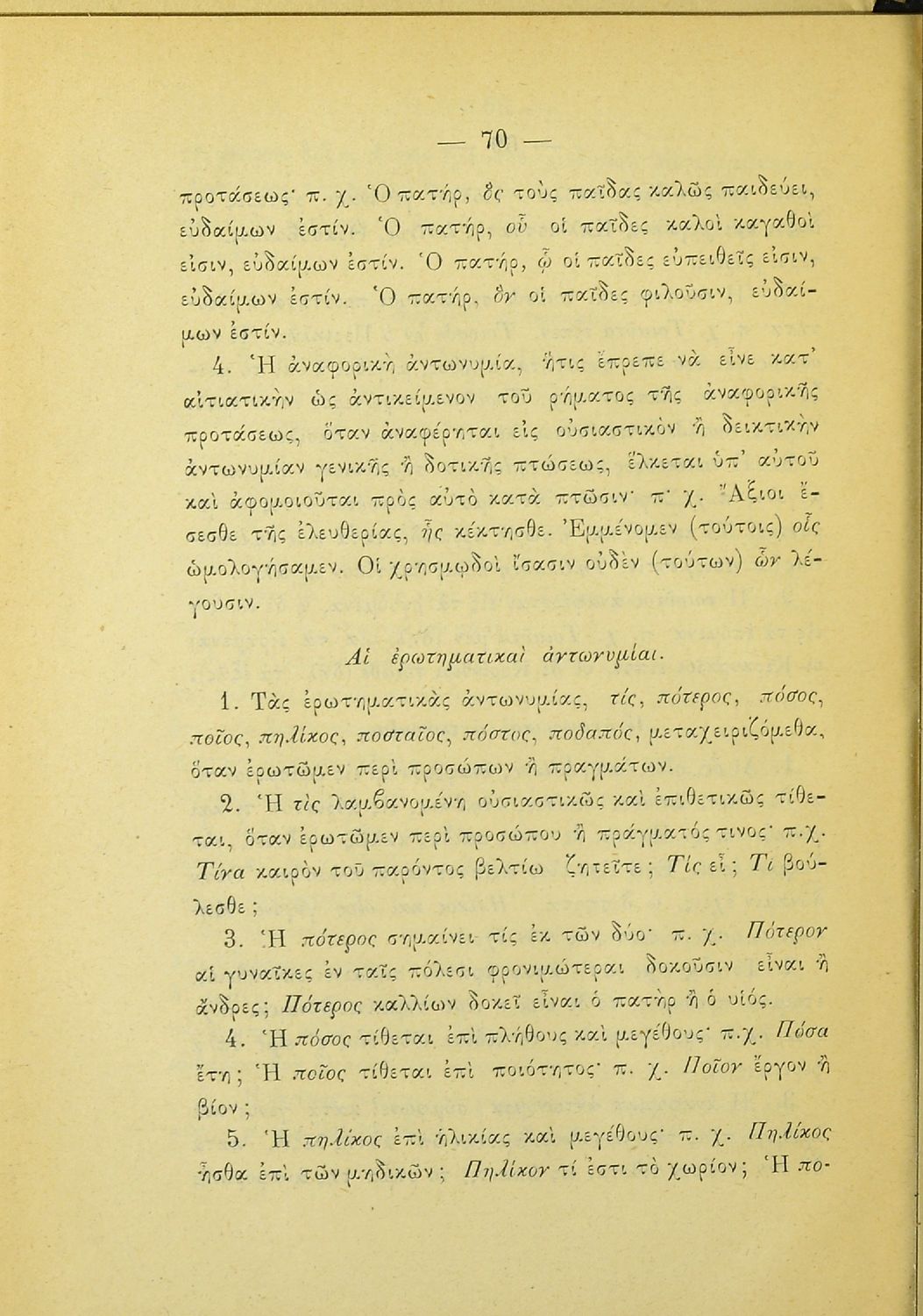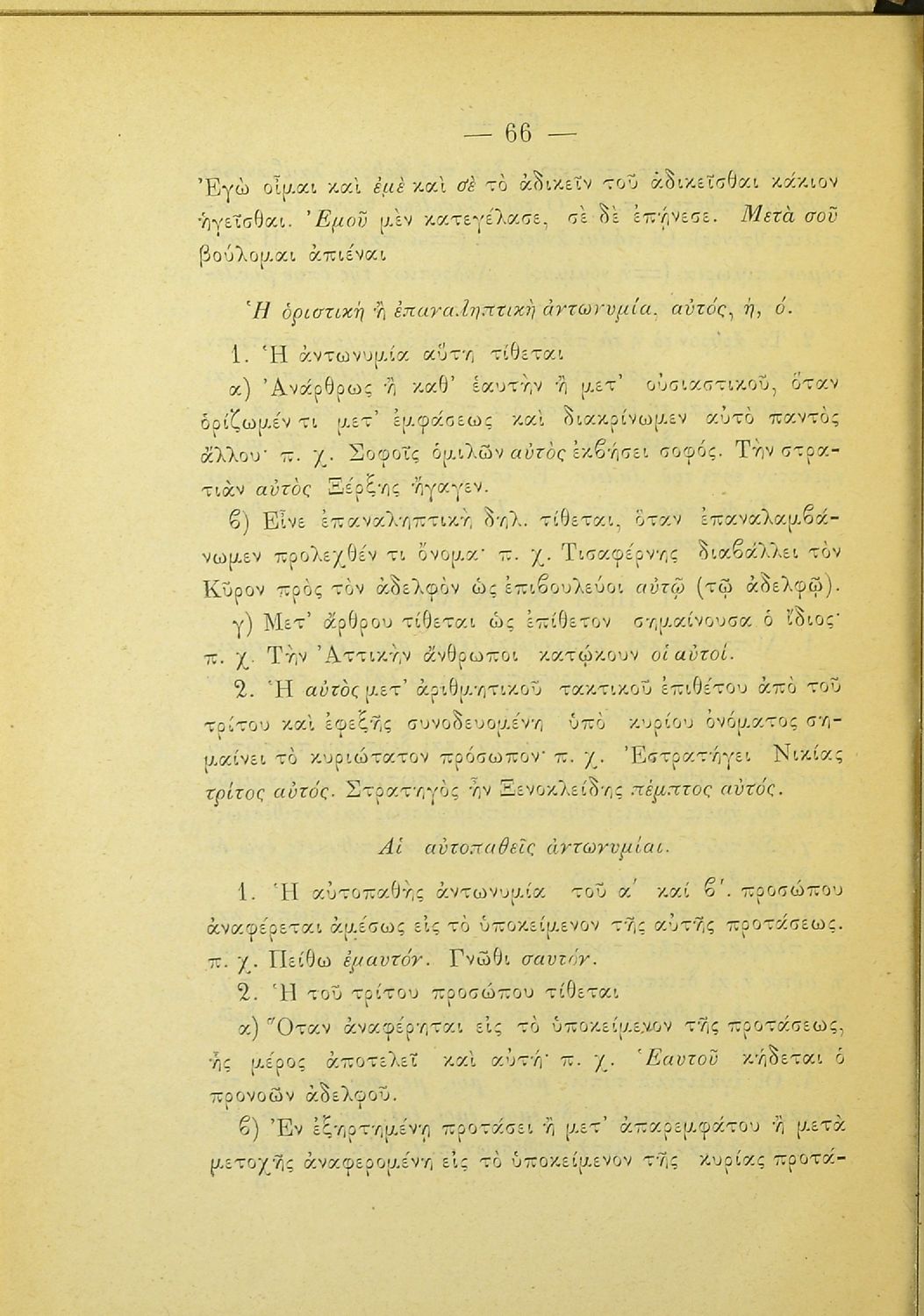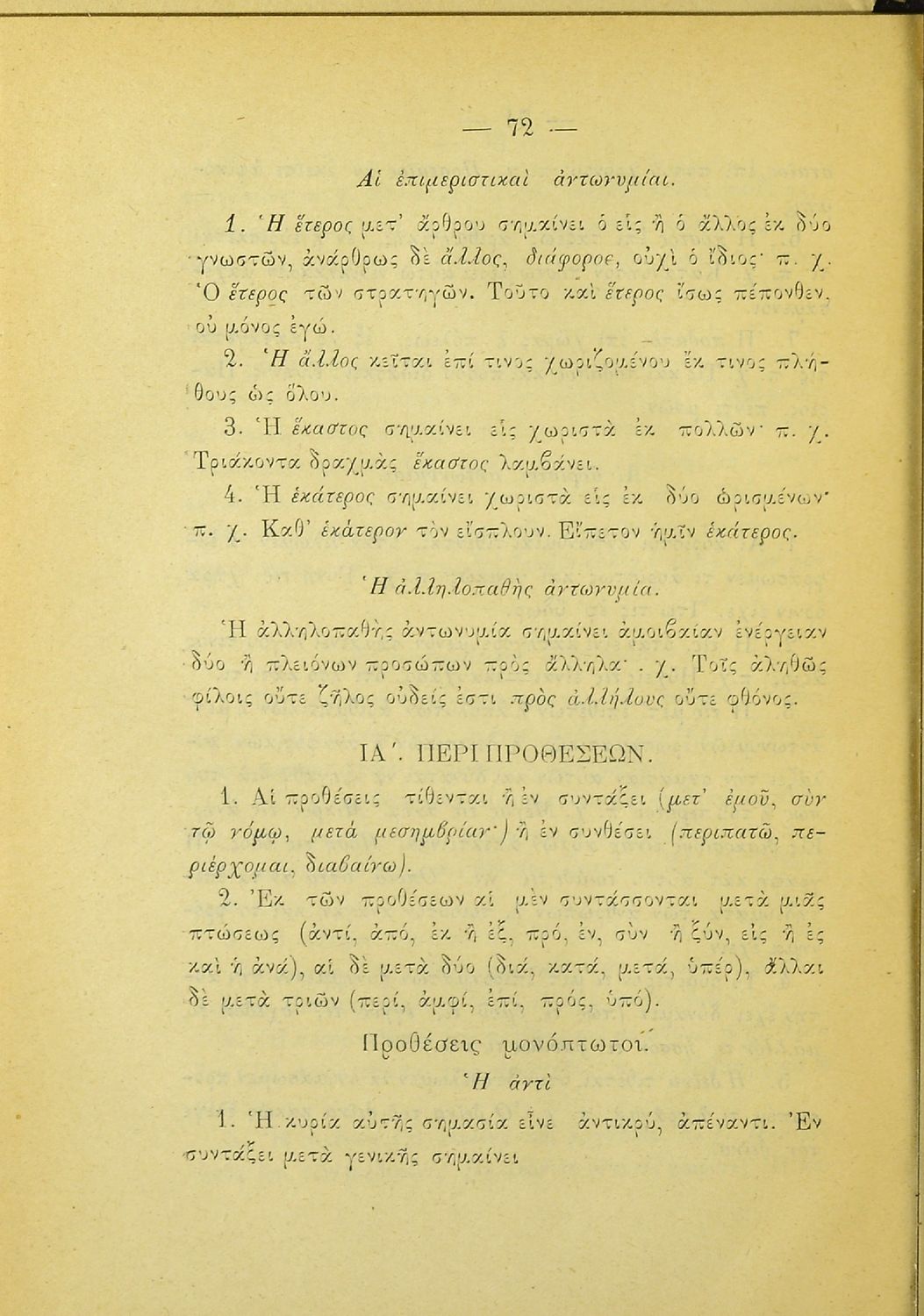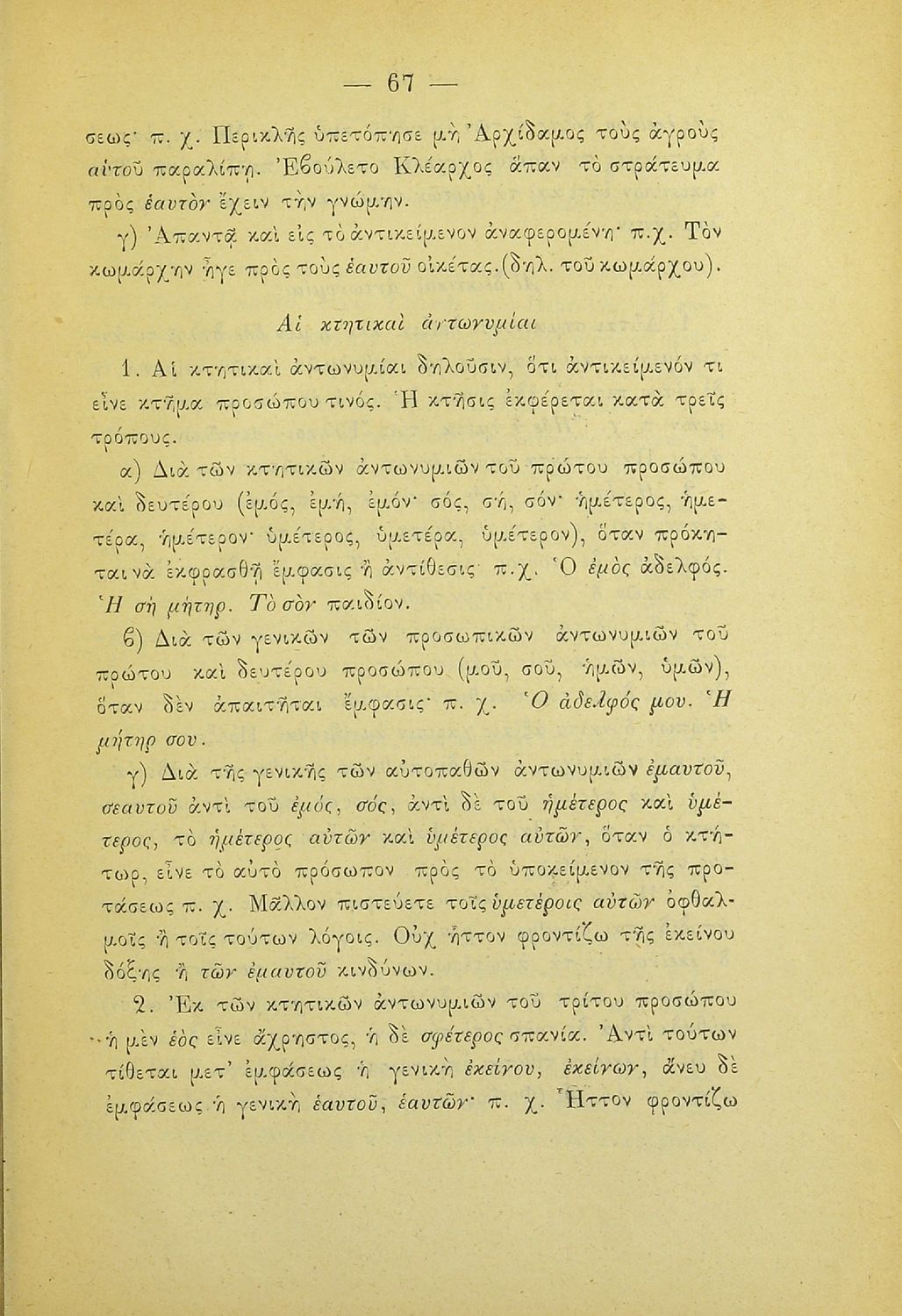 Σχολικό εγχειρίδιο Αρχαίων Ελληνικών για τα Ελληνικά Σχολεία και Παρθεναγωγεία που περιλαμβάνει κανόνες της γραμματικής της αρχαίας ελληνικής και είναι χωρισμένη στο φθογγολογικό και στο τυπολογικό μέρος.