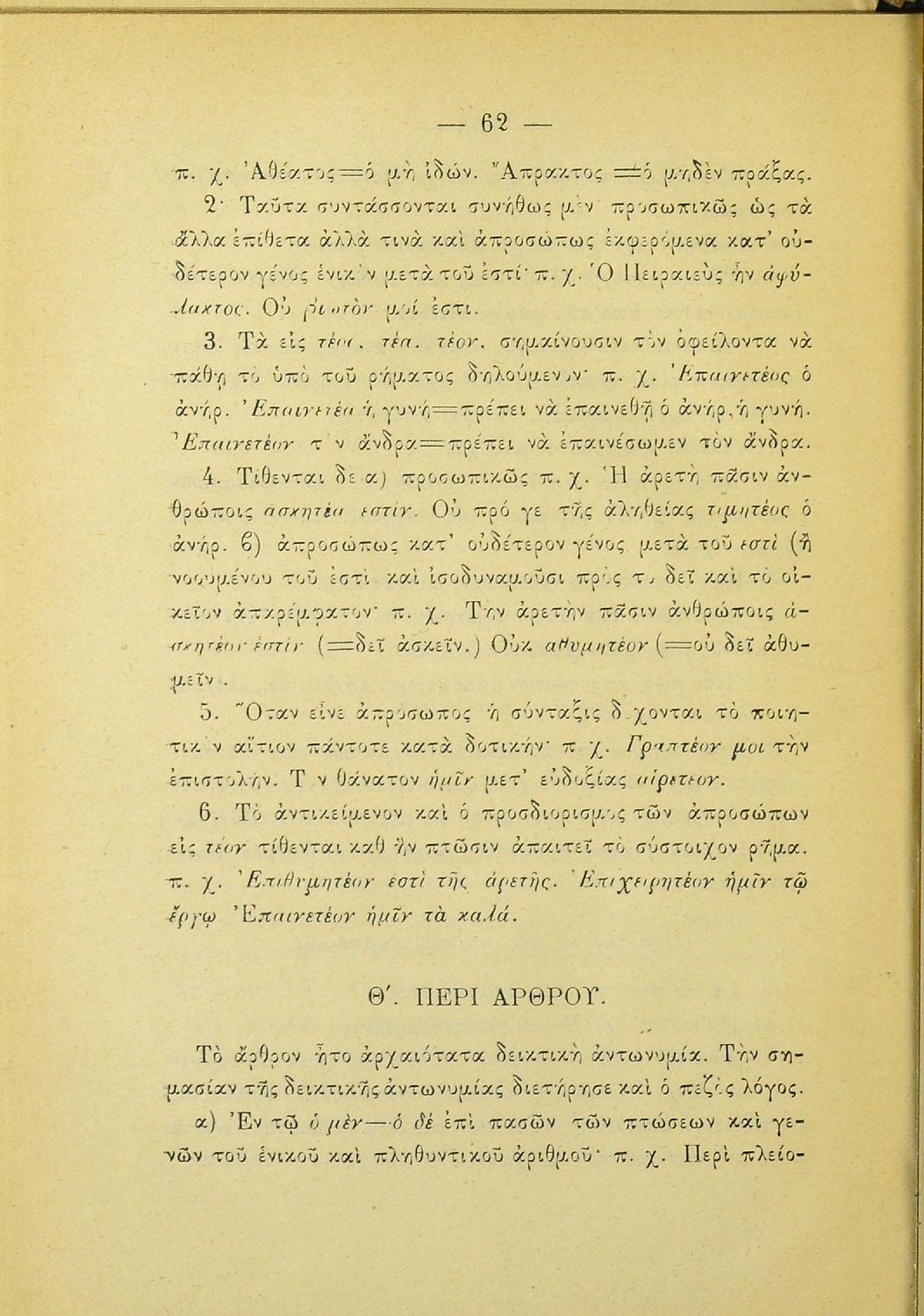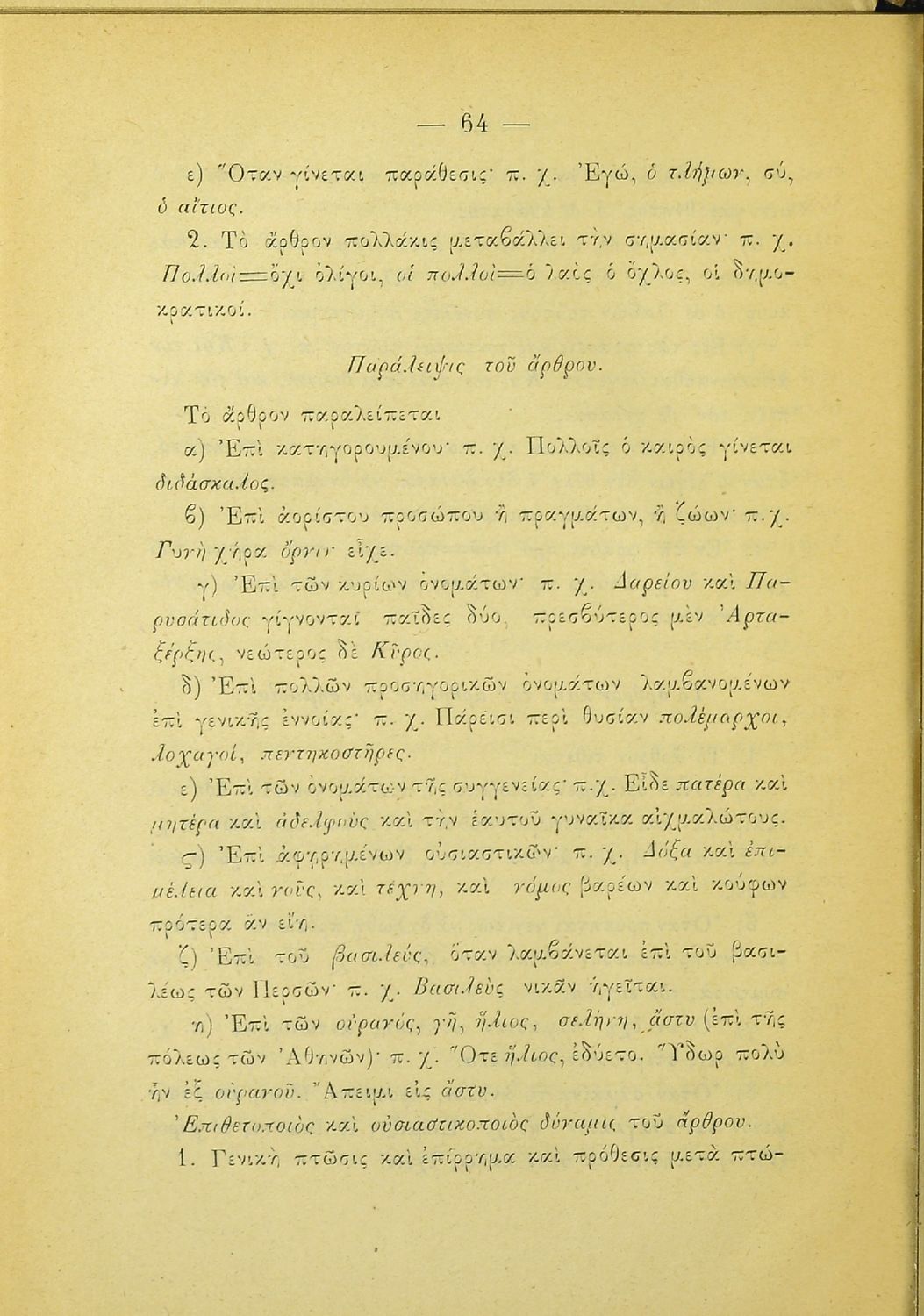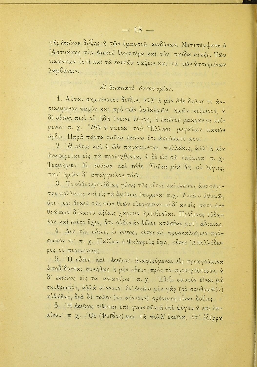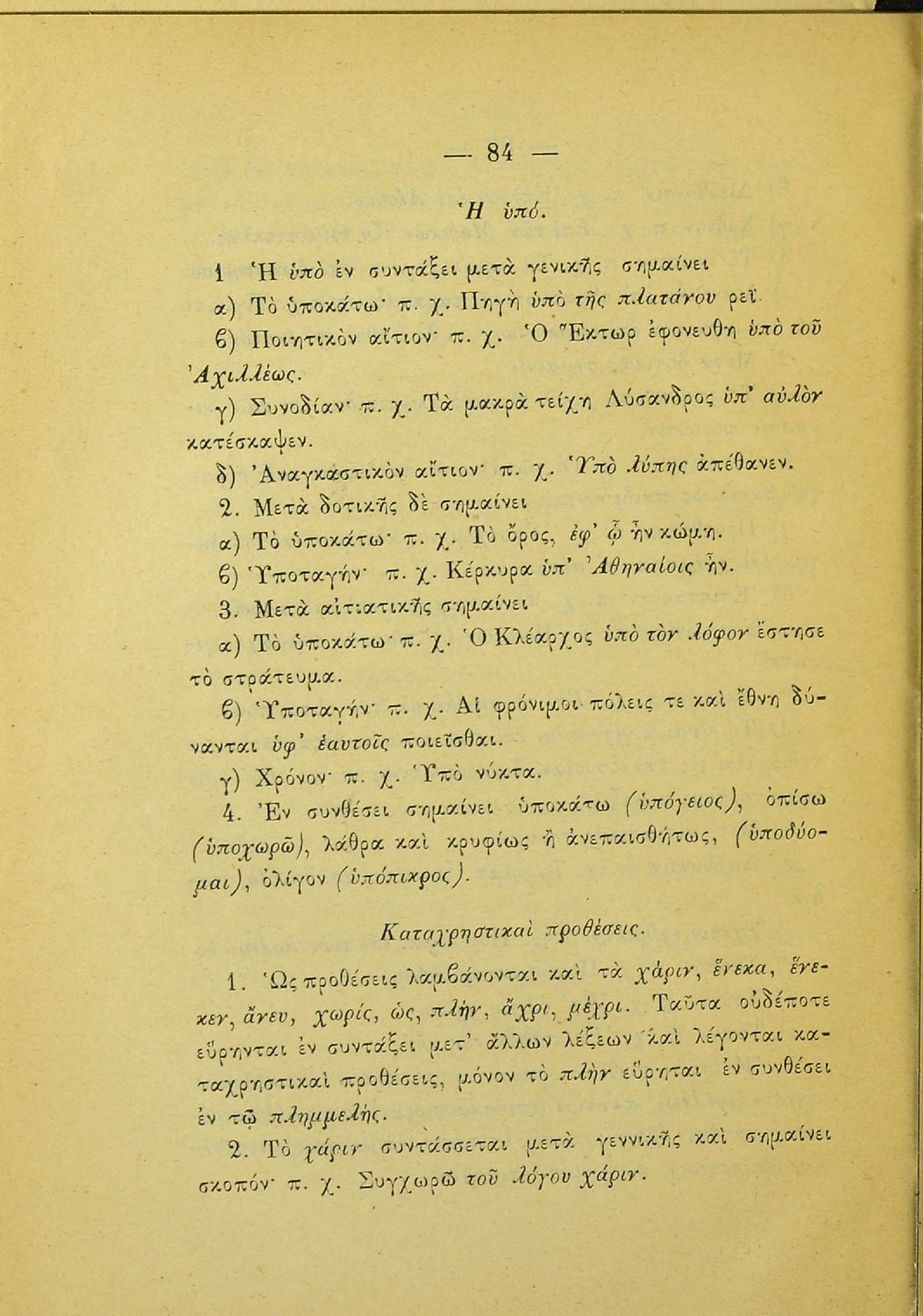 Σχολικό εγχειρίδιο Αρχαίων Ελληνικών για τα Ελληνικά Σχολεία και Παρθεναγωγεία που περιλαμβάνει κανόνες της γραμματικής της αρχαίας ελληνικής και είναι χωρισμένη στο φθογγολογικό και στο τυπολογικό μέρος.