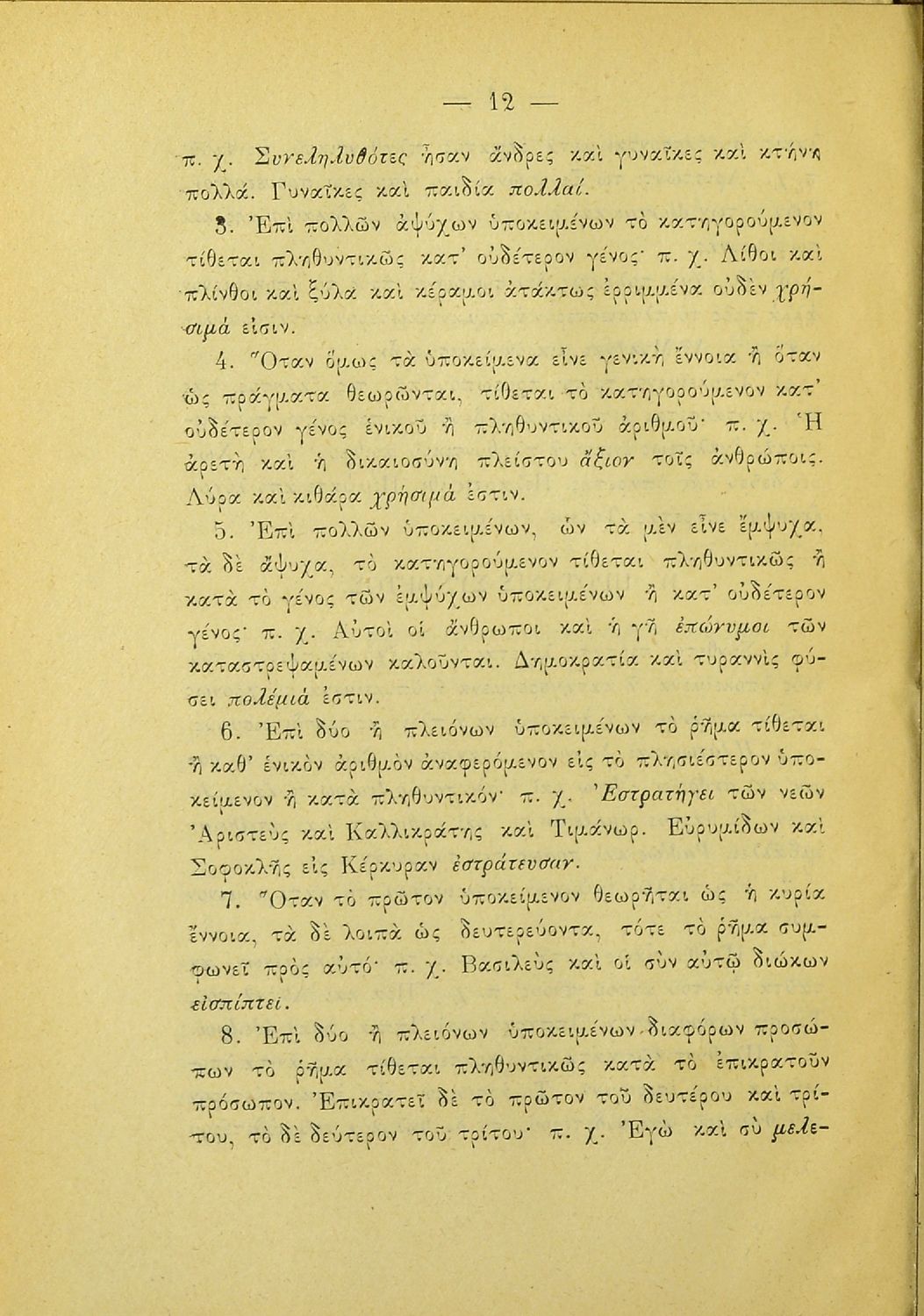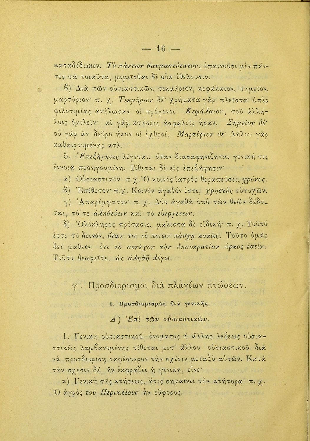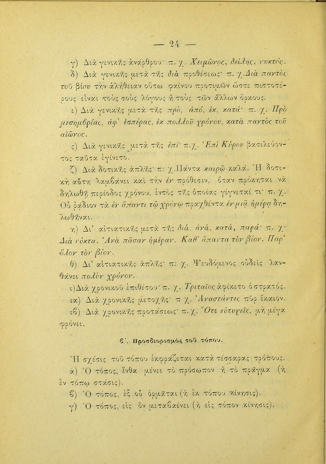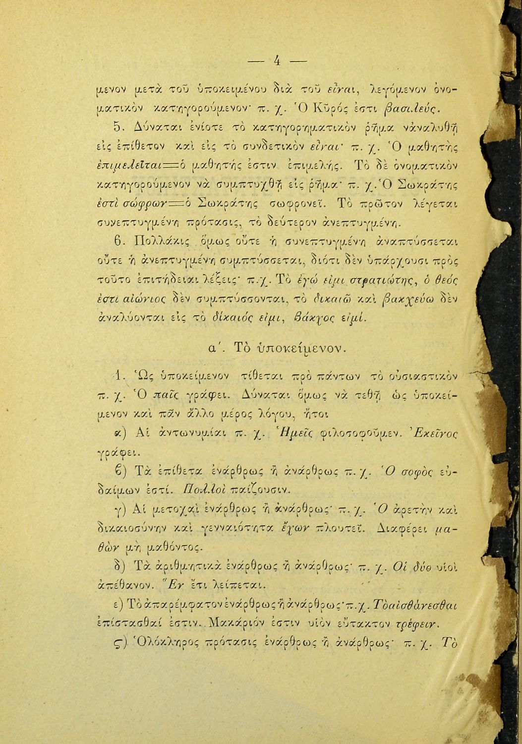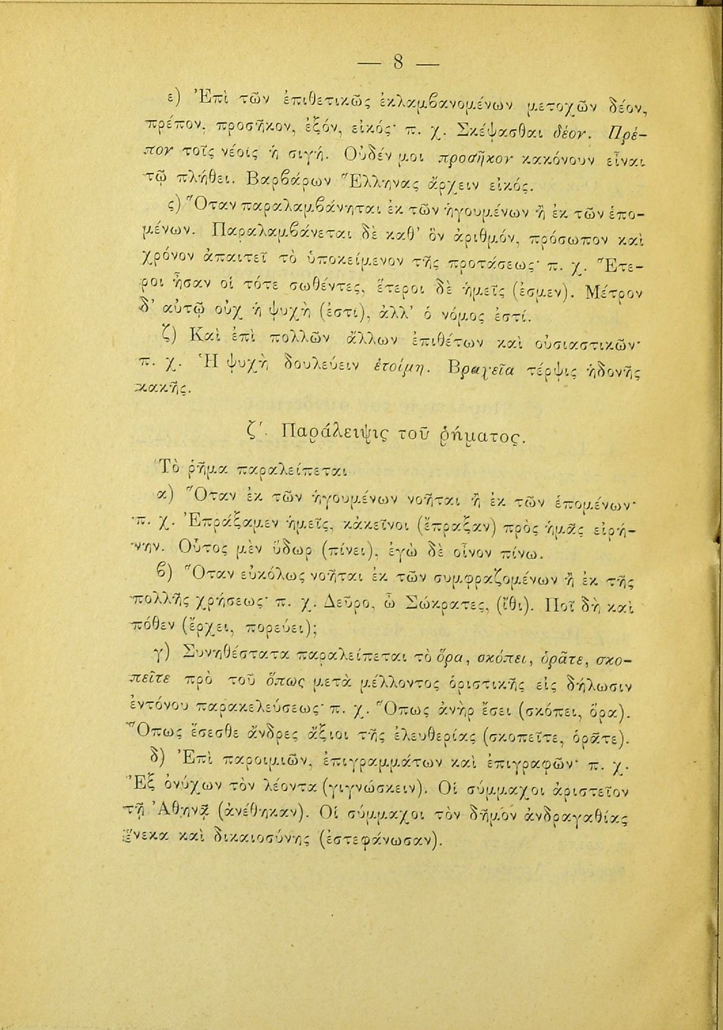 Σχολικό εγχειρίδιο Αρχαίων Ελληνικών για τους μαθητές των Ελληνικών Σχολείων και Παρθεναγωγείων που εξετάζει τα μέρη του λόγου και την σύνταξή τους.