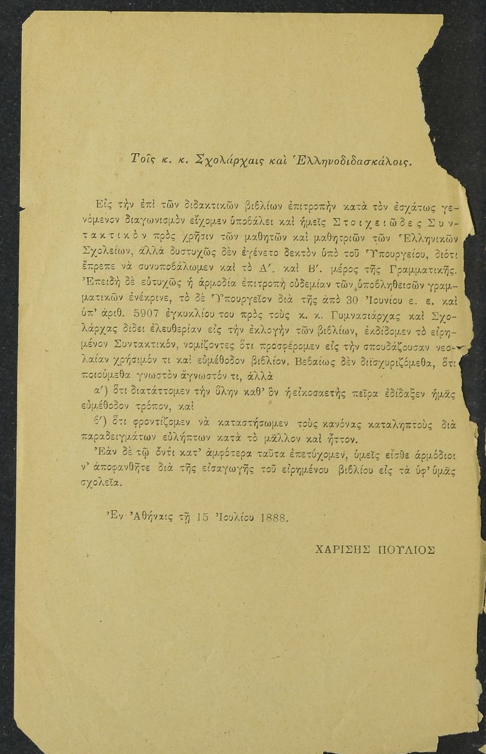 Γλώσσα: Καθαρεύουσα